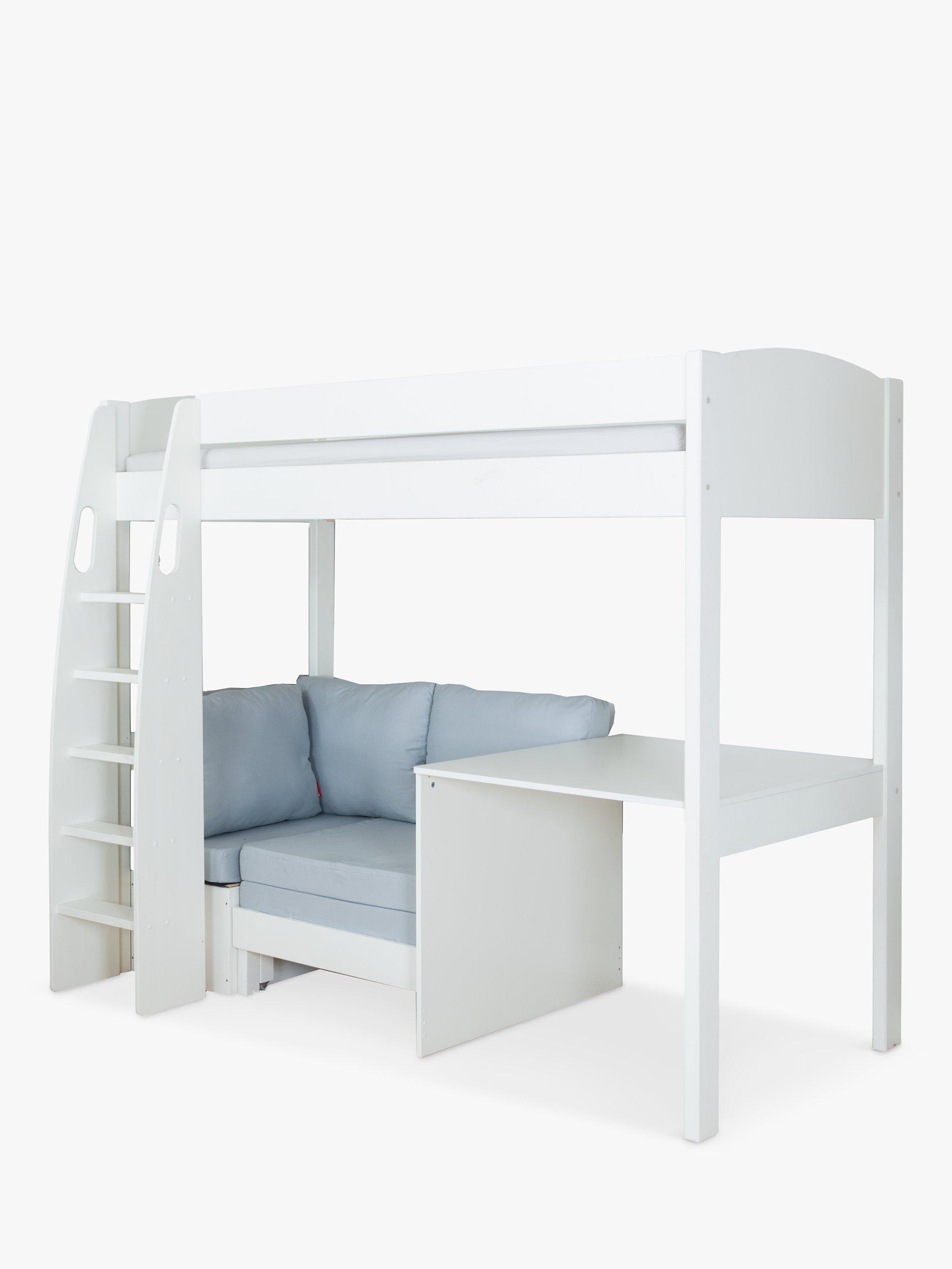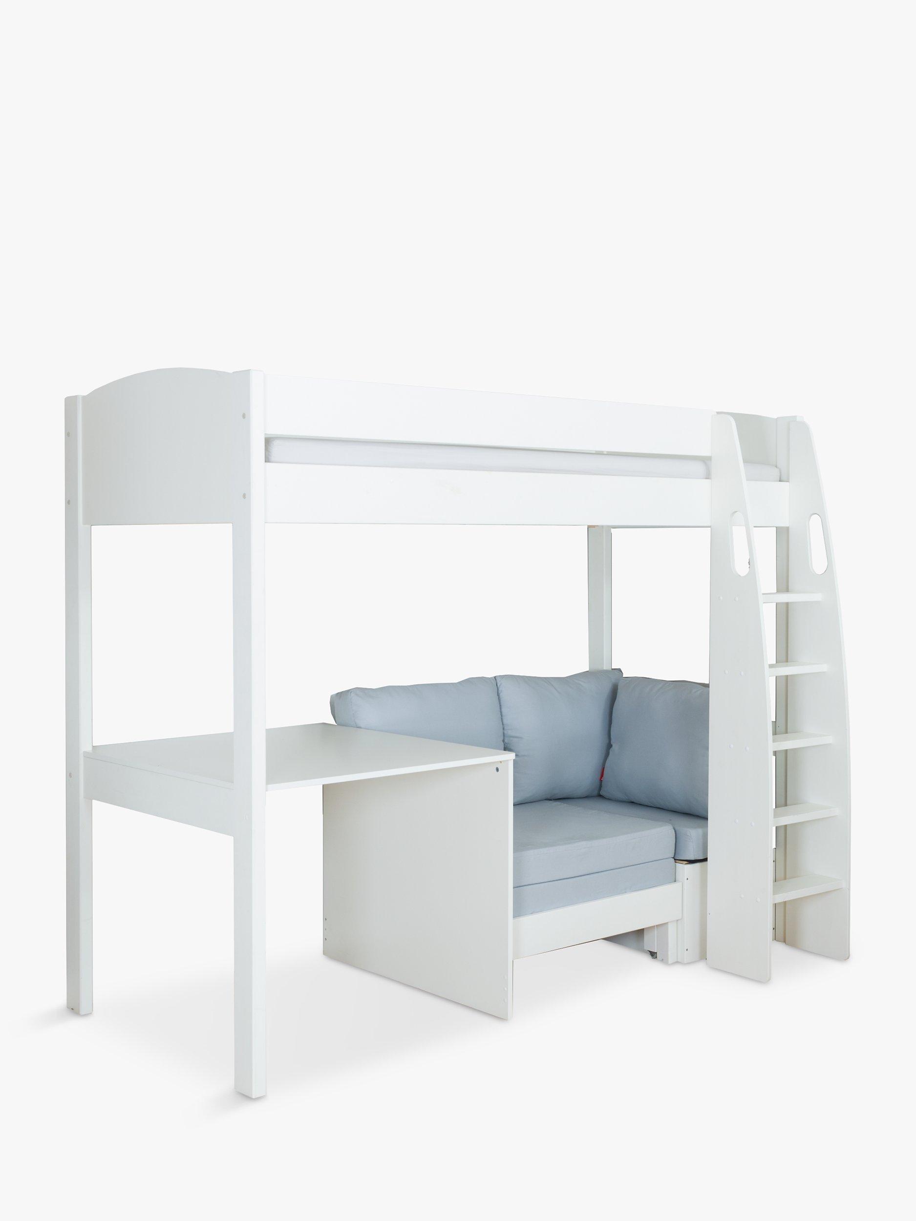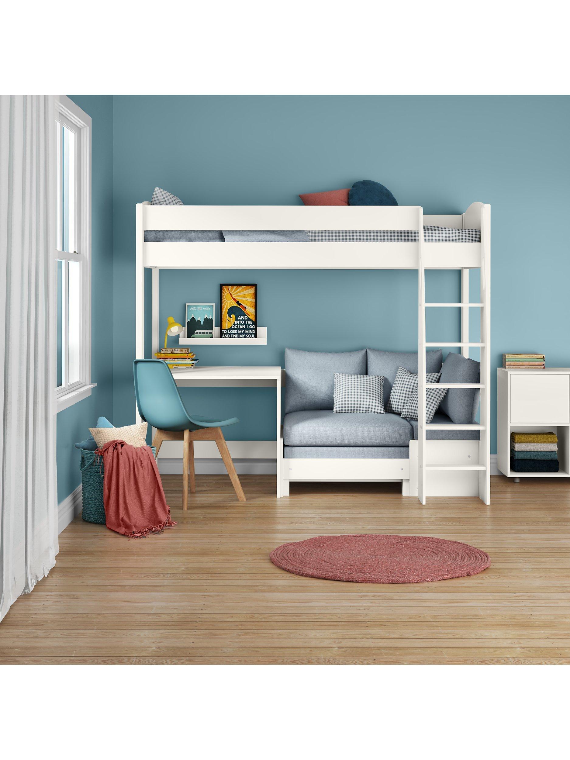 Combining functionality and comfort, this safe and study bed from Stompa is a favourite for little ones. Crafted from pine and MDF and designed for an extra long single mattress (W90 x L200cm) it features solid wooden slats and an attractive rounded headboard that's available in a choice of white and grey colourways.