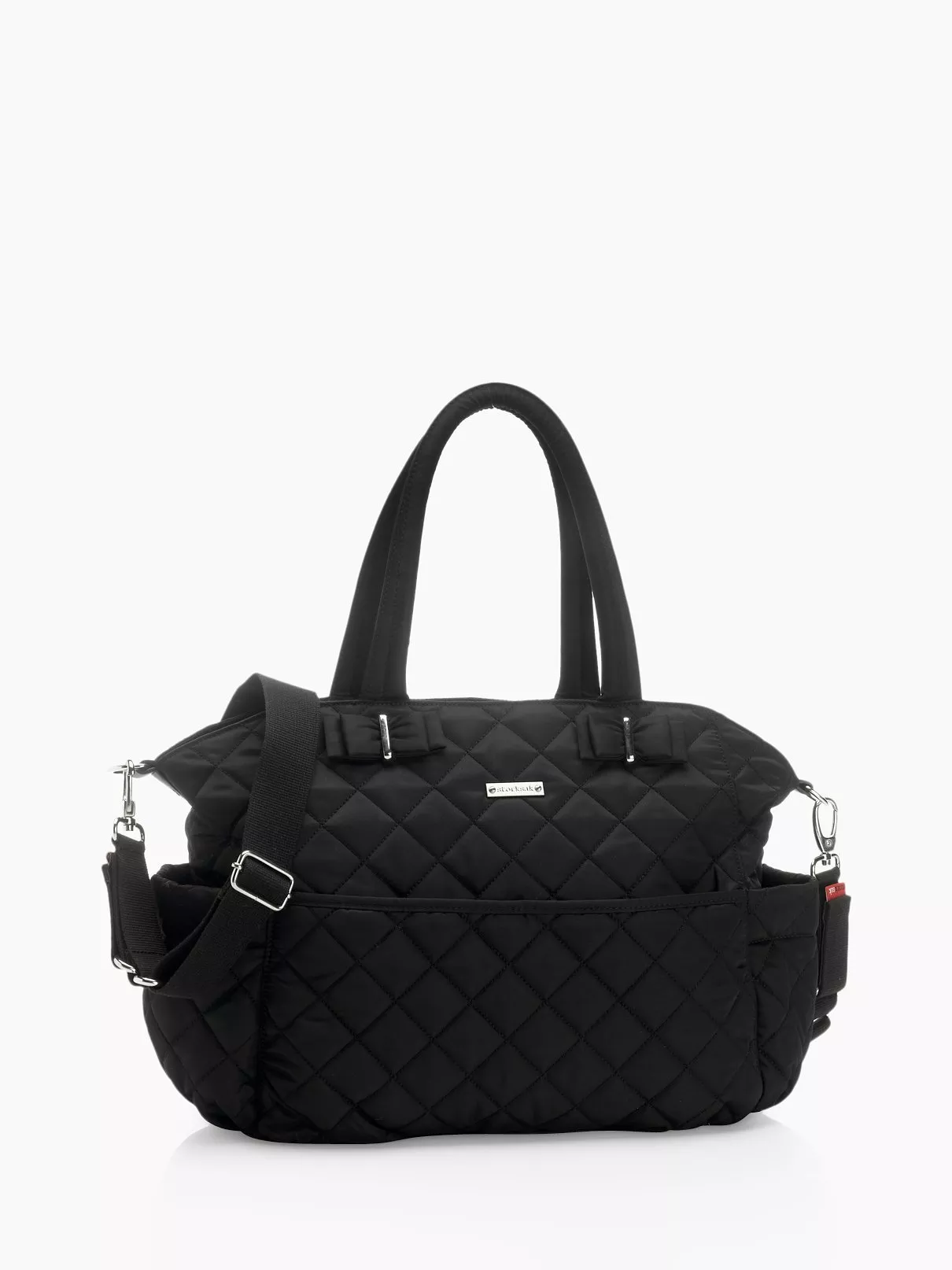 The Storksak Bobby is super lightweight and spacious, made from fashionable quilted nylon and finished with silver hardware. Cleverly designed on the inside, this style also comes with a luxury padded changing mat, and a coordinating insulated food and bottle bag (FAB bag), making it ideal for storing drinks and snacks while on the go.