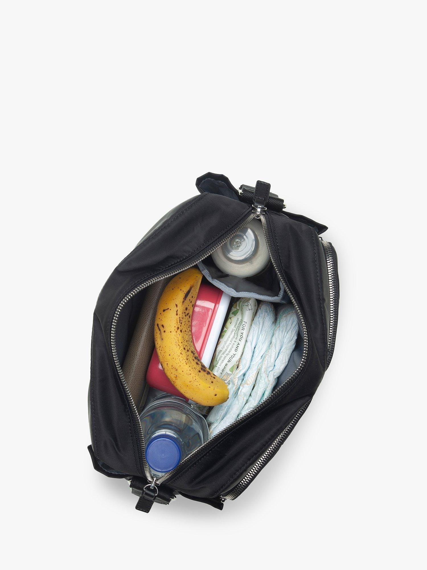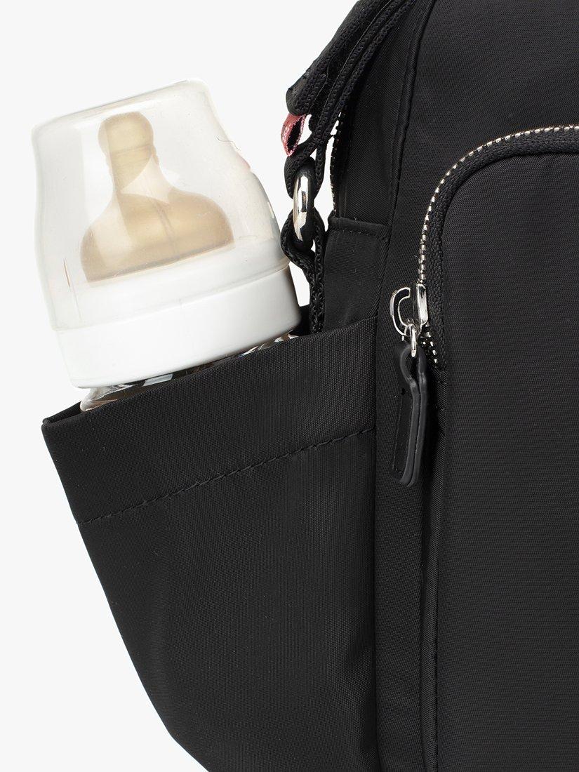 This 2-in-1 stroller organiser and compact changing bag simply has it all. Crafted in recycled nylon, a material that is manufactured from post-consumer waste, the stylish outer features 4 pockets for easy storage of essentials while the spacious interior can house all items needed for you and baby including an insulated bottle sleeve. The long strap includes patented built-in stroller straps, so you can wear it as a cross-body or easily attach to your pram.