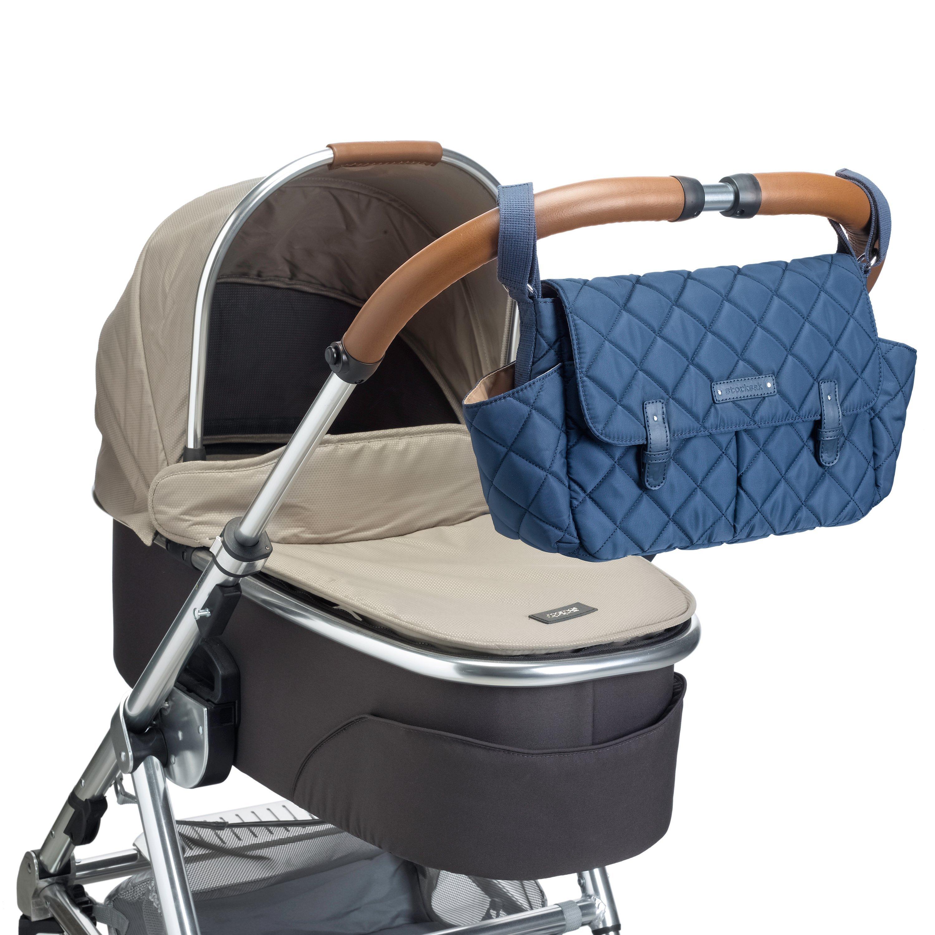 This practical satchel-style stroller organiser from Storksak is designed to give you smart and convenient storage for all yours and baby's essentials while on the go. Featuring an internal, removable insulated bottle pocket, four exterior pockets and a zip closure for security. The sturdy integrated rip-tape straps easily attach to your stroller, perfect for quick trips out.