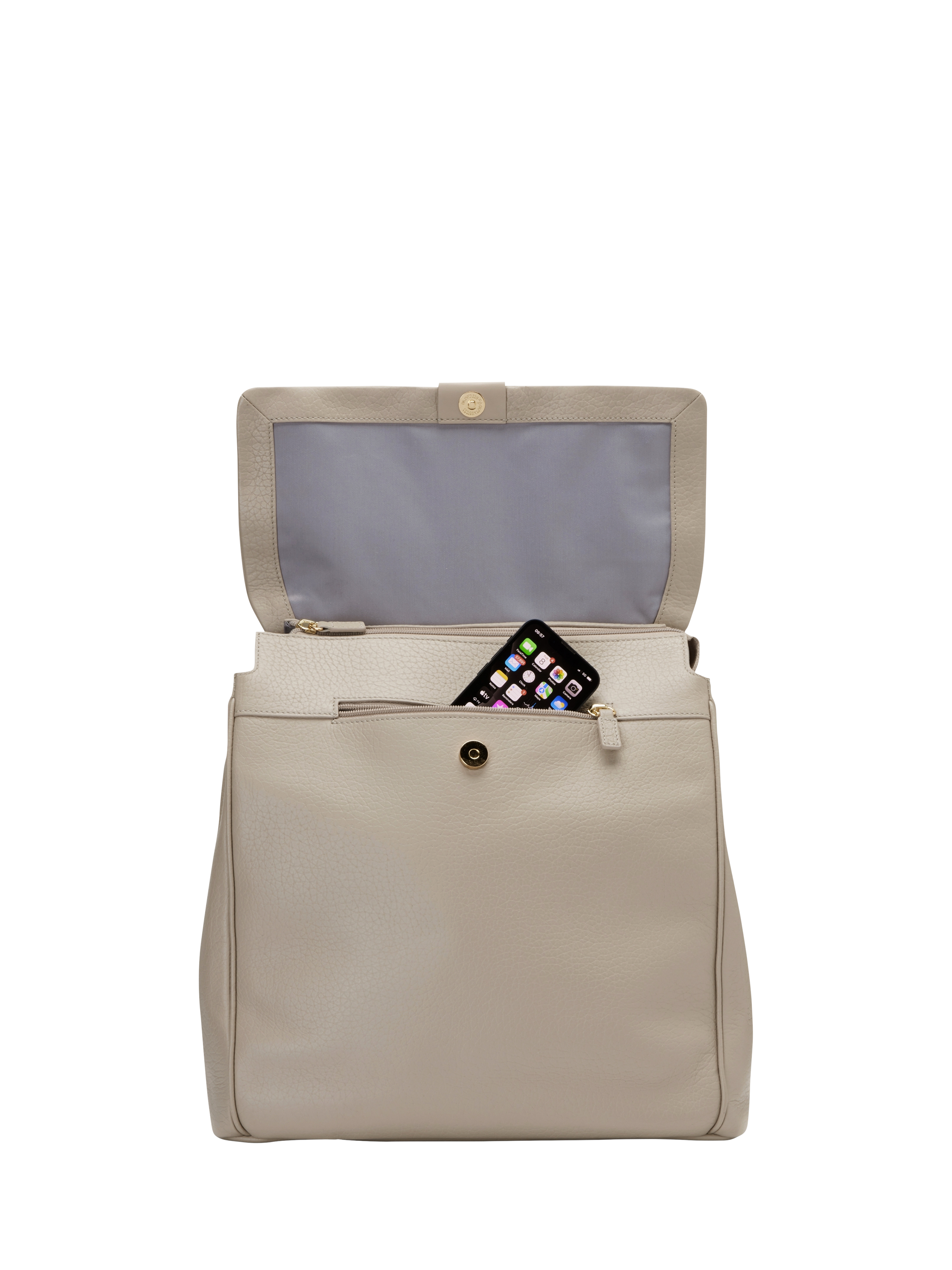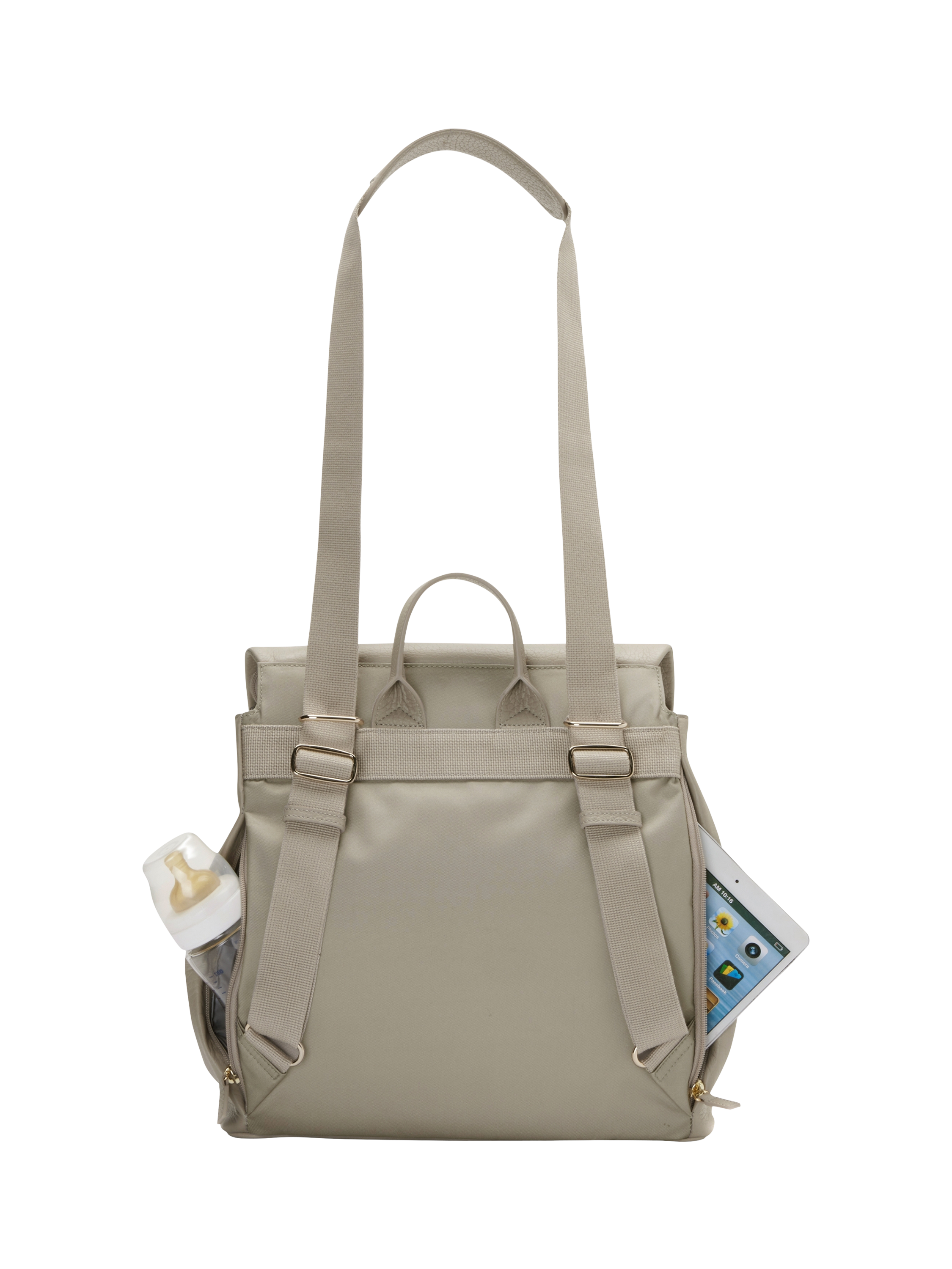 Blending style with practicality, the Storksak St James Leather Changing Bag is crafted from textured leather with clean, modern lines and a water-resistant finish. Converting seamlessly from backpack to shoulder or cross-body, its spacious design includes seven pockets. It's also made with metal feet, a padded back and grab handles for comfort and durability. Comes with a padded machine-washable changing mat, insulated bottle pocket and stroller clips.
