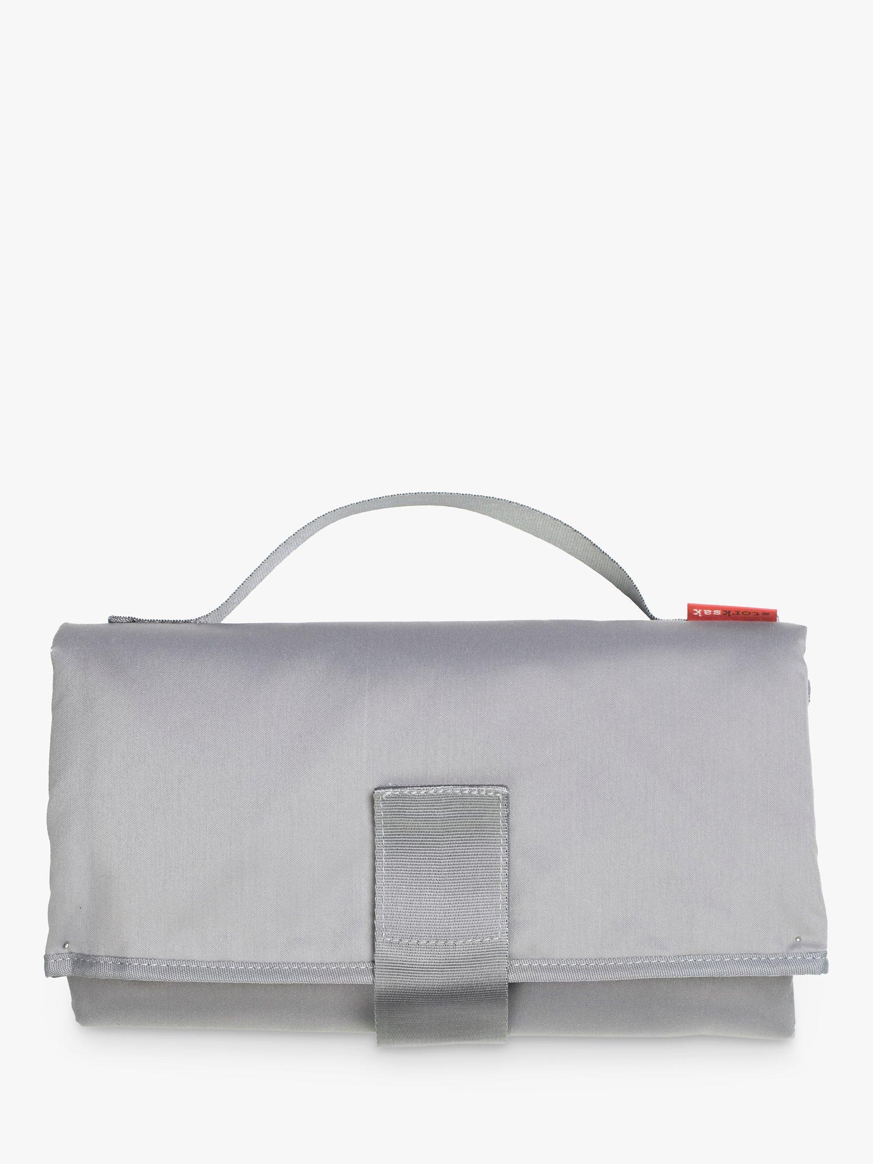 Defined by its scuba shell with an embossed front panel, accented by smooth leather trims and statement hardware details, the Stevie Luxe Changing Bag from Storksak is perfectly proportioned, with adjustable side tabs to alter the size and look instantly. A wide opening into a spacious interior with multiple pockets for easy access to your safely stored essentials holds space for an over-sized changing mat with pocket storage, insulated FAB bag and long detachable strap with integrated patent stroller straps. It's unrivalled practicality encased within a contemporary silhouette.