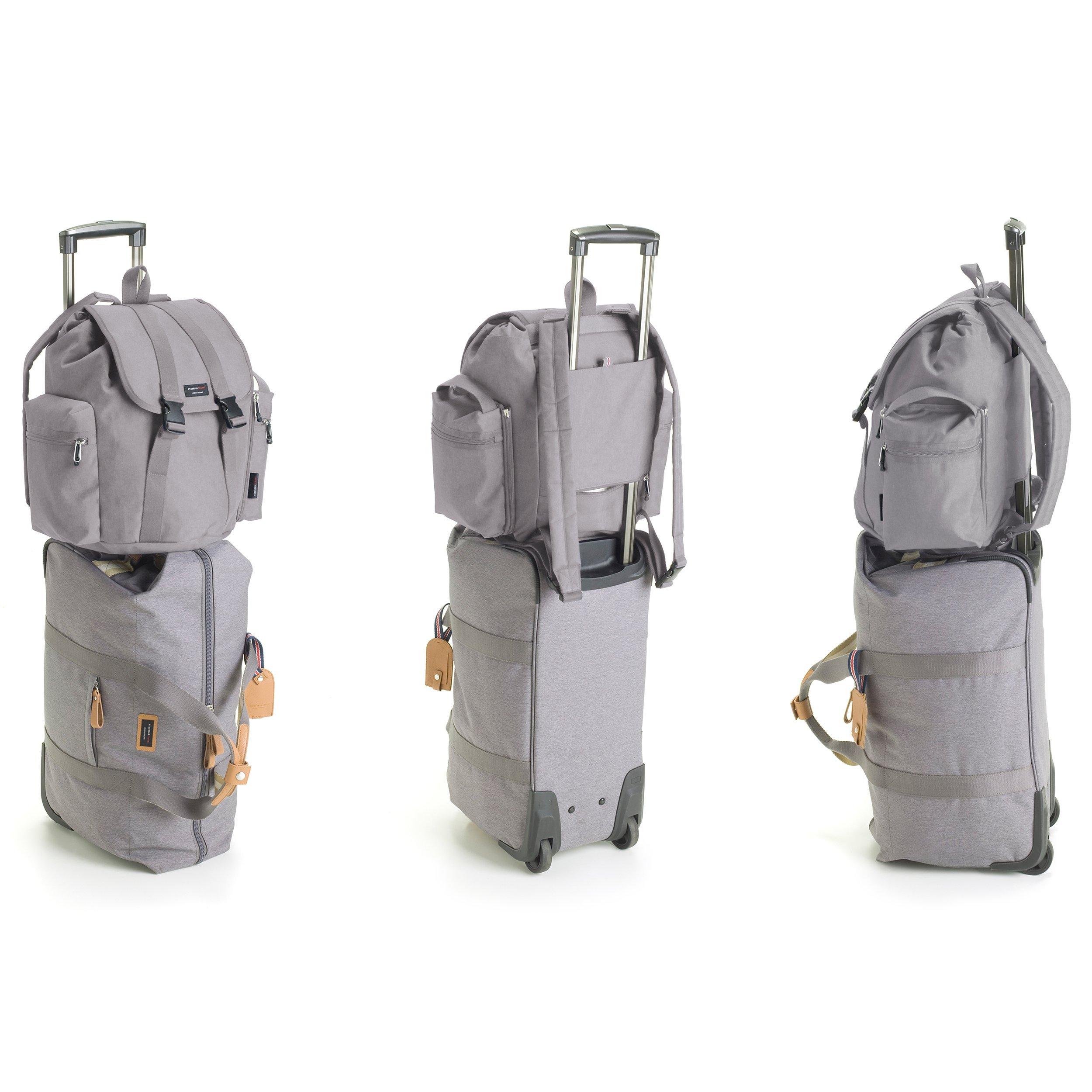The shoulder bag and additional backpack can slot on the frame thanks to the dual-level telescopic handle, making it easily transportable. For space-saving storage, the unique fold-away organiser inside can be folded flat, whilst the two-way top zipper with leather pulls allow you to expand the bag for extra space when you need it.