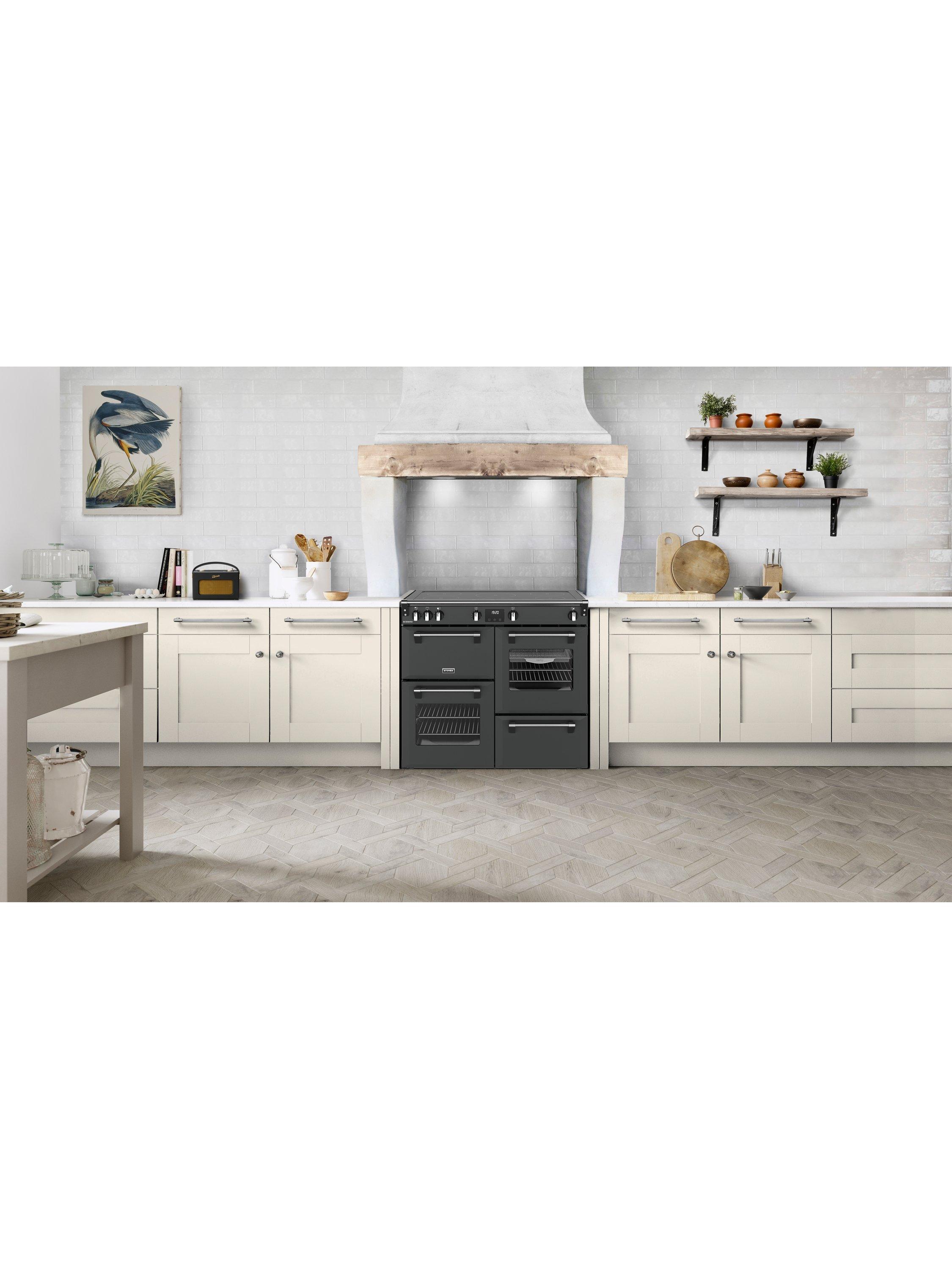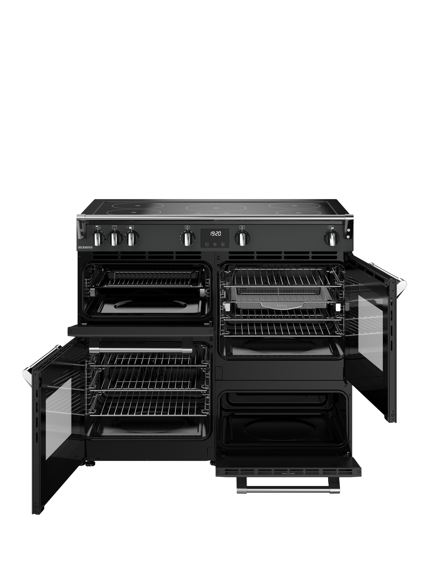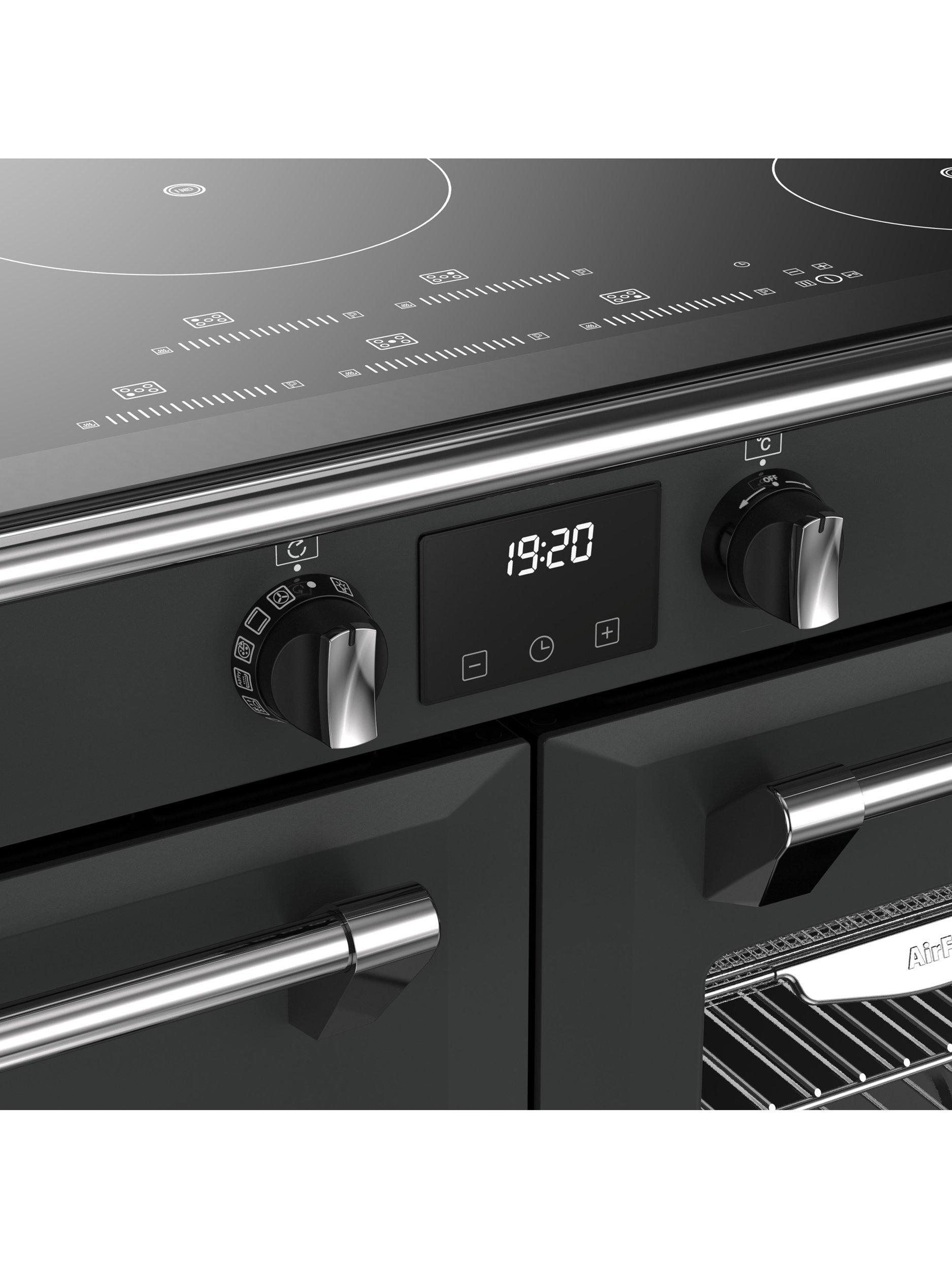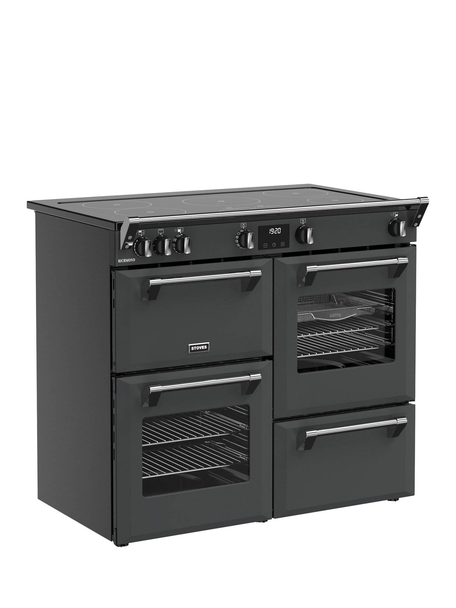A contemporary take on a classic range cooker, this 100cm Stoves Richmond Electric Induction Range Cooker combines traditional reliability with a host of innovative features to help you get the best results. The unique Quad Oven™ is a Stoves exclusive that gives you 196 litres of cooking capacity across four ovens – including a dedicated Slow Cook Oven, conventional oven and Maxi-Grill™, Equiflow™ fanned oven, and multifunctional main oven with 13 different settings. This includes rapid pre-heat so you can get cooking sooner, and the AirFry function and tray – giving you that unbeatable crispness with little to no oil. Up on the hob, this electric model also features advanced induction technology, which heats the pan instead of the hob surface to make cooking safer, faster and more energy efficient. Each of the five induction zones is controlled by an intuitive touch control panel. Beyond the cooking capabilities, there’s a host of other features designed to help you get the best results, including the TrueTemp™ digital thermostat, Maxi-Clock™ programmer and SteamCleanse cleaning assistant. All this culinary potential comes in a slick, timeless design to bring some serious style to your kitchen.