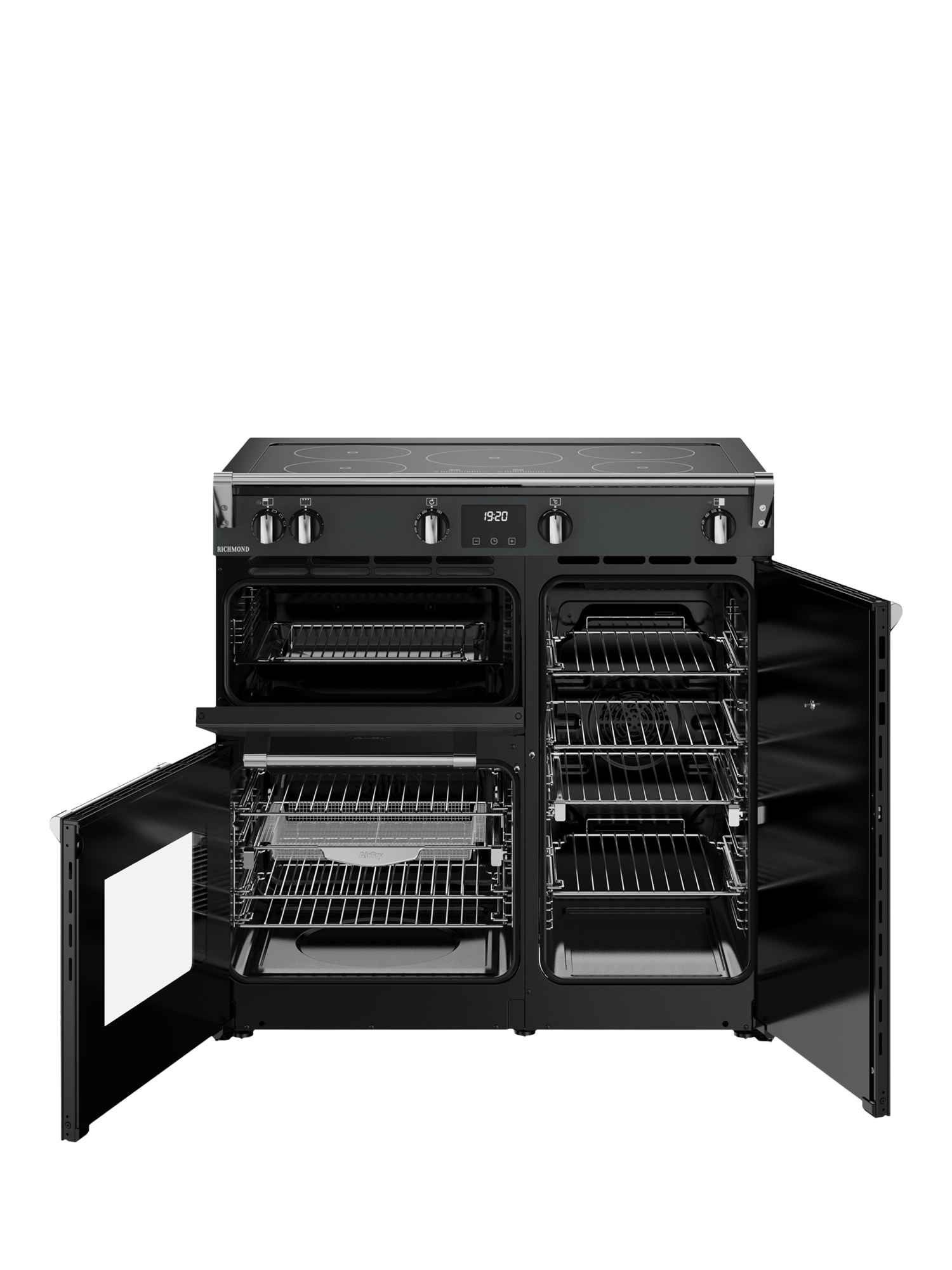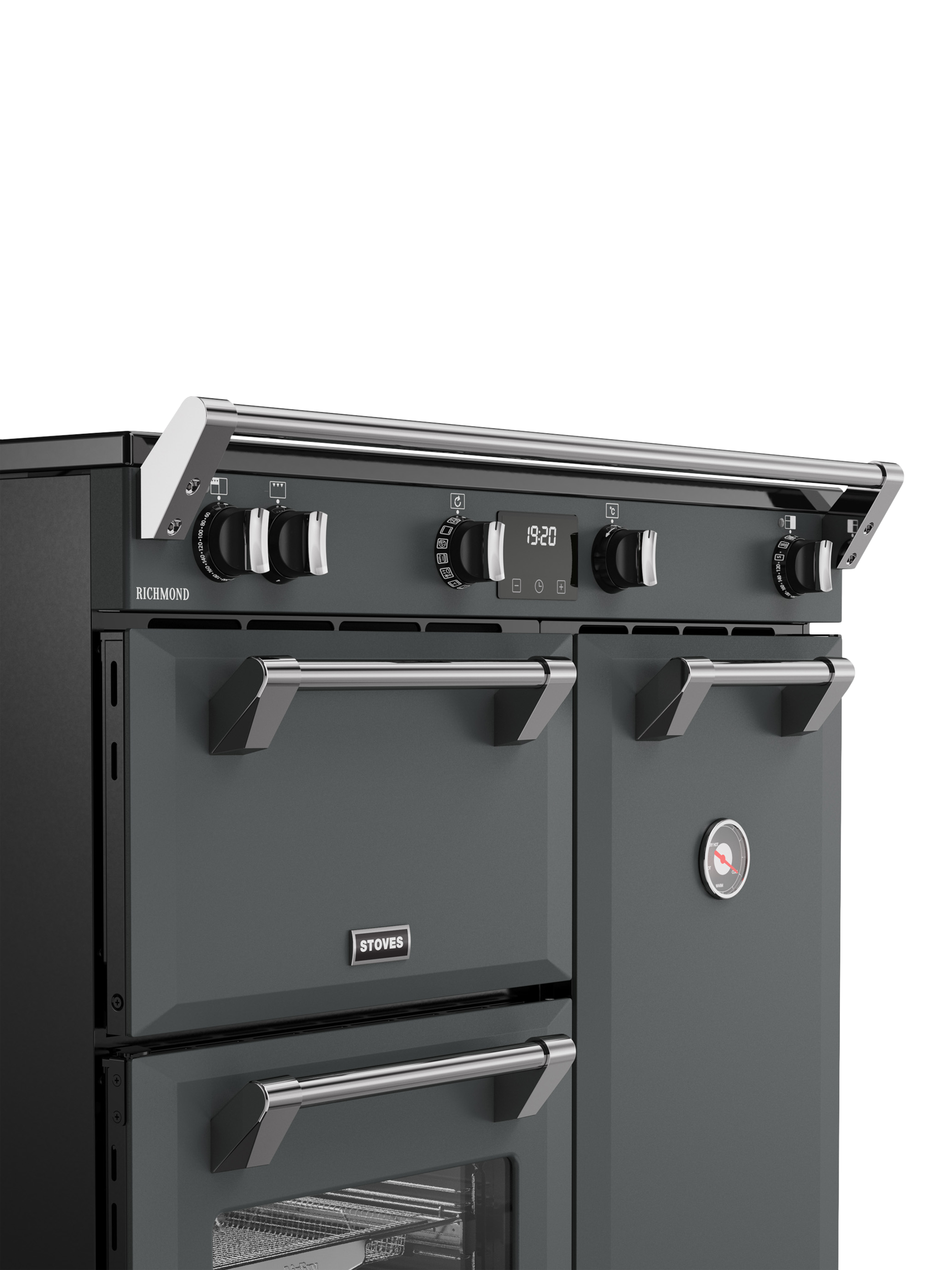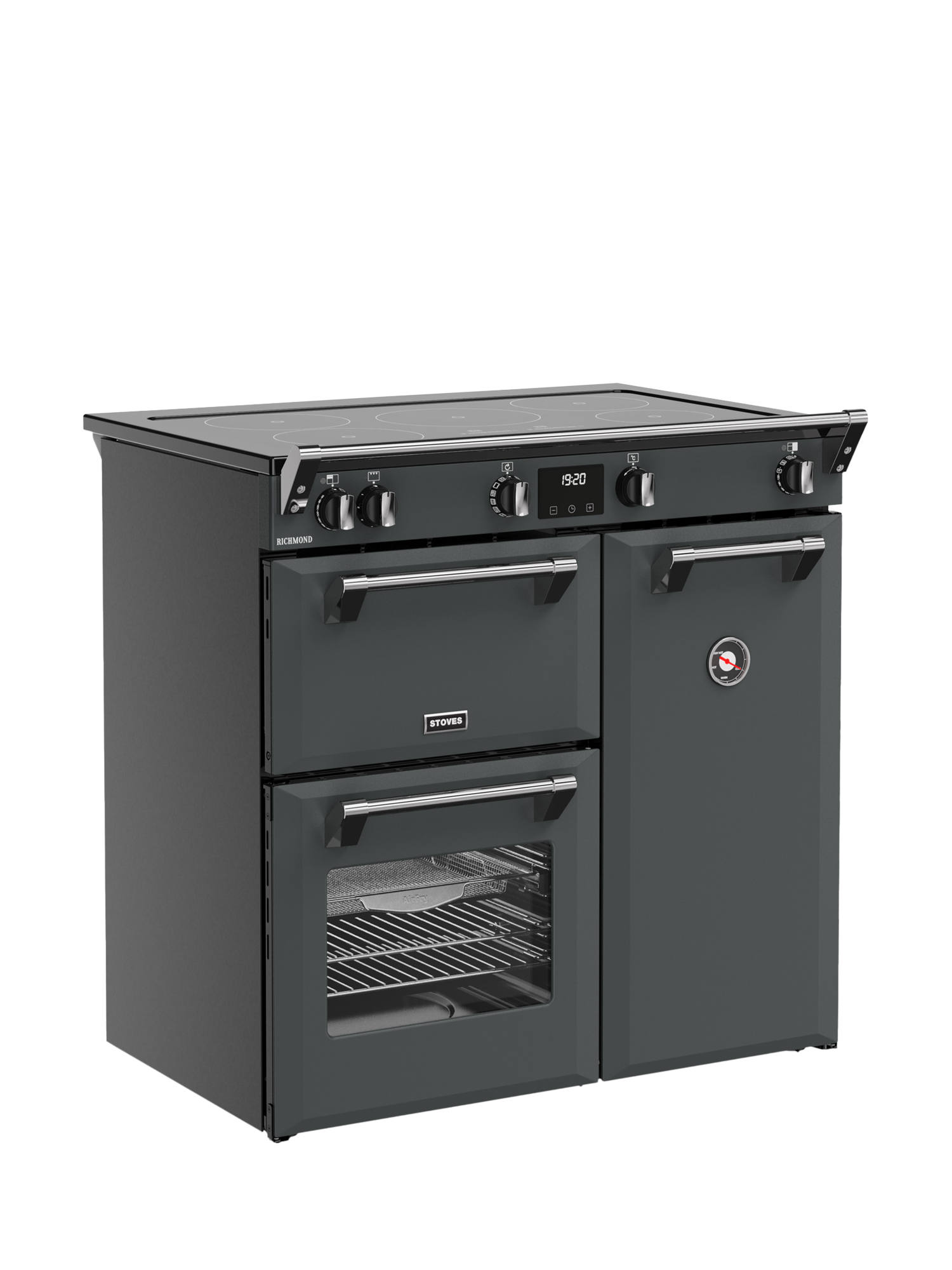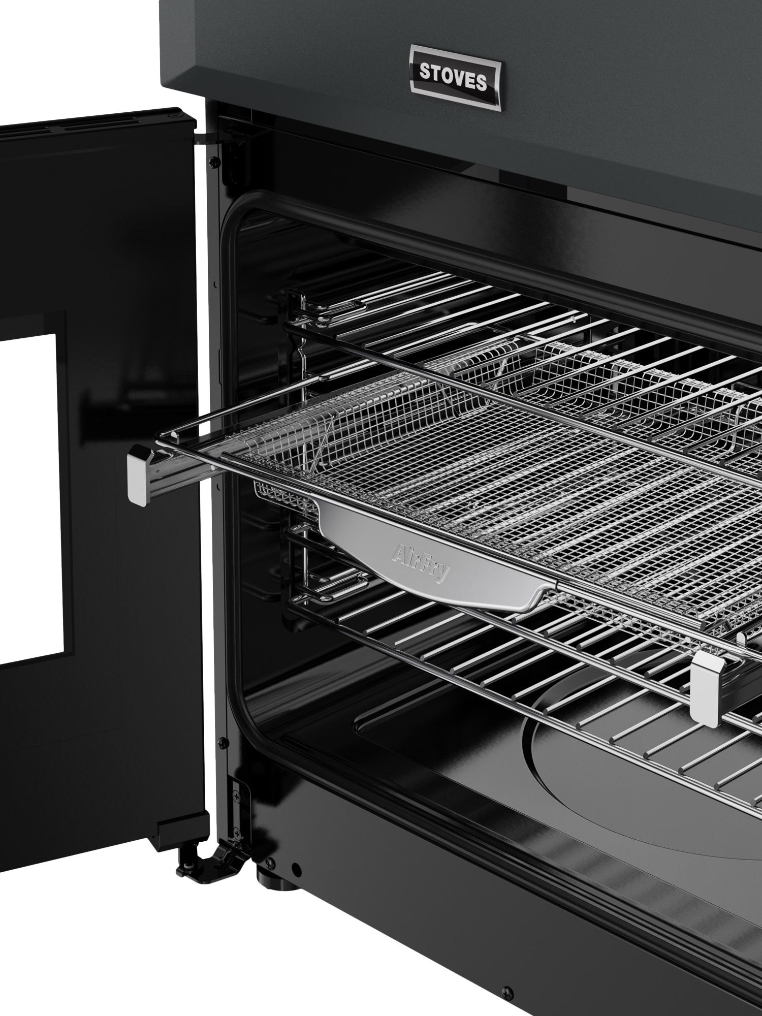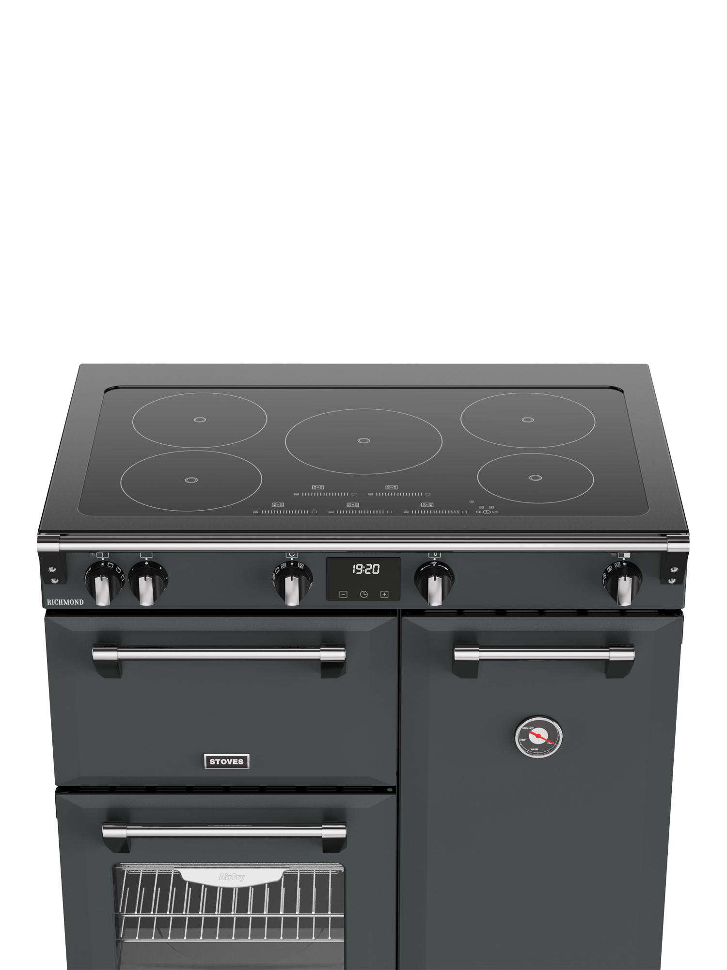 A contemporary take on a classic range cooker, the Stoves Richmond Electric Induction Range Cooker combines traditional reliability with a host of innovative features to help you get the best results. Three ovens, five induction zones and 174 litres of cooking capacity create more culinary opportunities than ever before. You have the choice of the conventional oven and Maxi-Grill™; the Titan™ tall fanned oven; and the multifunctional main oven with 13 different settings. This includes rapid pre-heat and the AirFry function with specially designed tray – giving you that unbeatable crispness with little to no oil. This 90cm electric model also features advanced induction technology, which heats the pan instead of the hob surface to make cooking safer, faster and more energy efficient. Each of the five induction zones is controlled by an intuitive touch control panel. Beyond the cooking capabilities, there’s a host of other features designed to help you get the best results, including the TrueTemp™ digital thermostat, Maxi-Clock™ programmer and SteamCleanse cleaning assistant. All this culinary potential comes in a slick, timeless design to bring some serious style to your kitchen.