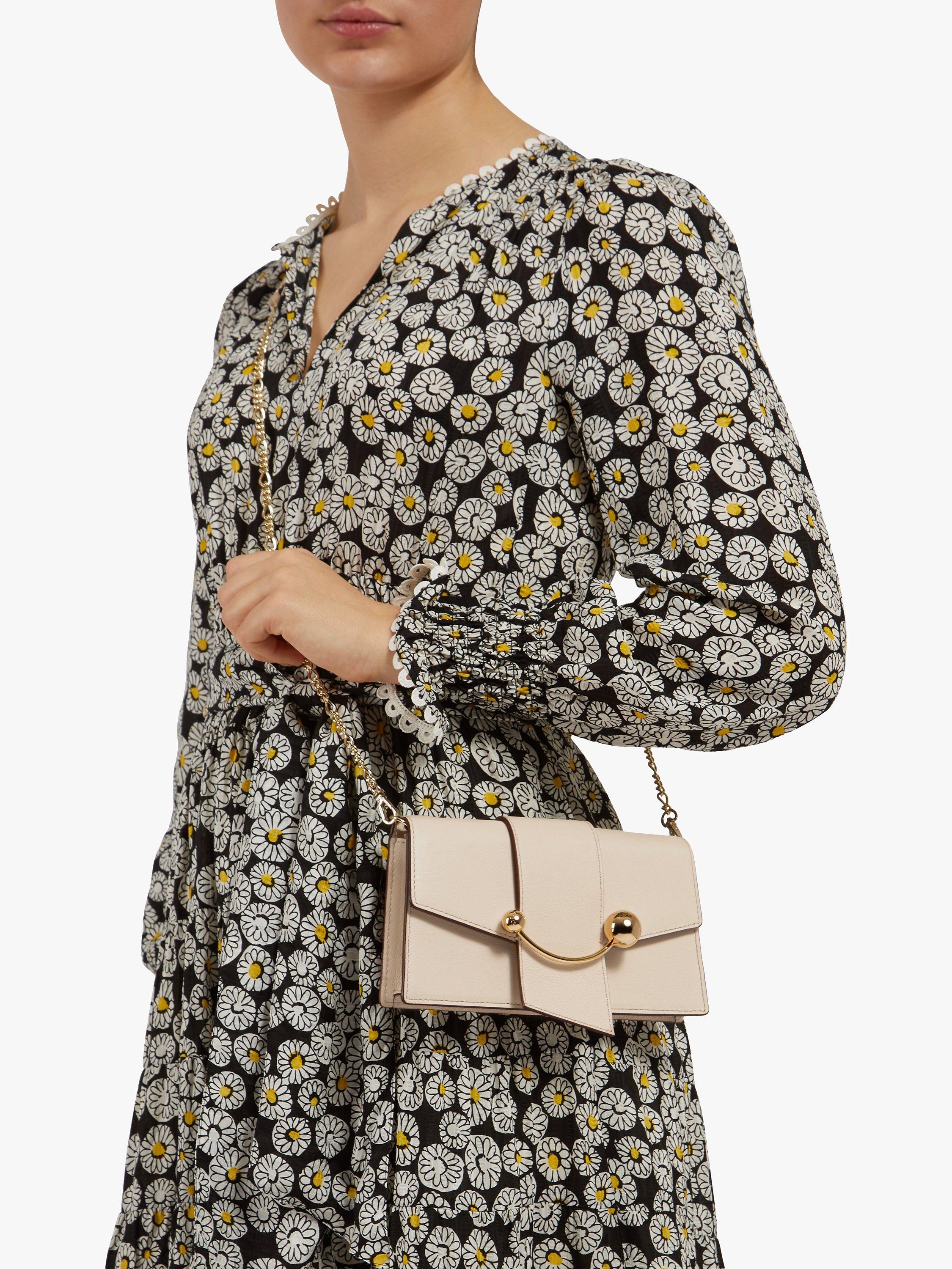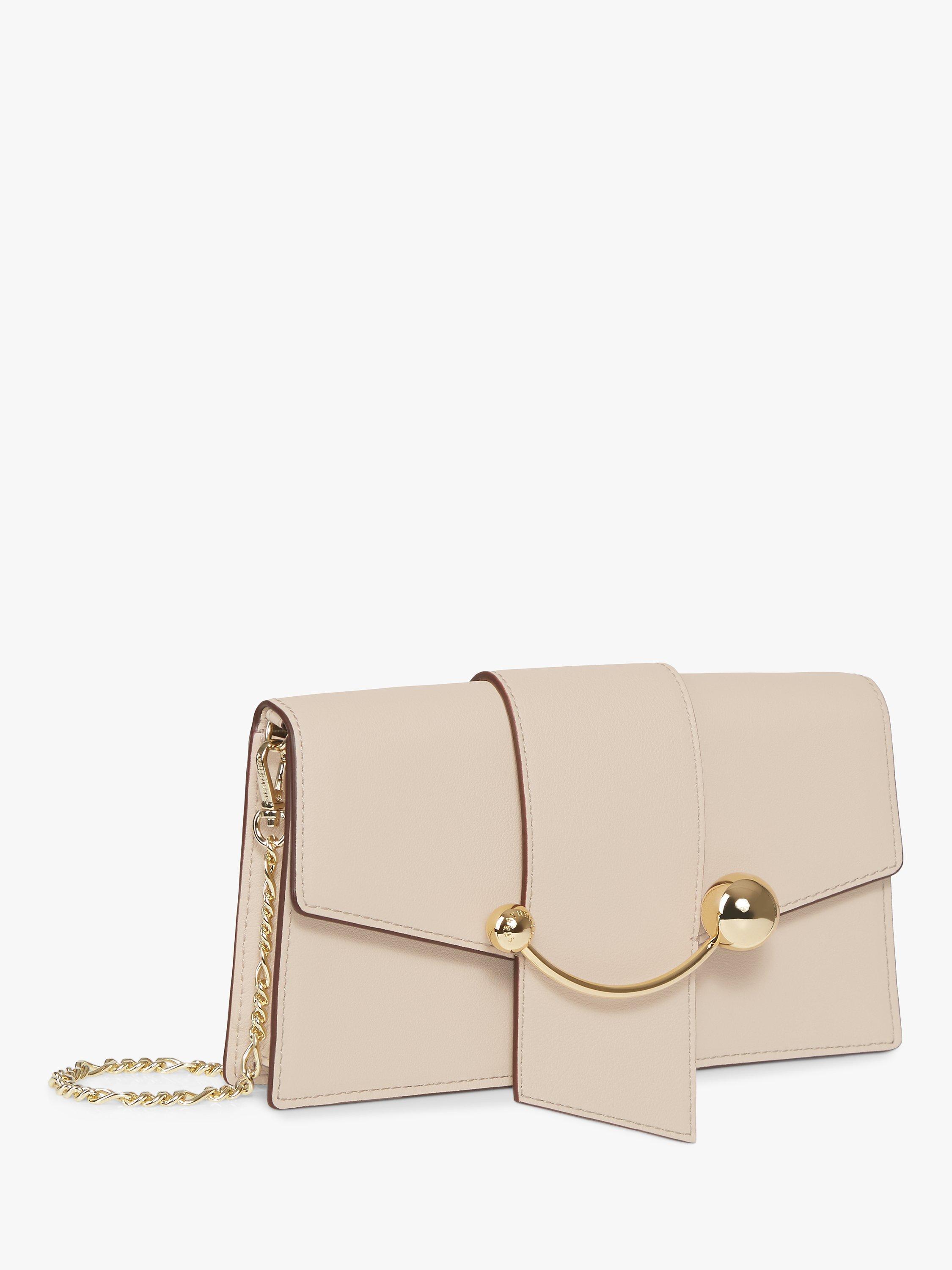 Adding a stylish flair to any look, Strathberry's Crescent on a Chain is your perfect plus one. Fitting just the essentials, this style features card slots and a zipped interior compartment for your notes, keys and favourite lipstick. Securely closed with a magnetic front closure featuring our iconic Strathberry crescent gold bar, a signature detail designed to elevate any look. The detachable gold chain also takes this style from a chic clutch, to crossbody and shoulder bag, with elegant ease.