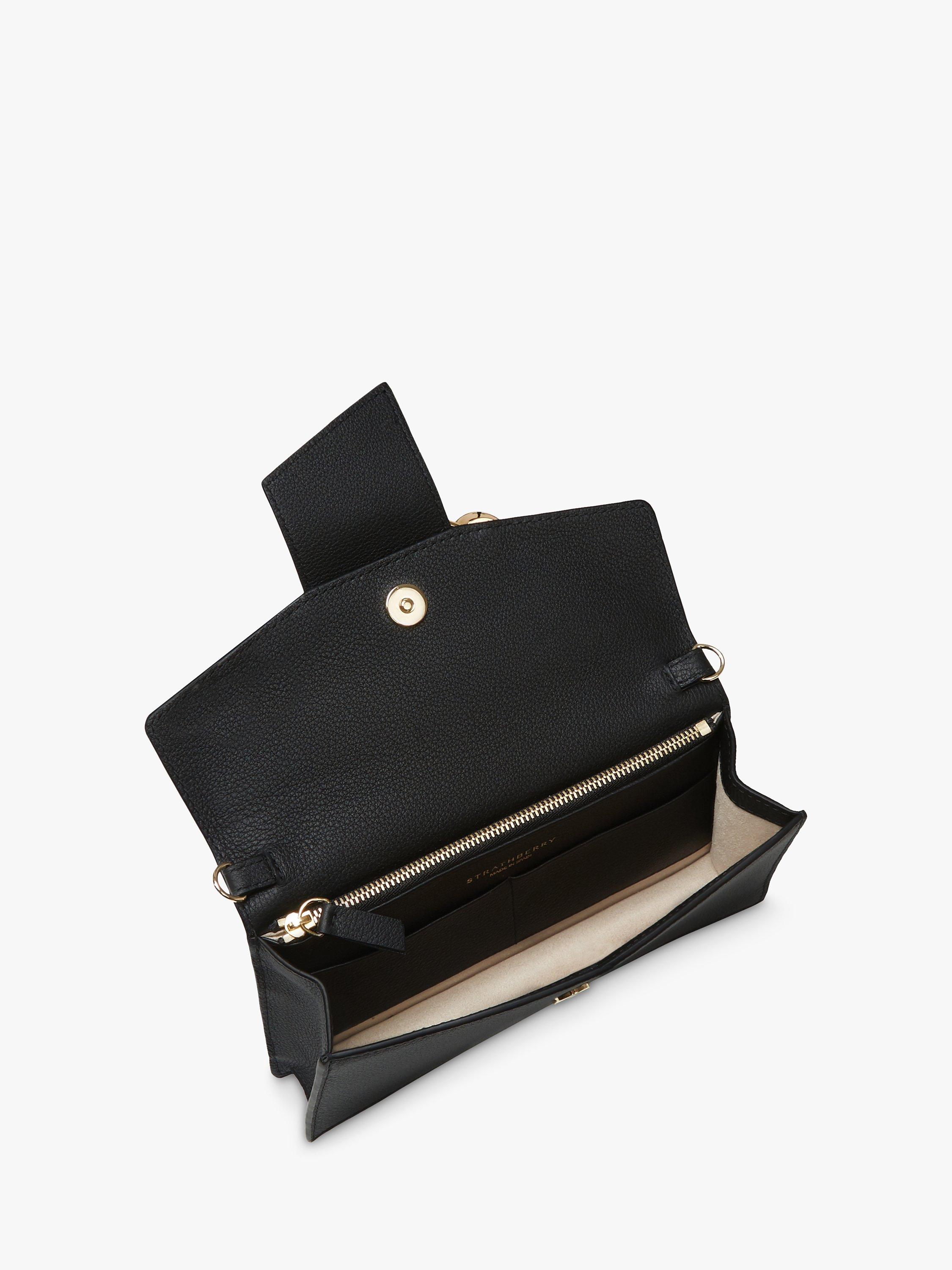 Adding a stylish flair to any look, Strathberry's Crescent on a Chain is your perfect plus one. Fitting just the essentials, this style features card slots and a zipped interior compartment for your notes, keys and favourite lipstick. Securely closed with a magnetic front closure featuring our iconic Strathberry crescent gold bar, a signature detail designed to elevate any look. The detachable gold chain also takes this style from a chic clutch, to crossbody and shoulder bag, with elegant ease.