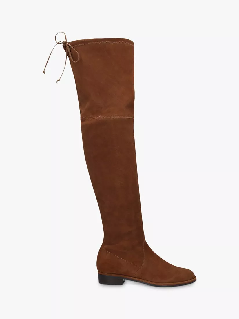 These over-the-knee stretch boots are style icons. Distinguished by signature streamlined silhouette, they deliver the sophistication of a high heel in an easy-to-wear flat block heel. Bonus: They are finished with a tie back detail, which allows them be adjusted for an even sleeker fit.