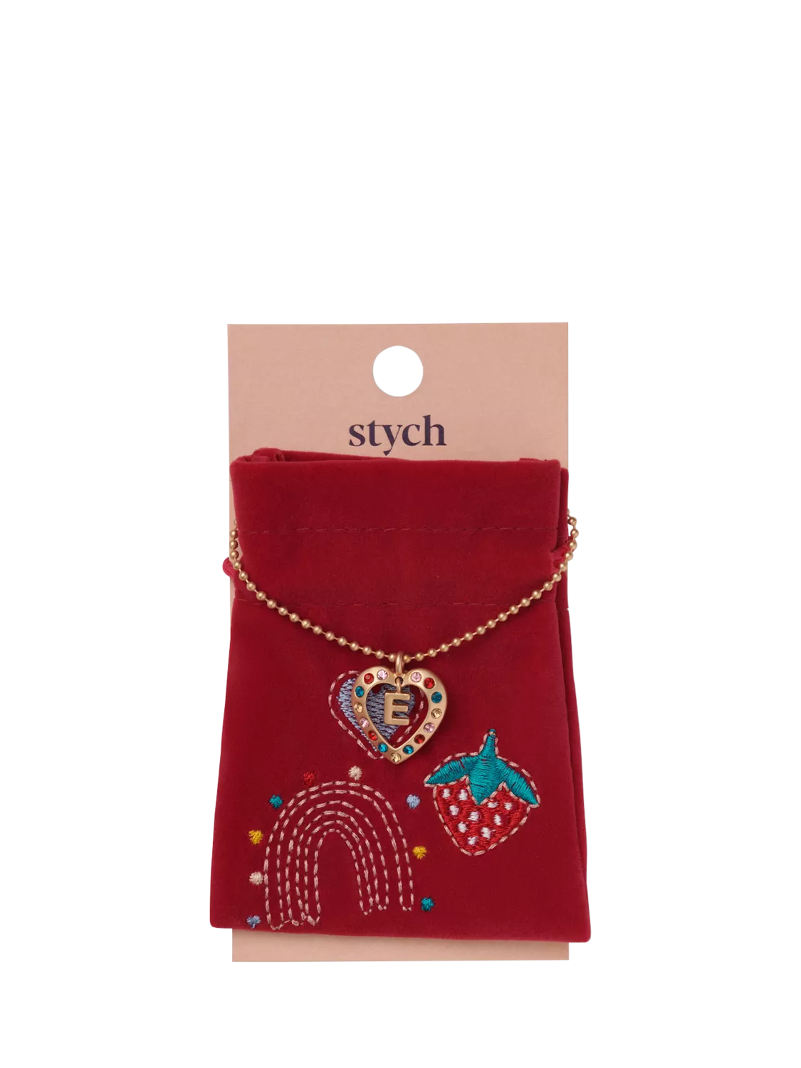 StychInitial E Gem Necklace, Gold