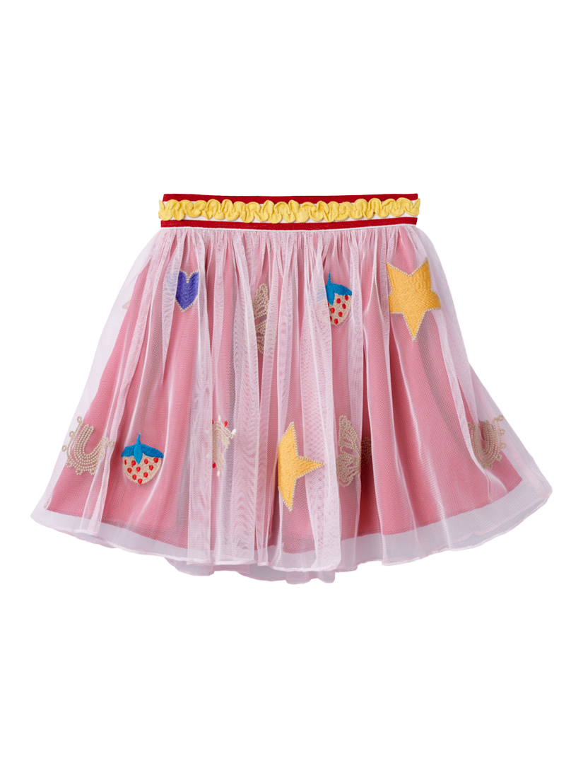 Get ready for special occasions with this applique tulle skirt. Cut to a flared shaped, this skirt has an elasticated ric-rac detailed waistband.