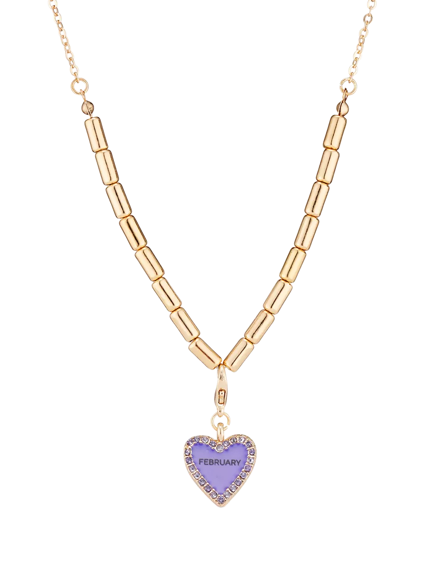 The perfect keepsake, this beaded chain necklace from Stych features a heart-shaped charm showcasing their month and birthstone gem. Presented in a pink drawstring pouch.