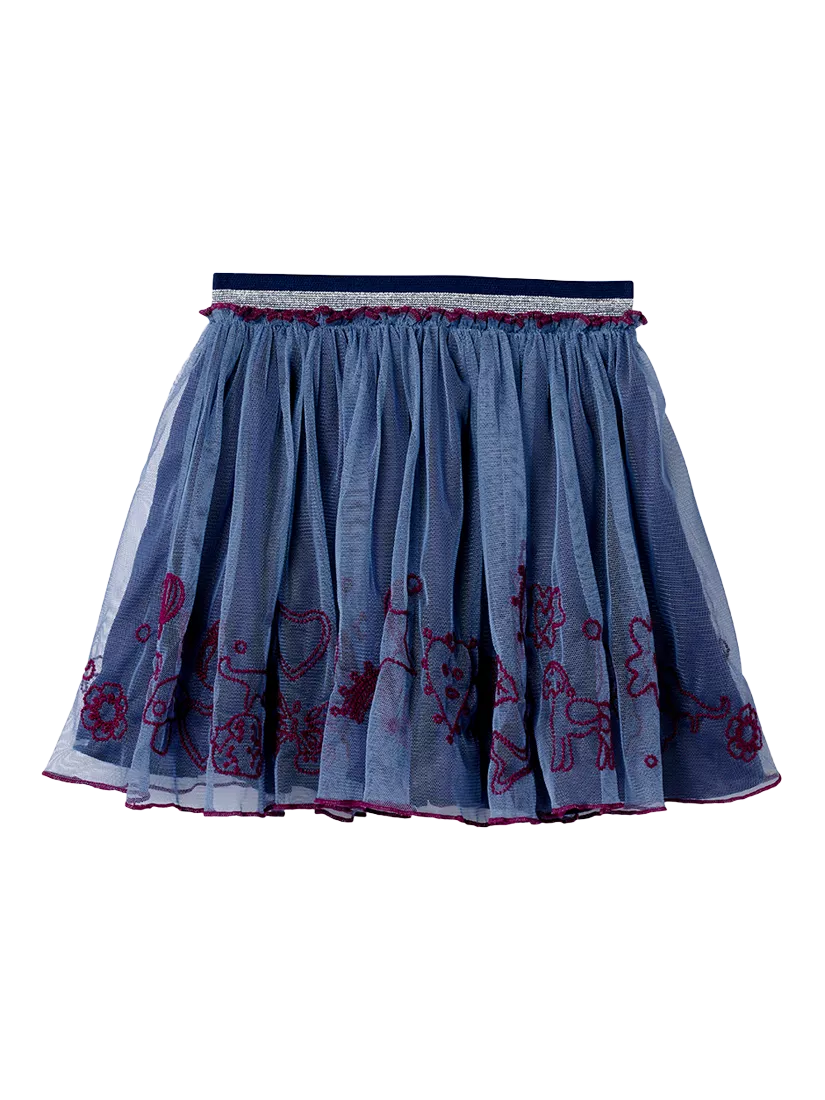 Get ready for special occasions with this embroidered tulle skirt. Cut to a flared shaped, this skirt has a stretchy waistband for a great fit.