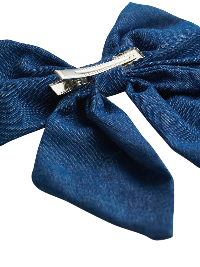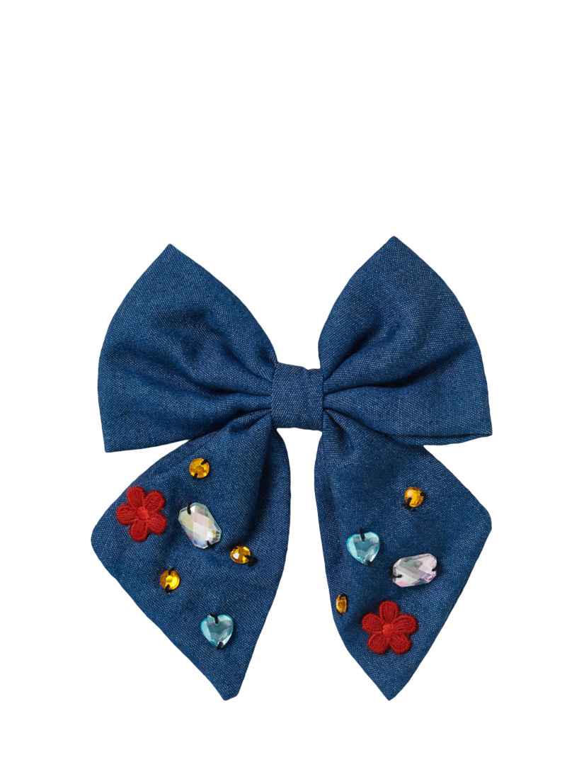 A hair accessory with pizzazz. This statement bow hair clip is embellished with gems and flower patches.