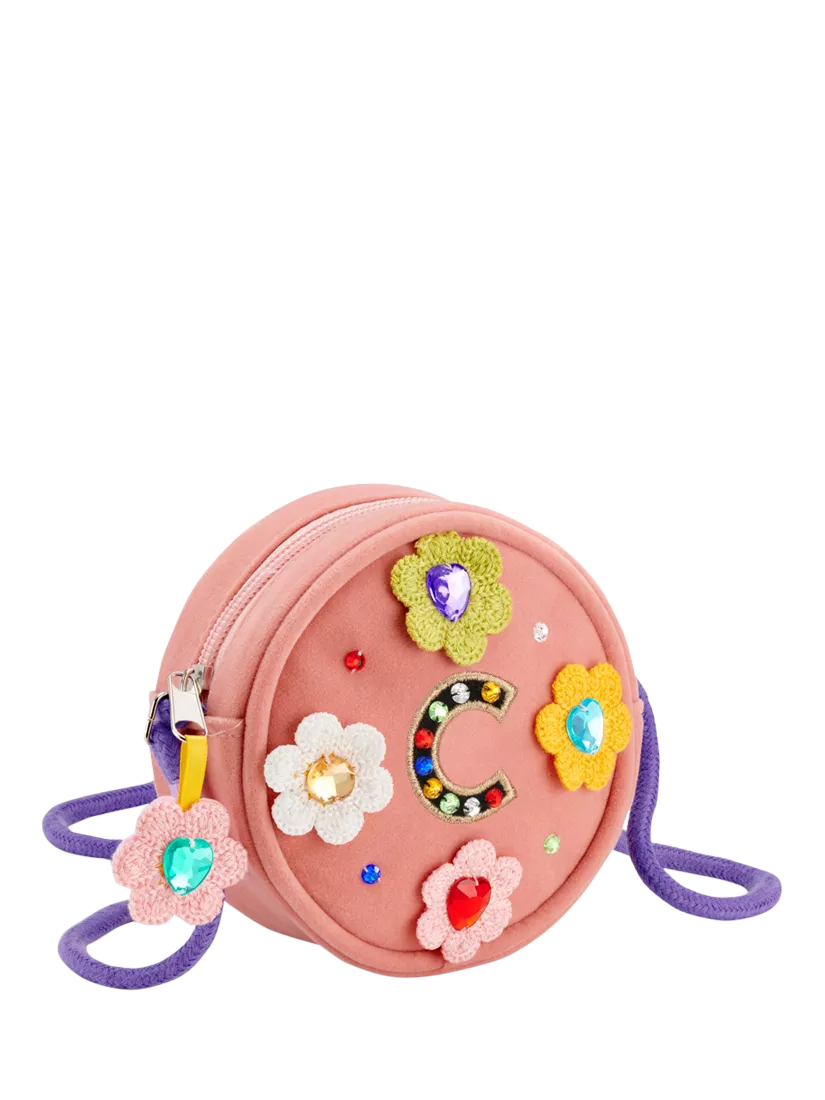 With decorative gems, an applique initial and 3D flowers, this round bag by Stch features a flower zip detail and a shoulder strap.