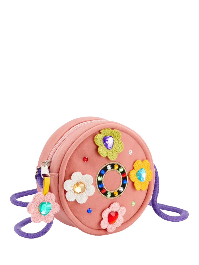 With decorative gems, an applique initial and 3D flowers, this round bag by Stch features a flower zip detail and a shoulder strap.