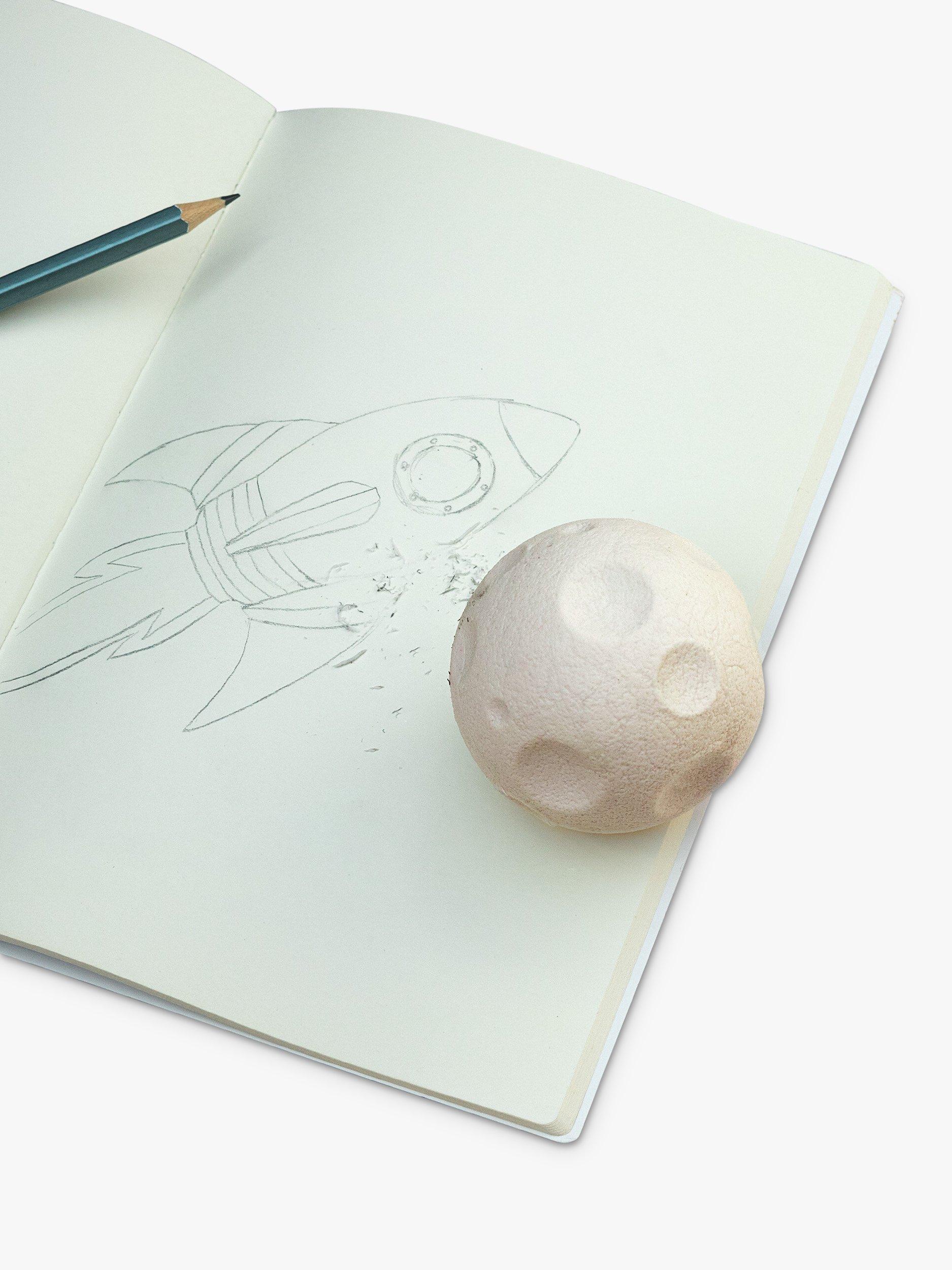 Inspired by the enchanting beauty of the moon. Our giant lunar eraser brings celestial charm to your desktop. The soft texture ensures smooth erasing without smudges. Effortlessly erase out your biggest errors. The more you erase, the faster the moon transitions through its lunar phases, from full to crescent!