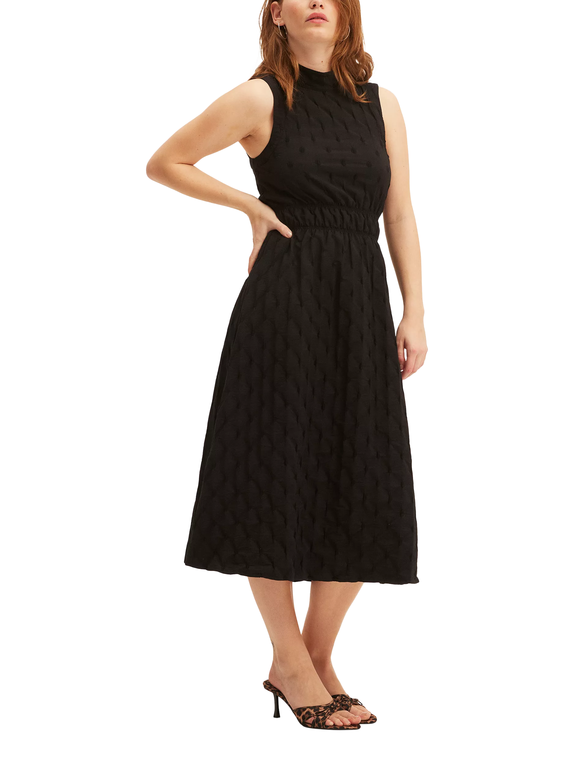 The Elodie Halter Dress features smocking at the waist and a deep V in the back with a button for closure. An A-shaped silhouette with a relaxed fit.