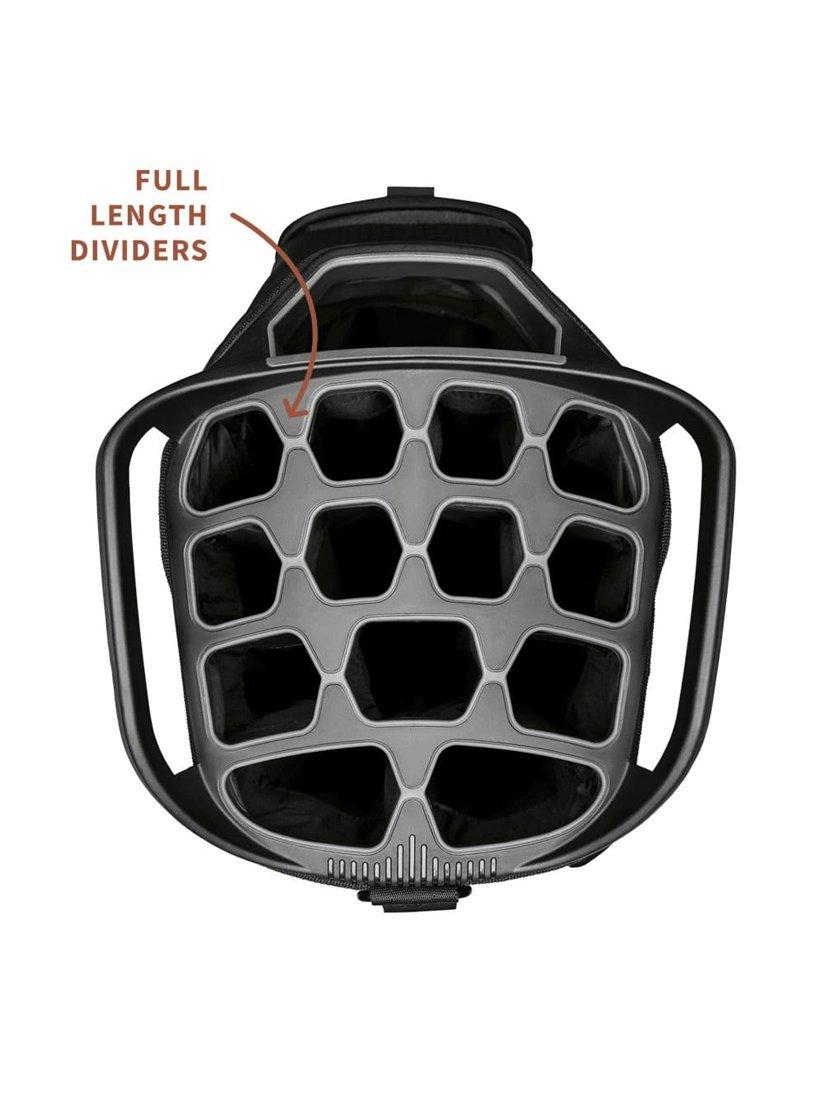 Designed for golfers who demand maximum storage, superior club organisation, and lightweight performance. Weighing just 3.2kg, the Big Rig Golf Bag is lighter than most cart bags without sacrificing durability or style. With a 14-way top divider, your clubs stay protected and easy to access, while 12 spacious pockets give you dedicated space for all your gear. The included water-resistant rain cover ensures your clubs stay dry, even when the weather turns. Perfect for use with a trolley or buggy, the Big Rig features a stable flat base for a secure fit, plus a padded single shoulder strap for easy lifting and carrying.
