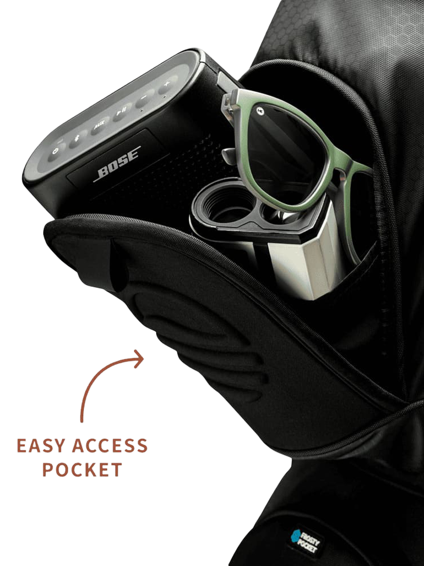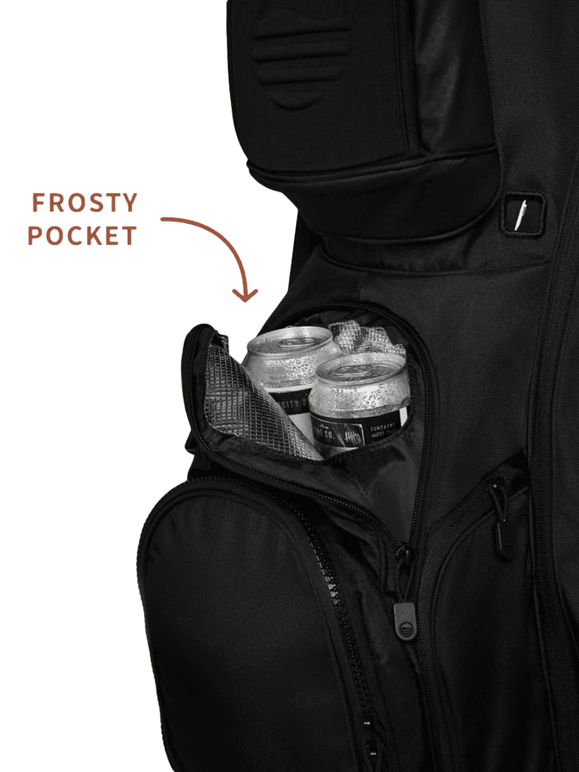 - Frosty Pocket drinks holder x 1, Oversized ball pocket x1, Storage compartments x12, Weather sealed valuables pocket x1, Towel ring x1, Magnet top pocket x1, Glove holder x1