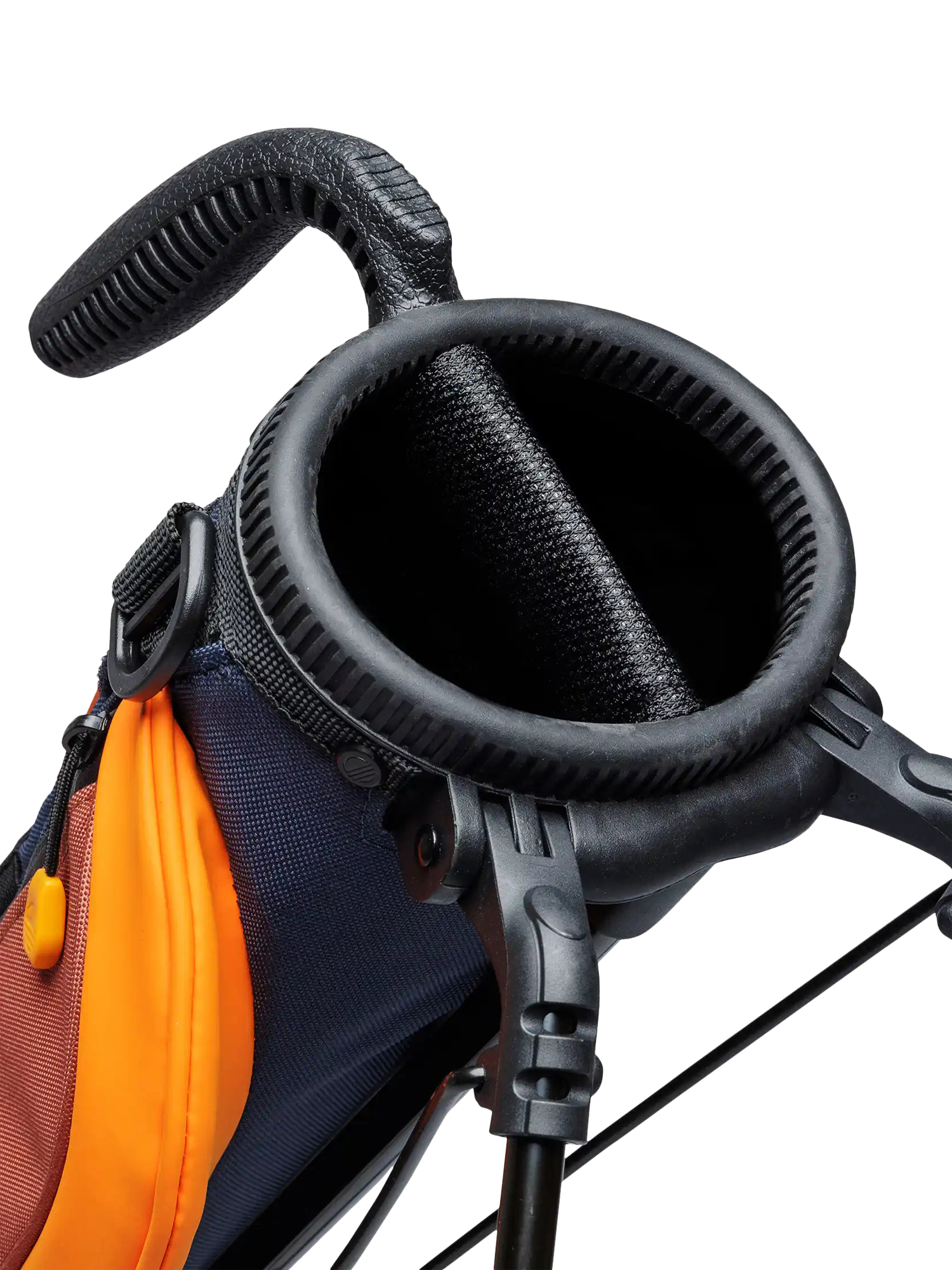 This golf bag with stand sports a dual compartment top opening to organise and easily fit up to 6 of your clubs. It also features a premium-stitched pocket to store your golf balls inside as well as a valuables pouch and an insulated drink pouch. Weighing under 1kg, it's ultra lightweight and sports a durable, easy carry handle so that you can carry it from hole to hole without straining yourself. Easy to keep upright when selecting your clubs thanks to the durable kick stand. High-quality performance materials ensure it won’t easily become damaged or wear down.