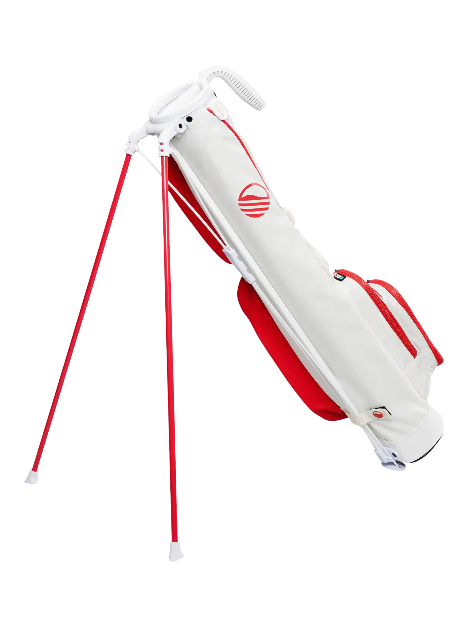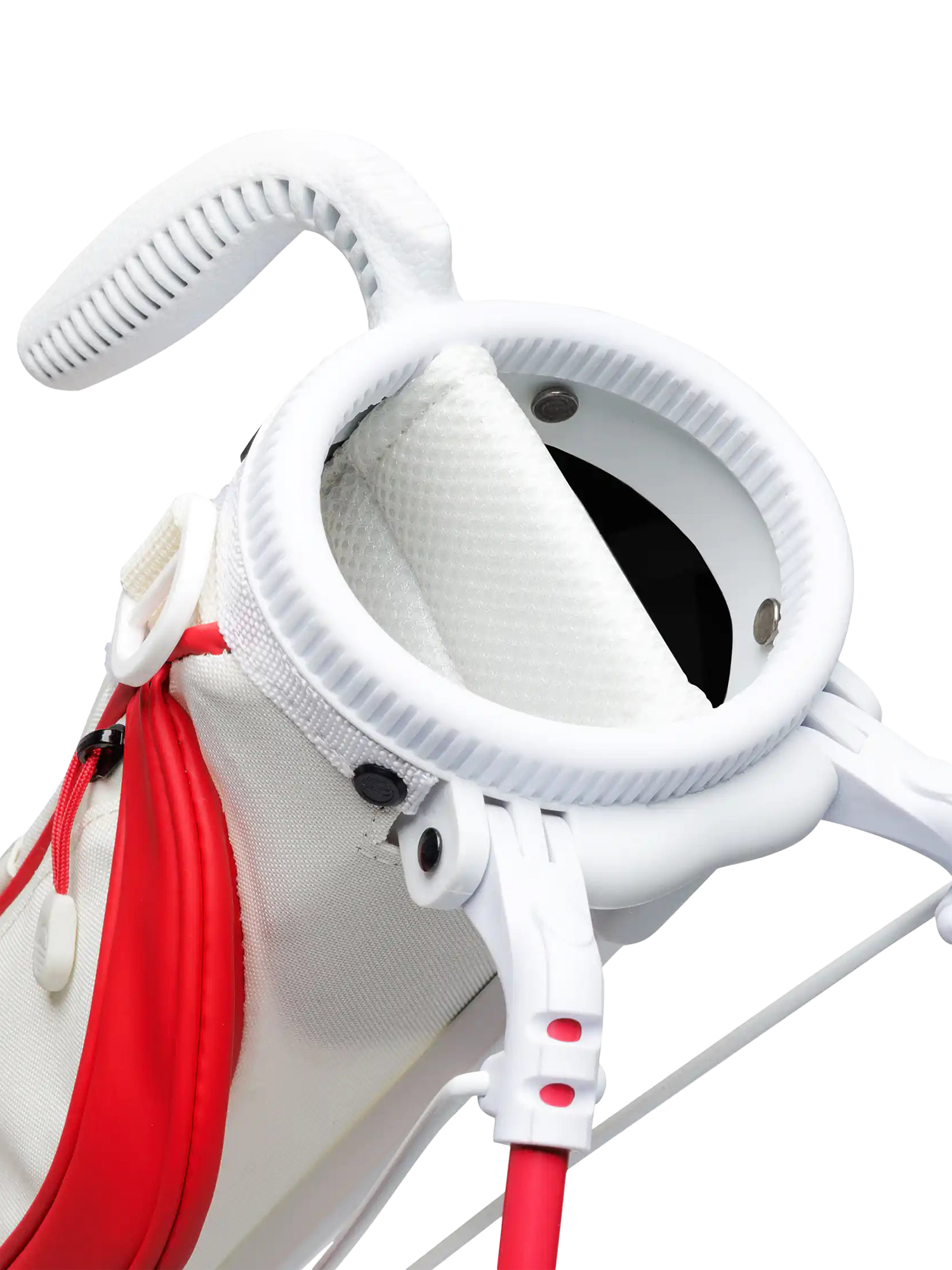 This golf bag with stand sports a dual compartment top opening to organise and easily fit up to 6 of your clubs. It also features a premium-stitched pocket to store your golf balls inside as well as a valuables pouch and an insulated drink pouch. Weighing under 1kg, it's ultra lightweight and sports a durable, easy carry handle so that you can carry it from hole to hole without straining yourself. Easy to keep upright when selecting your clubs thanks to the durable kick stand. High-quality performance materials ensure it won’t easily become damaged or wear down.