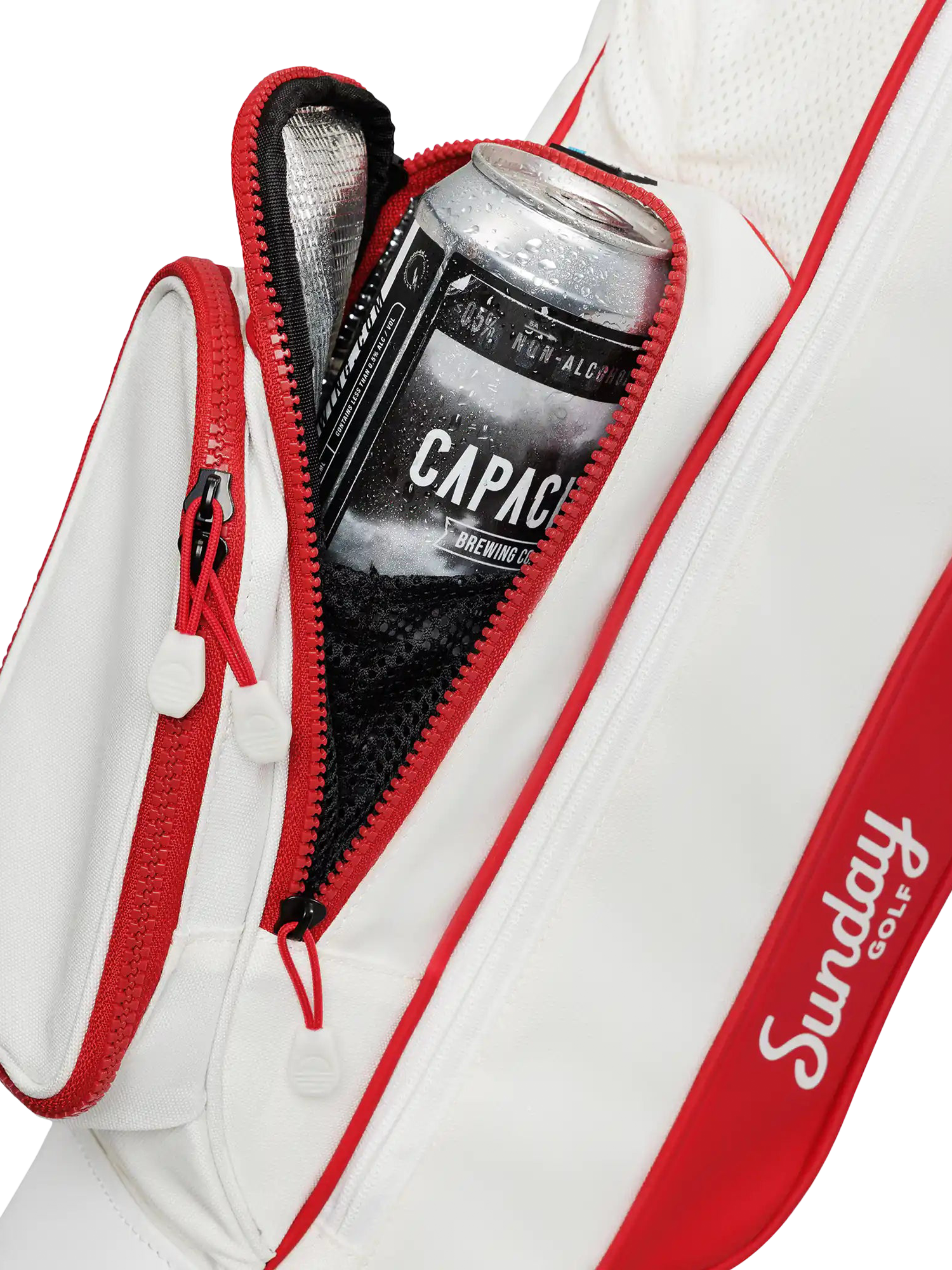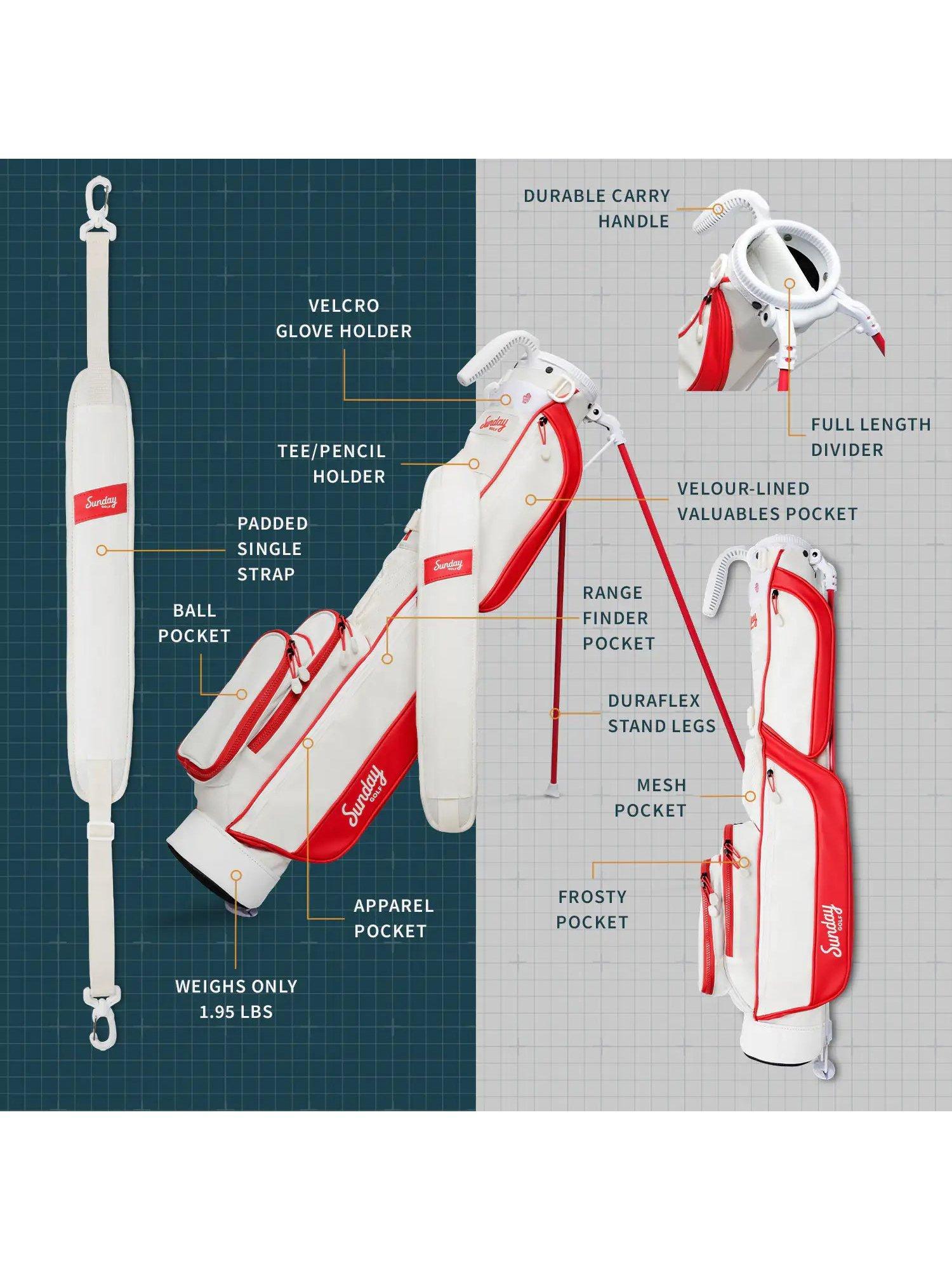 - Frosty Pocket drinks holder x 1, Tee/Pencil Holder x1, Ball Pocket x1, Easy Access Pocket x1, Mesh Pocket x1, Glove Holder x1