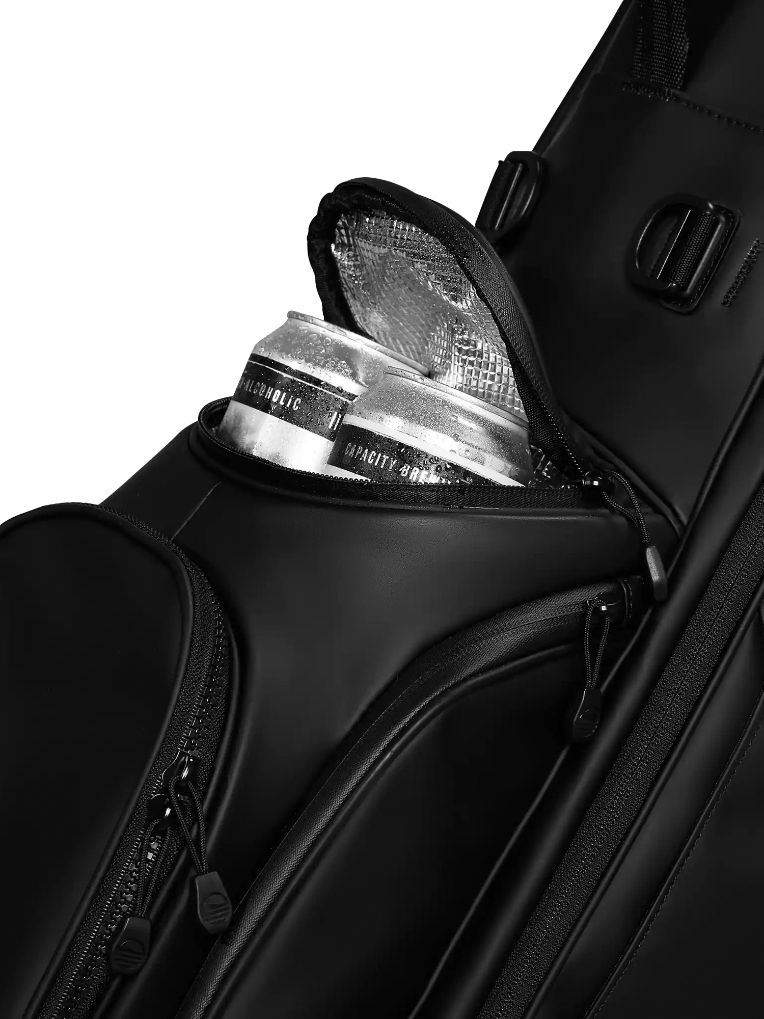 - Frosty Pocket drinks holder x 1, Ball pocket x1, Glove & towel holder x1, Valuables pocket x1, Range finder pocket x1, Mesh pocket x1, Apparel pocket x1, Smell proof pocket x1