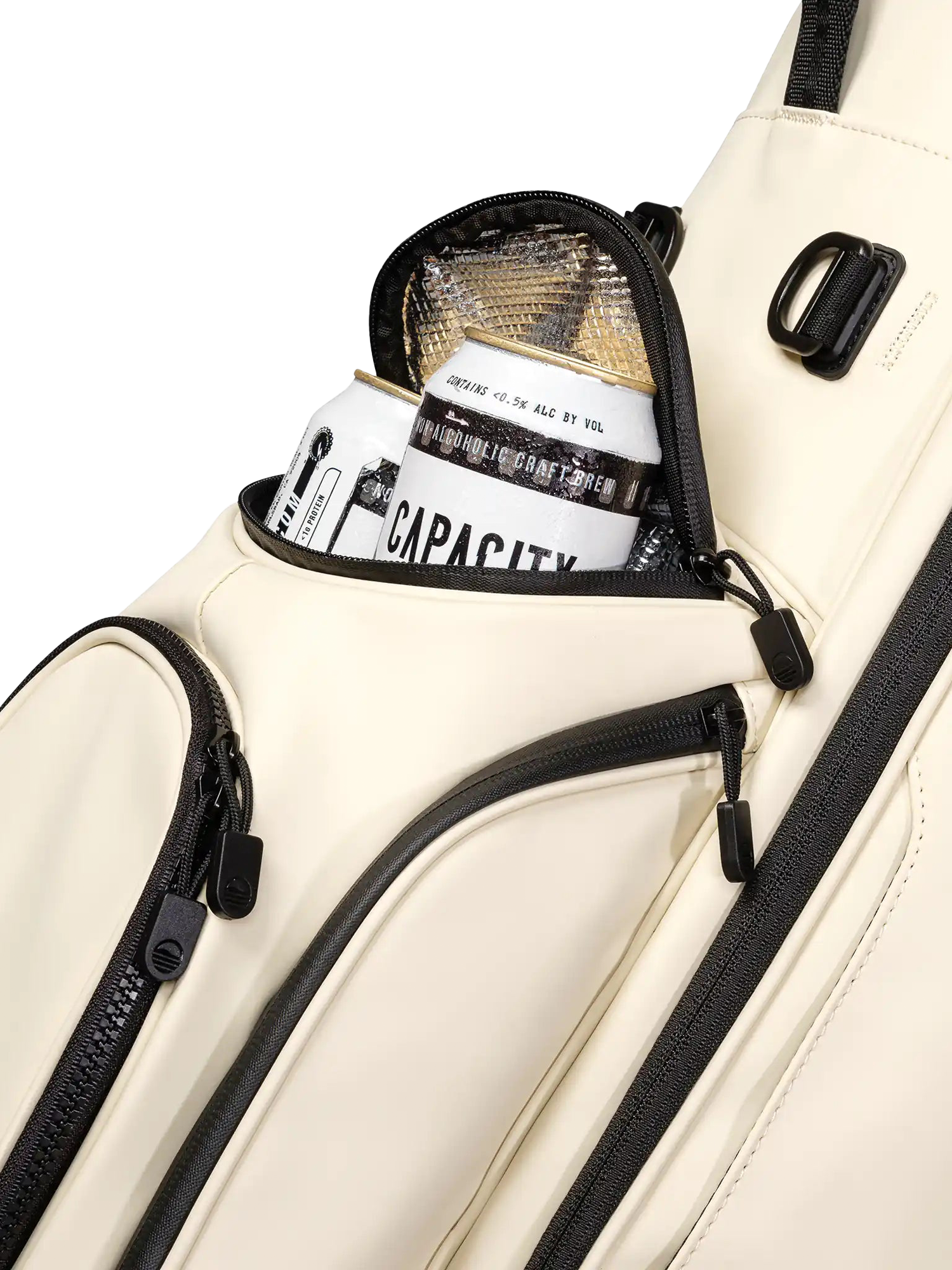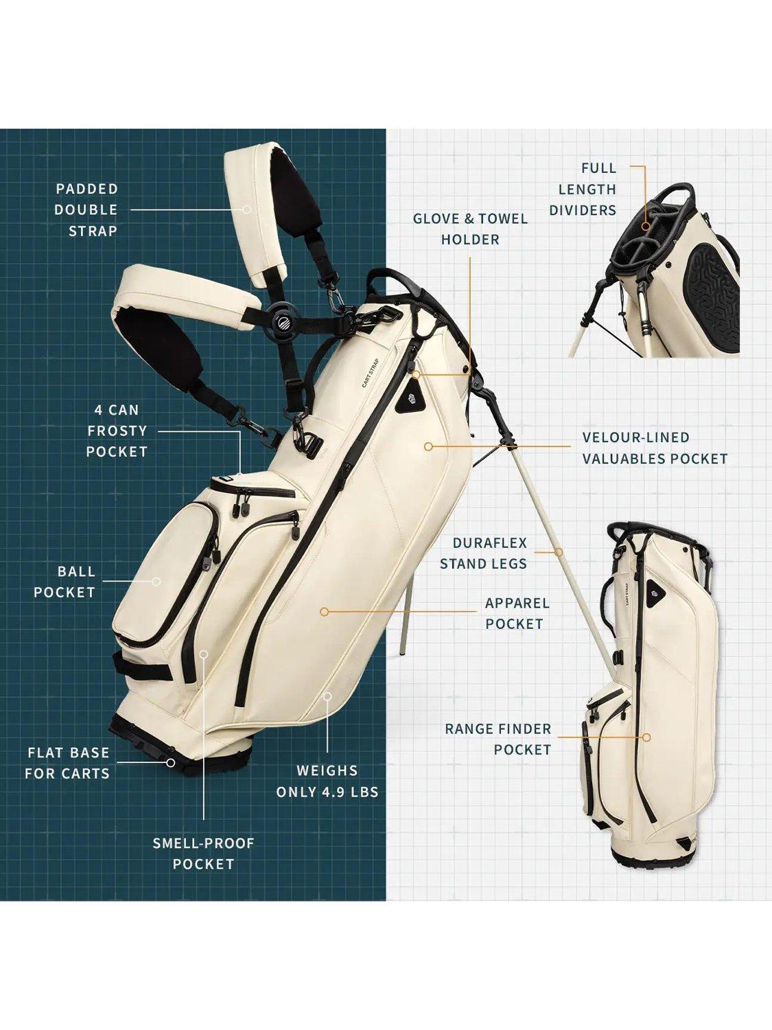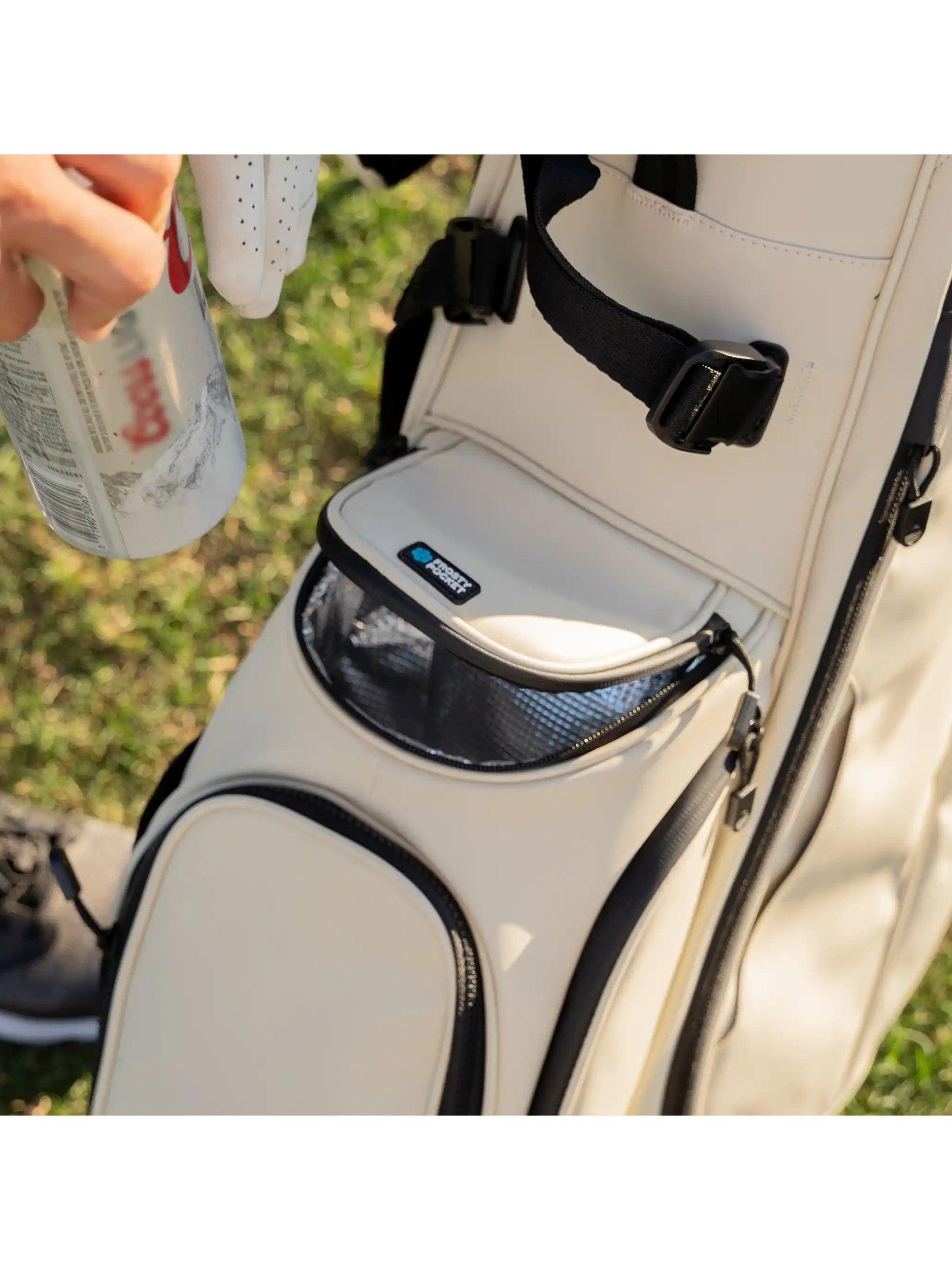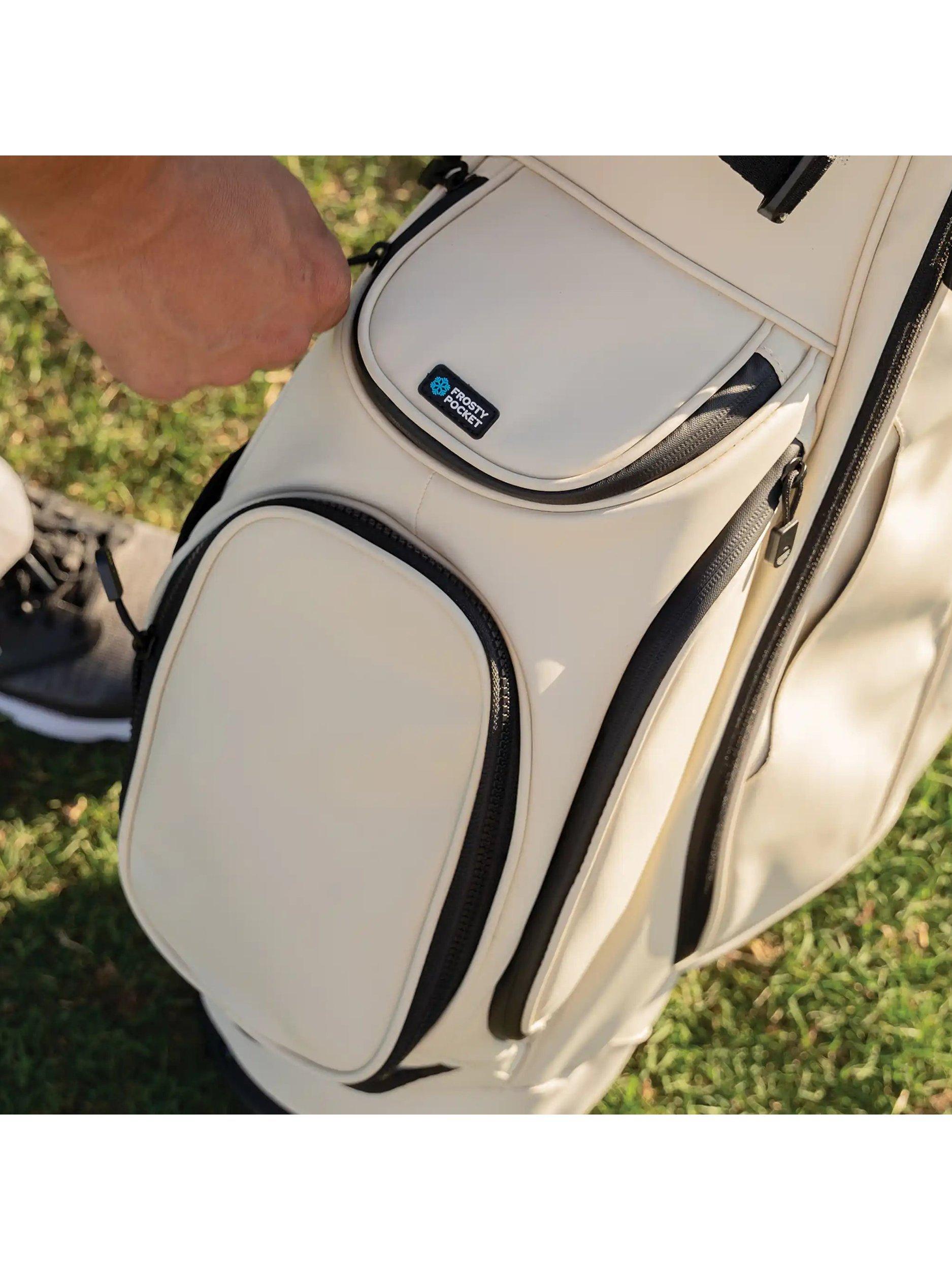 - Frosty Pocket drinks holder x 1, Ball pocket x1, Glove & towel holder x1, Valuables pocket x1, Range finder pocket x1, Mesh pocket x1, Apparel pocket x1, Smell proof pocket x1