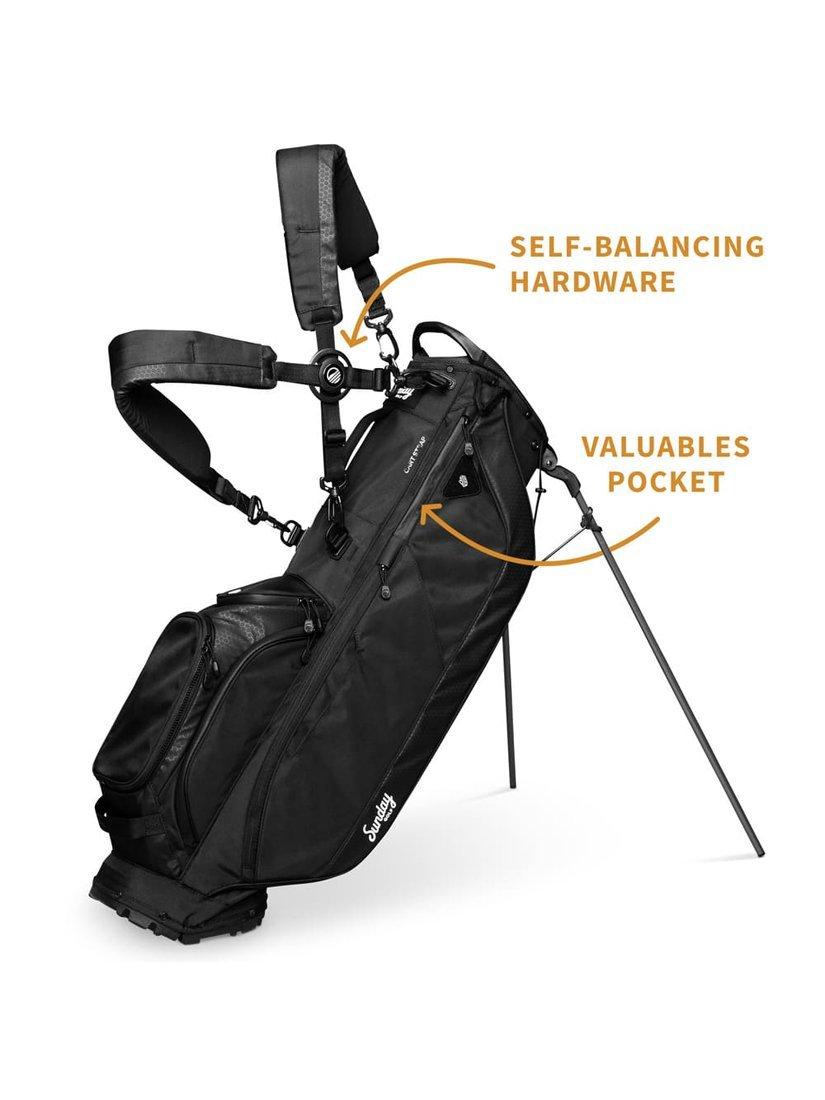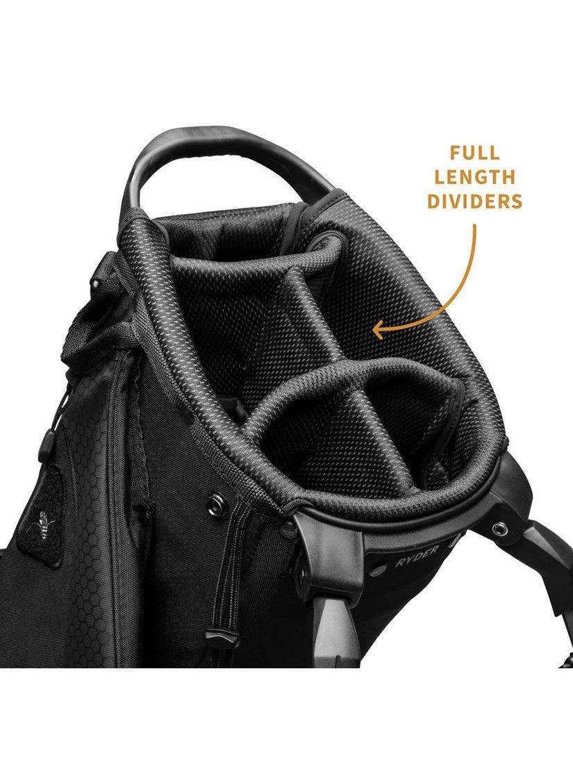 This ultra-lightweight golf bag is designed with a focus on convenience, comfort, and durability. Designed to hold up to 14 golf clubs with a 5-way full-length divider for easy organisation, it also features waterproof zips to protect your equipment from the elements and a pass-through strap for cart compatibility. A velour-lined valuables pocket keeps your personal items safe, and a unique smell-proof pocket stores your snacks. Also includes a tee holder, rain hood, riptape glove holder and built-in golf bag stand. The 7 spacious pockets offer plenty of storage space without adding unnecessary bulk. Complete with a stable flat base and self-balancing shoulder straps.