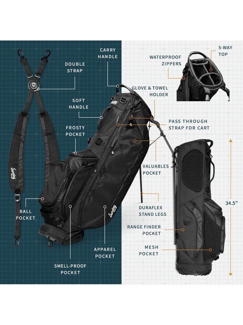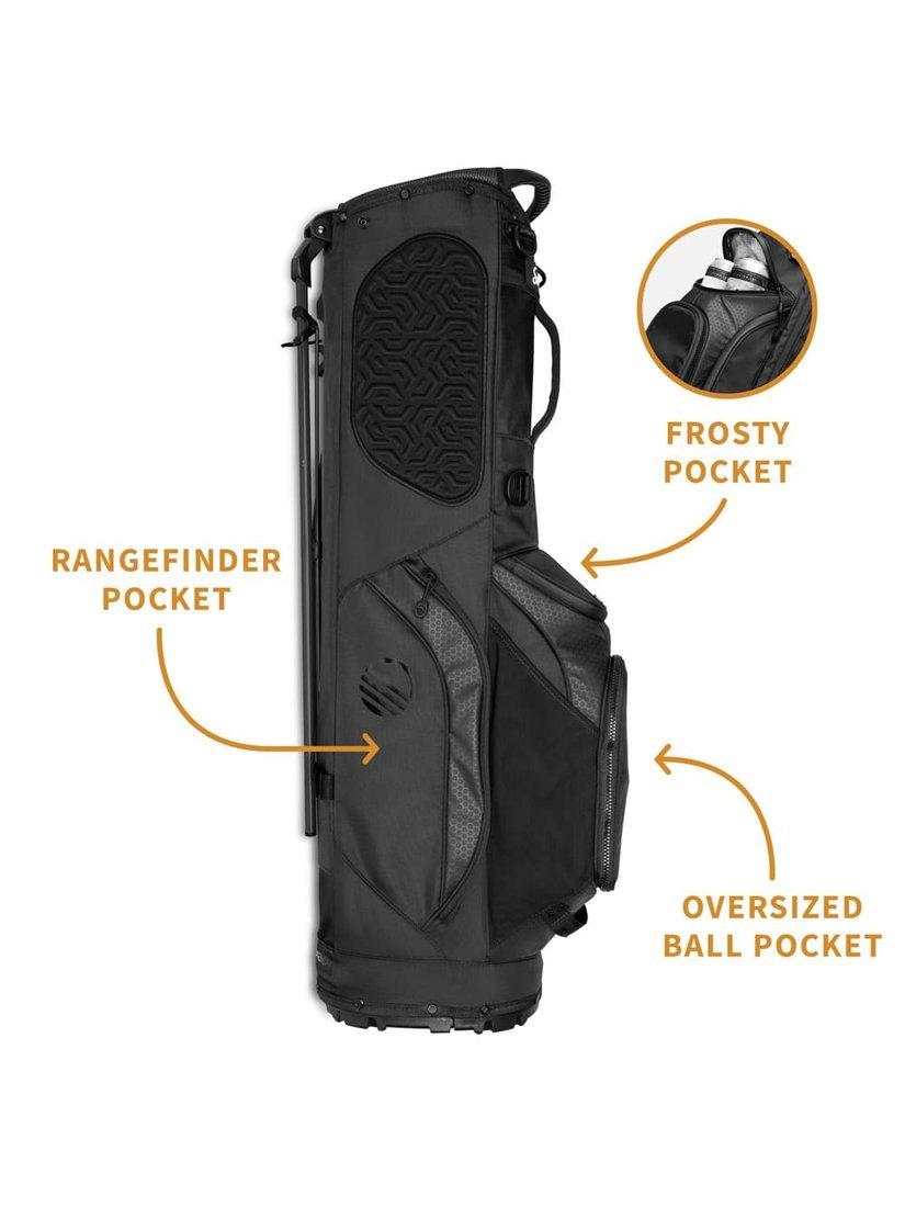 - Frosty Pocket drinks holder x 1, Ball pocket x1, Glove & towel holder x1, Valuables pocket x1, Range finder pocket x1, Mesh pocket x1, Apparel pocket x1, Smell proof pocket x1