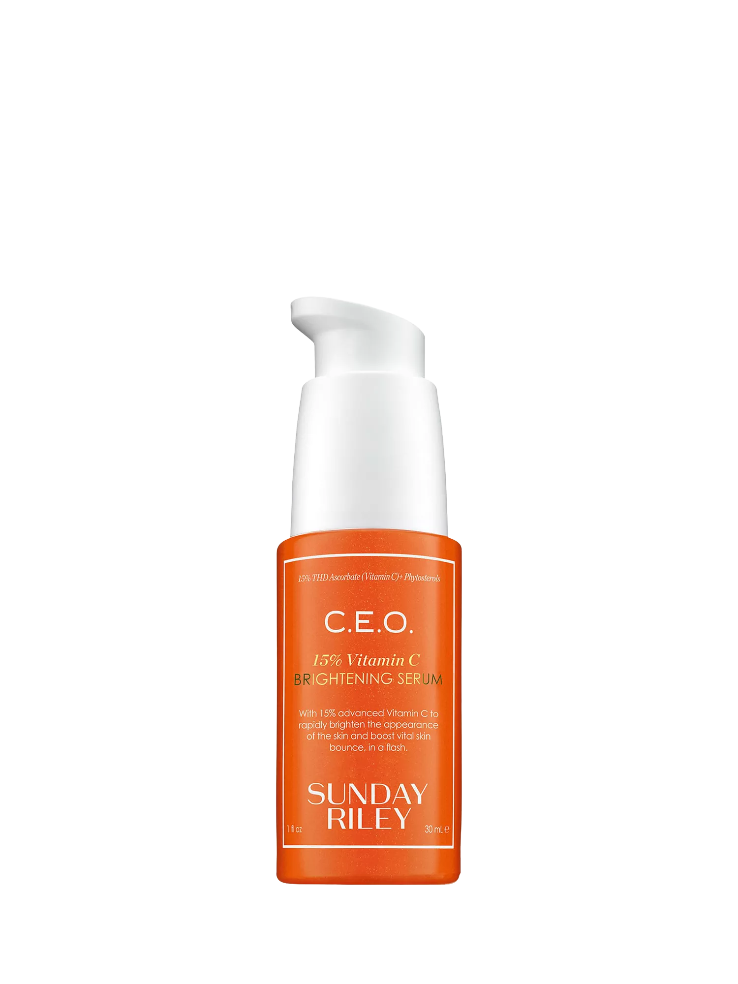 C.E.O. Brightening Serum uses a sophisticated, ultra-powerful form of Vitamin C called THD Ascorbate. Both highly stable and oil-soluble, THD Ascorbate rapidly absorbs into the skin for visible anti-ageing benefits, including visual improvement in loss of firmness, the appearance of lines and wrinkles, and dark spots and dullness.