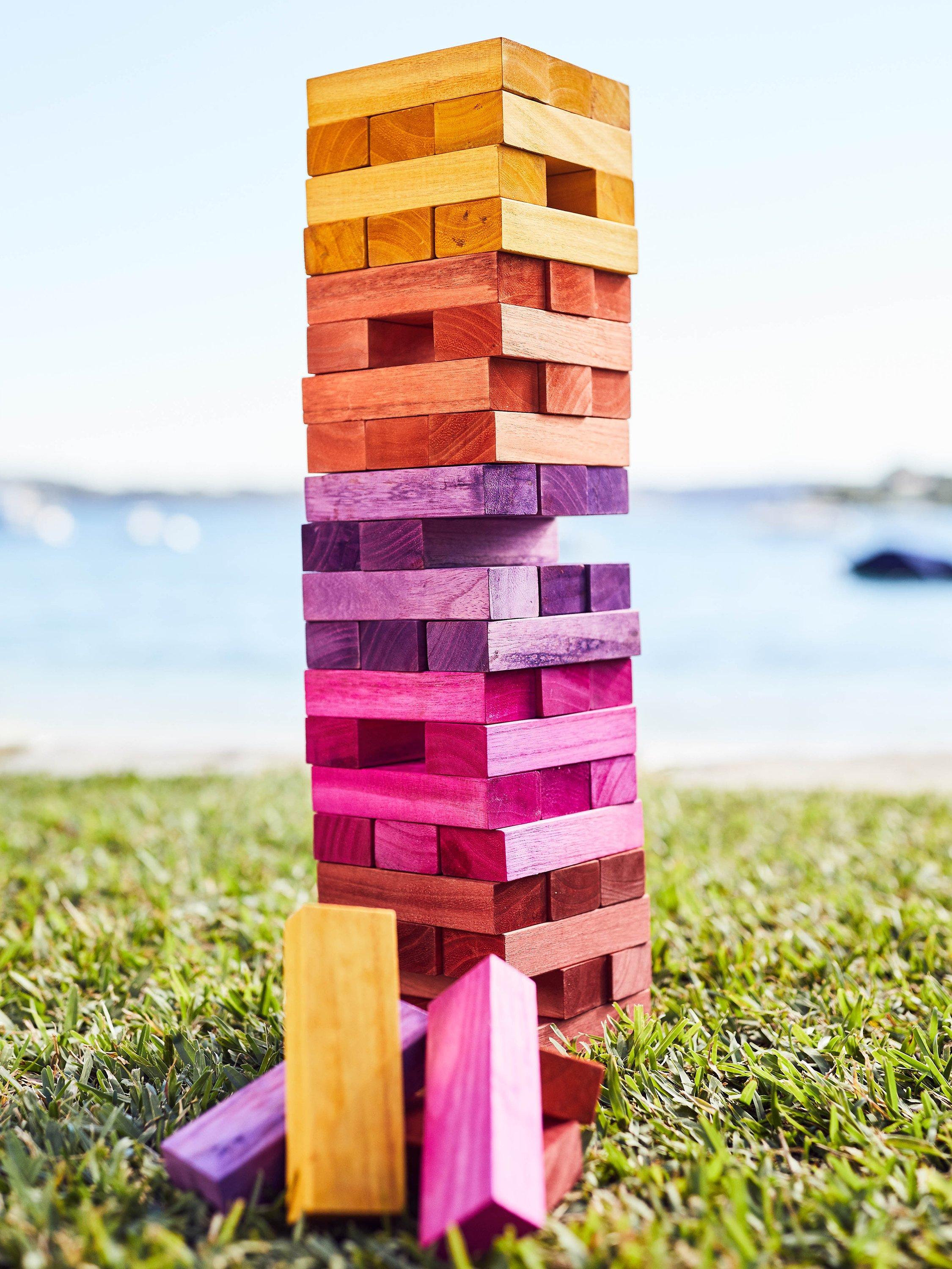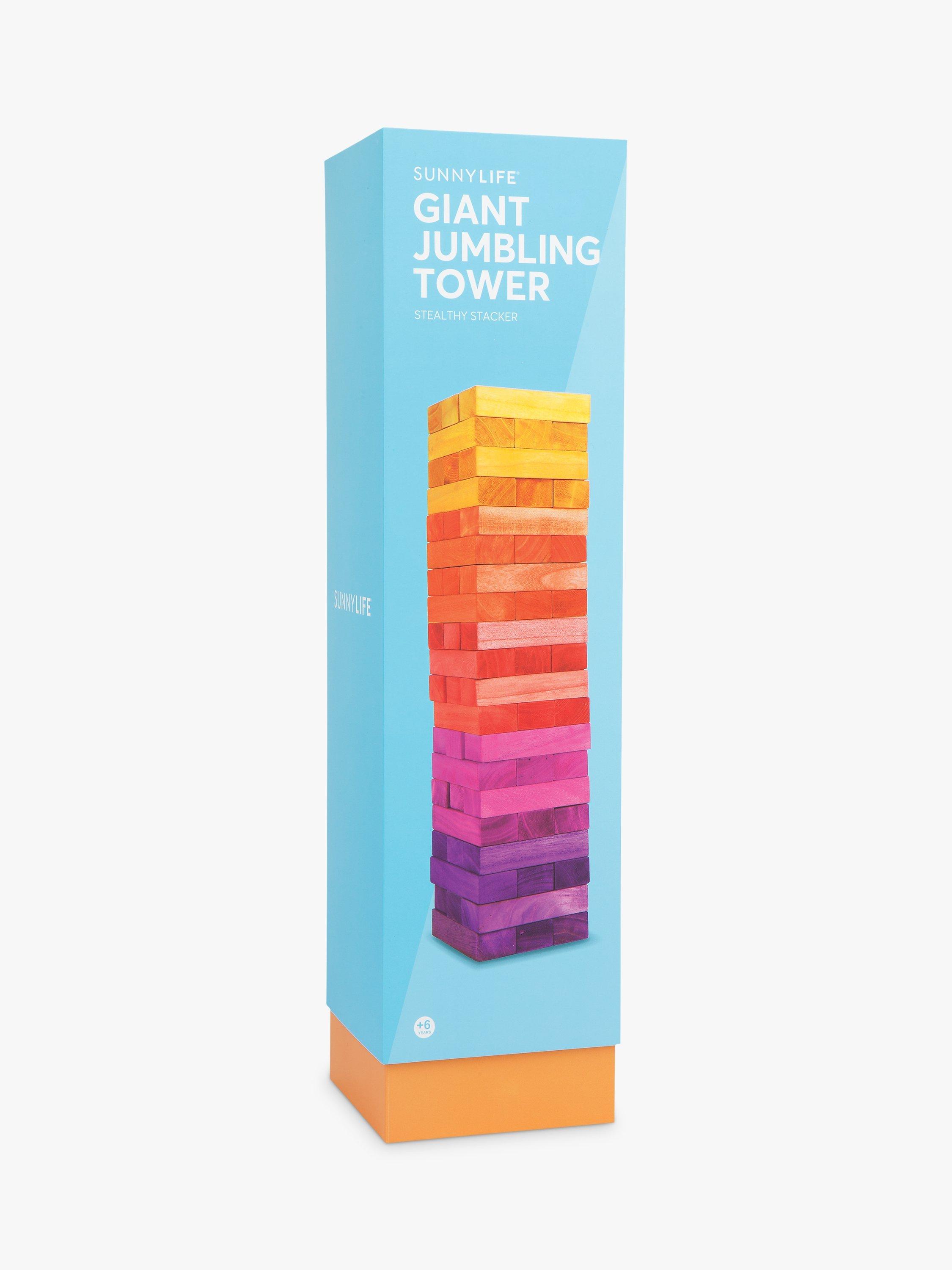 One is company, two is a crowd and three is a party so get your friends over and let the games begin. Get on board and become a stealthy stacker with the Sunrise Giant Jumbling Tower. Includes x51 pieces dyed wooden blocks.