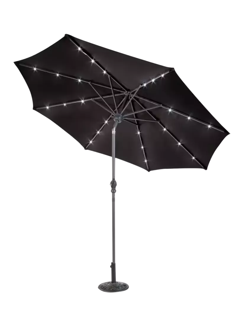 Suntime2.7m Adjustable Parasol with Bluetooth Speaker and LED Lights, Black