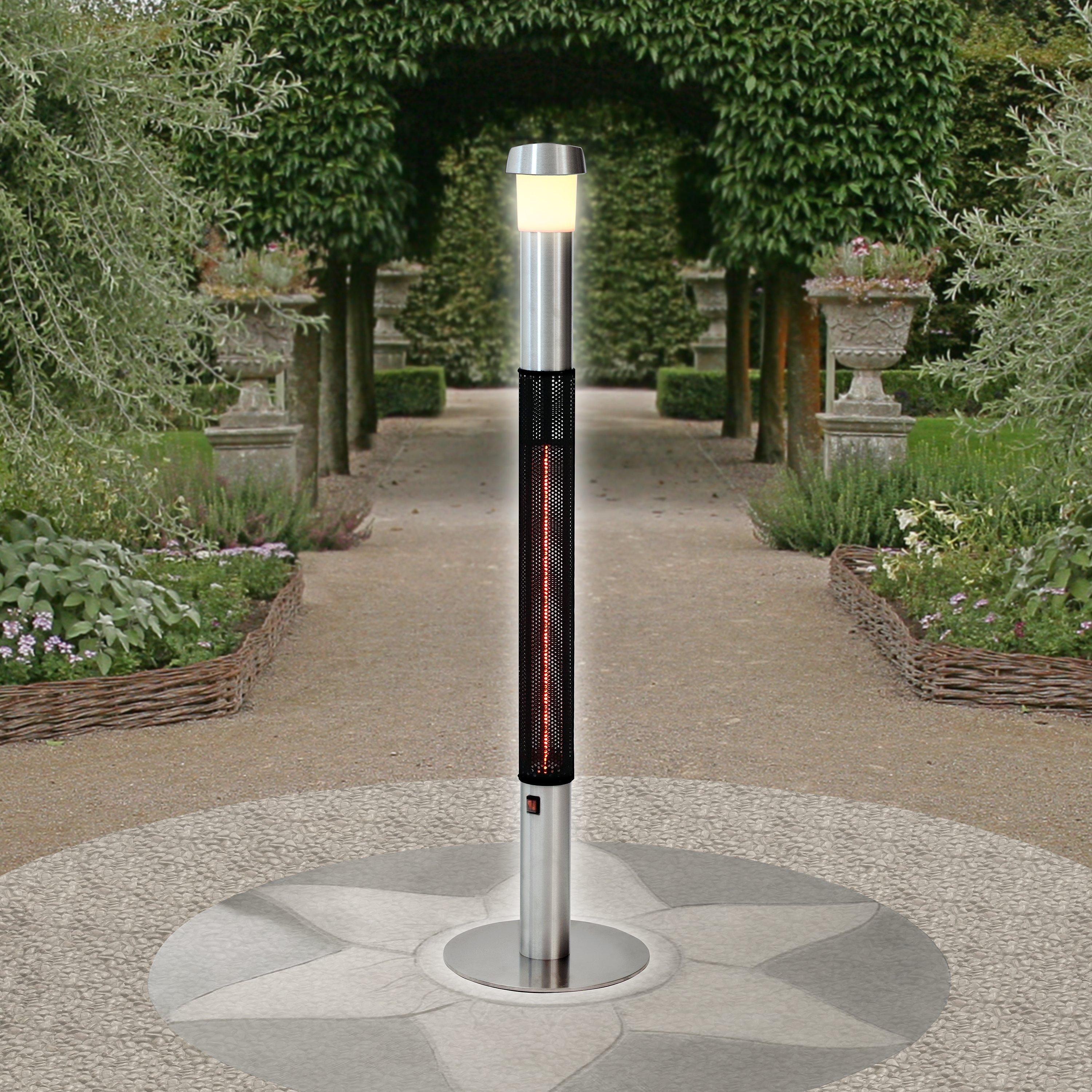 Extend cooler evenings with this sleek, freestanding patio heater from Suntime. Perfect for positioning by your al fresco set up, this unobtrusive heater is made of a stainless steel frame and natural aluminium reflector, pole and base to keep the rust away. Its LED light helps illuminate your outdoor space while its built-in Bluetooth speaker takes care of the music.