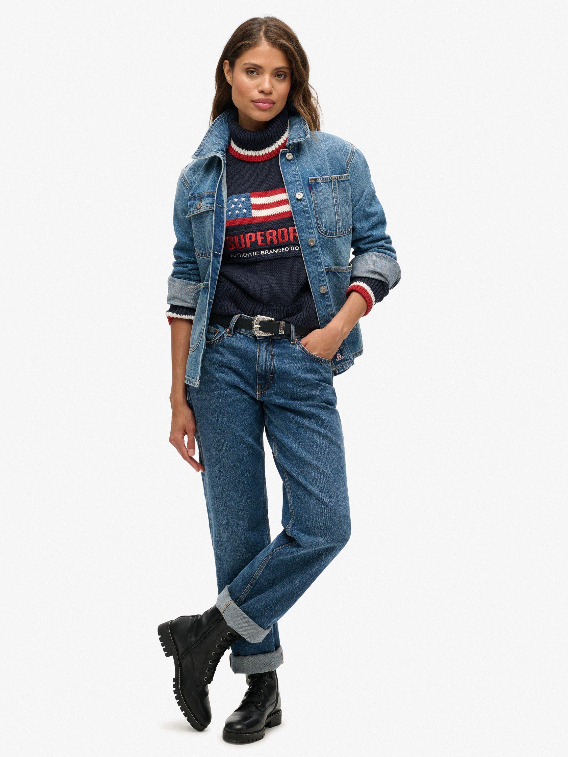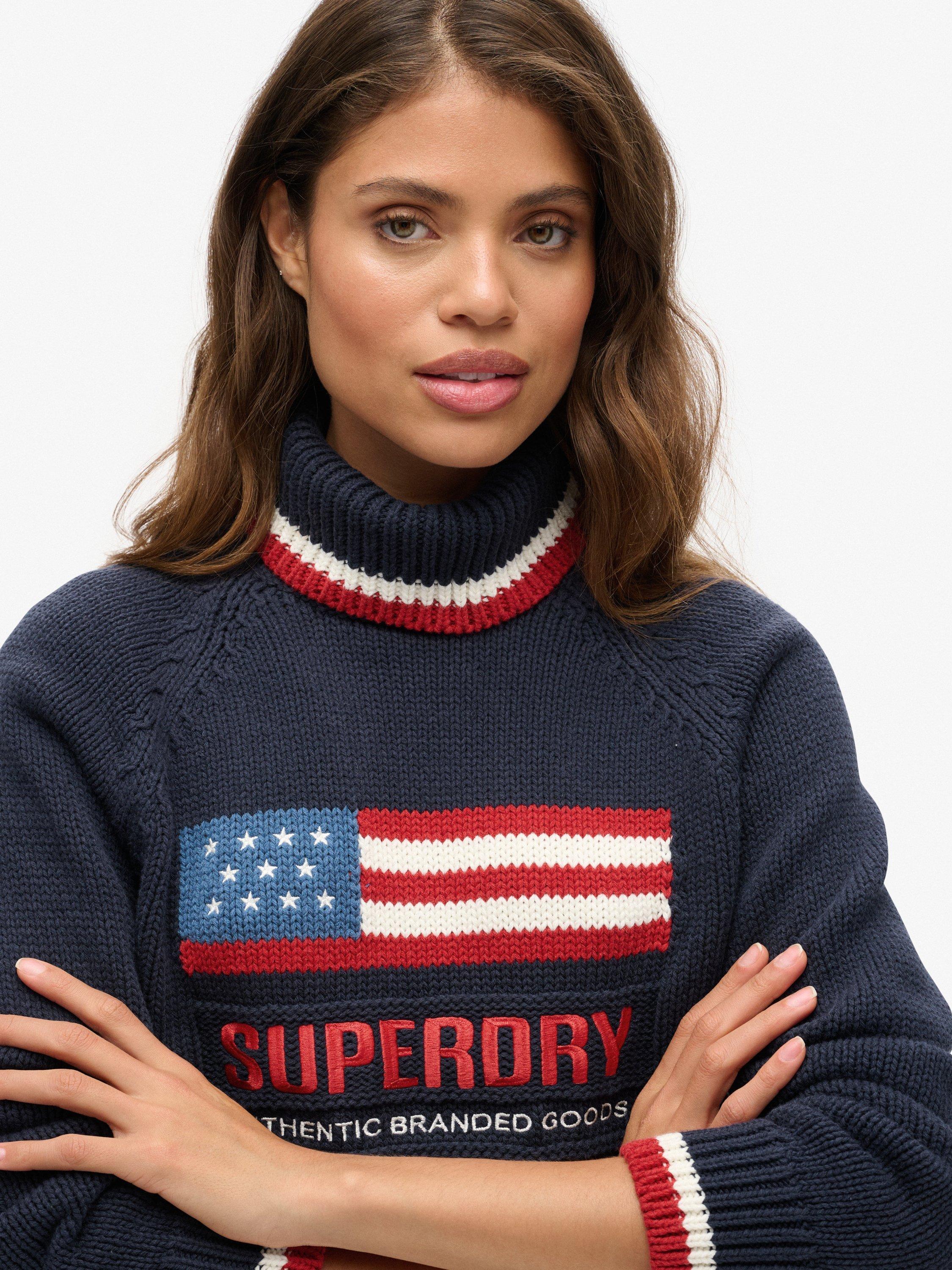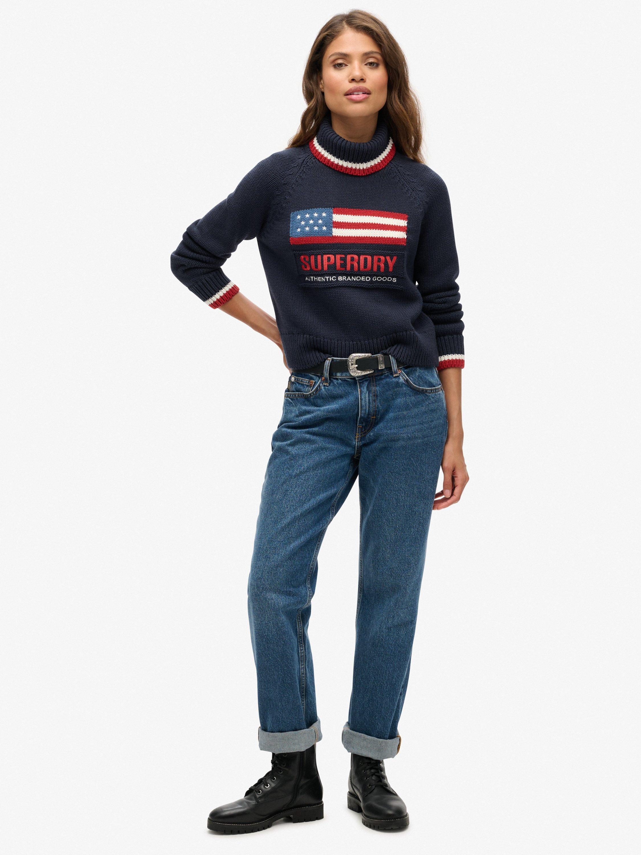 Cosy, warm and stylish - just what you need for those colder months. Bringing American nostalgia to your casualwear, the Americana Roll Neck Knit Jumper will keep you warm and will add an authentic vibe to your fashion-forward style. Crafted to suit all your needs, this luxuriously soft jumper brings a touch of casual chic to your look so you can layer up in an effortlessly stylish way.