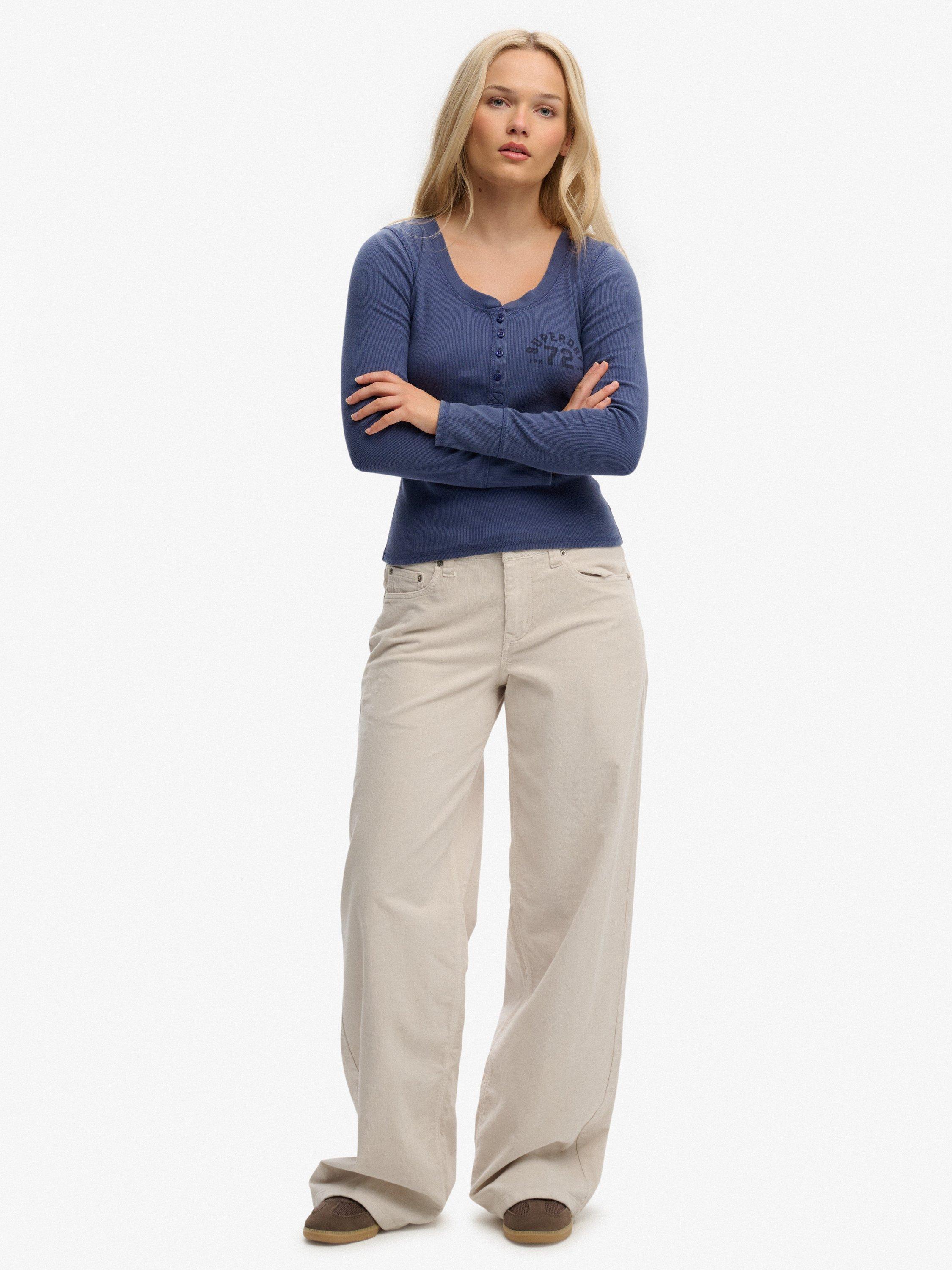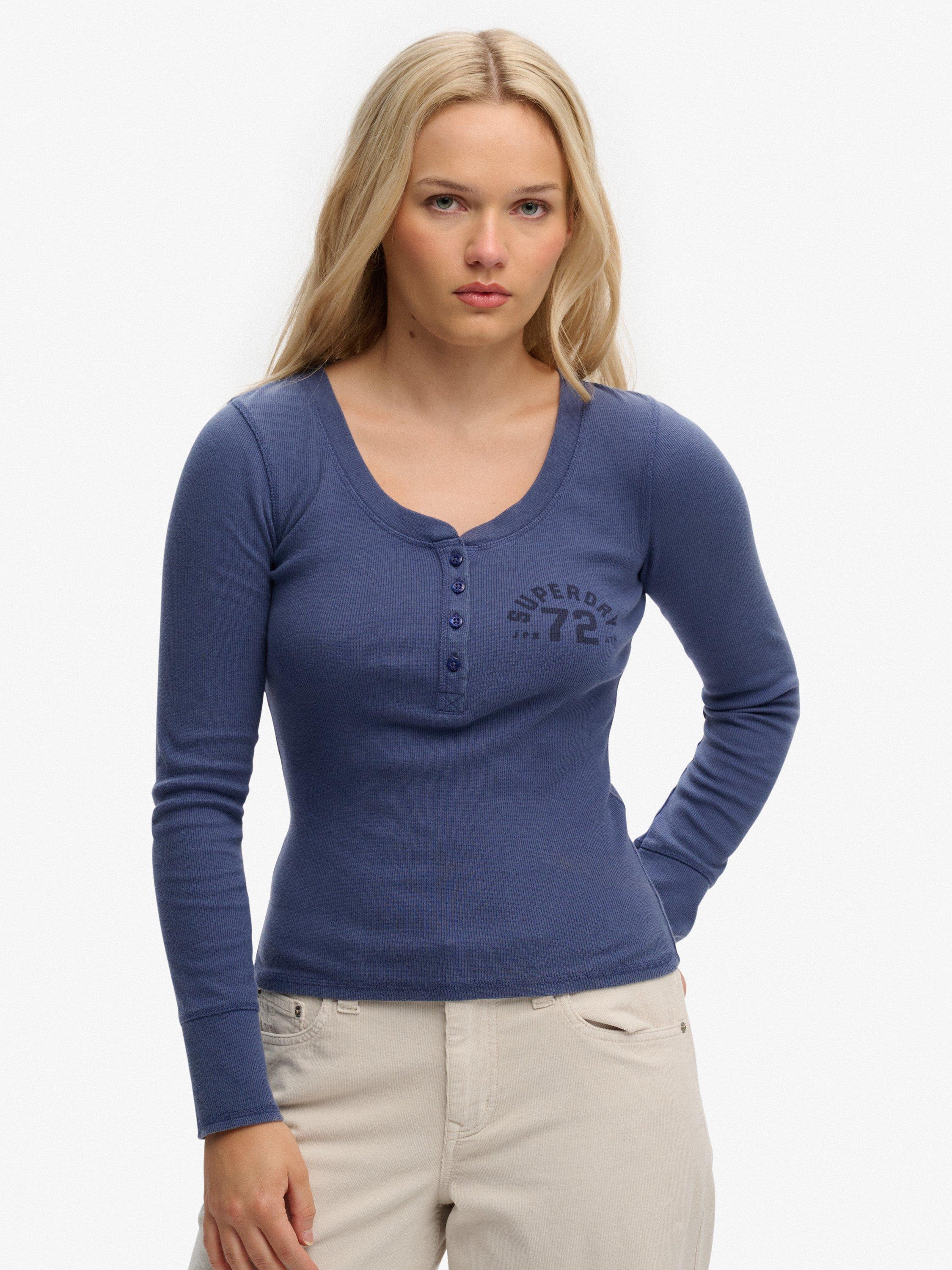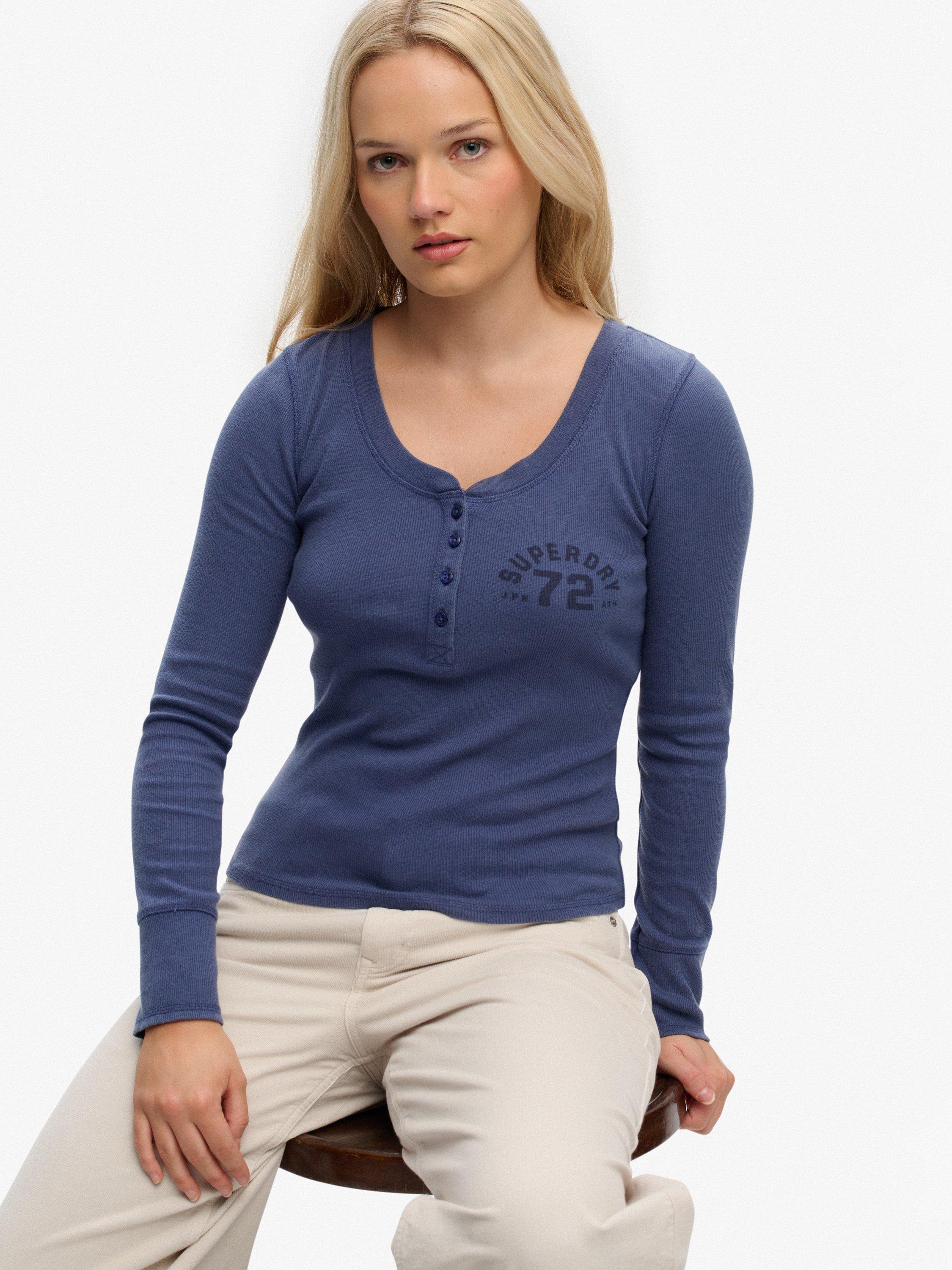 SuperdryAthletic Button Down Long Sleeve Top, Mariner Navy