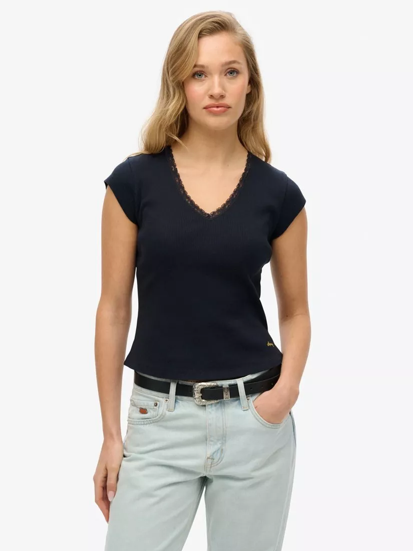 There are some items your wardrobe shouldn't be without and staples such as the Athletic Essential Lace Trim V-Neck Top are just that. Perfect as a layering piece, though equally as happy being the main event, this tee brings versatility when you're building your outfit.