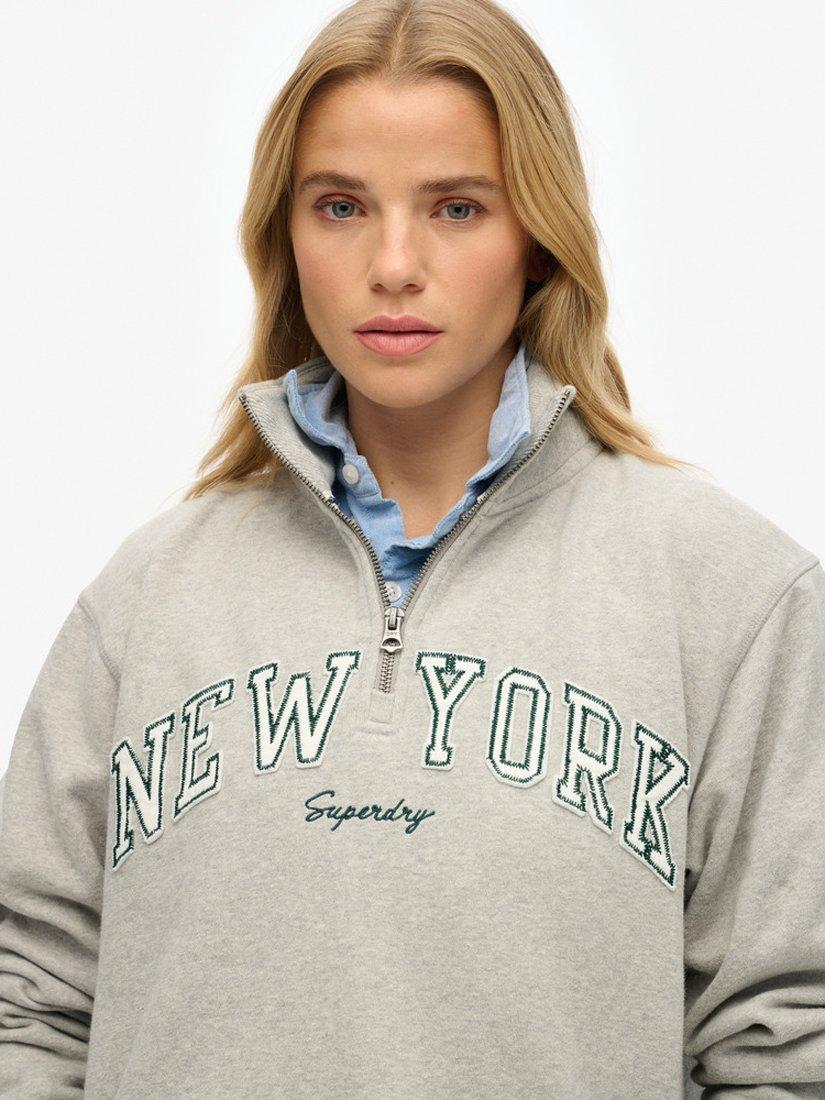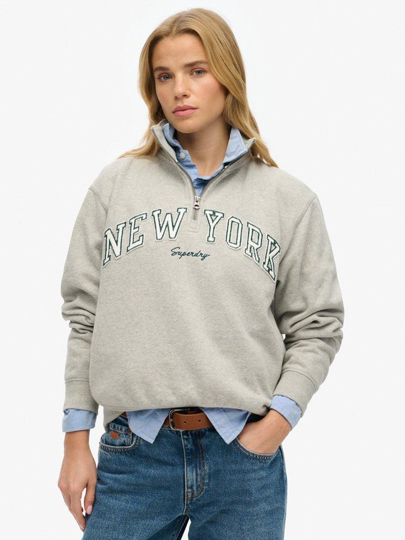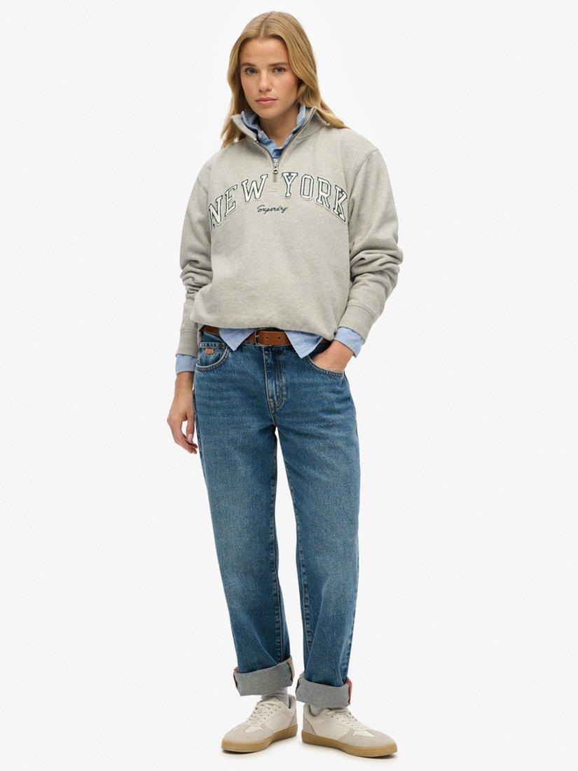 Go bold with your casualwear and throw on the Athletic Essentials Applique Half Zip Sweatshirt. The comfortable, easy shape of this classic sweatshirt is ideal for taking it easy, with a splash of retro style courtesy of the large, distressed embroidered logo across the chest. Whether lounging at home or hitting the pavement, you're sure to look the part in this.