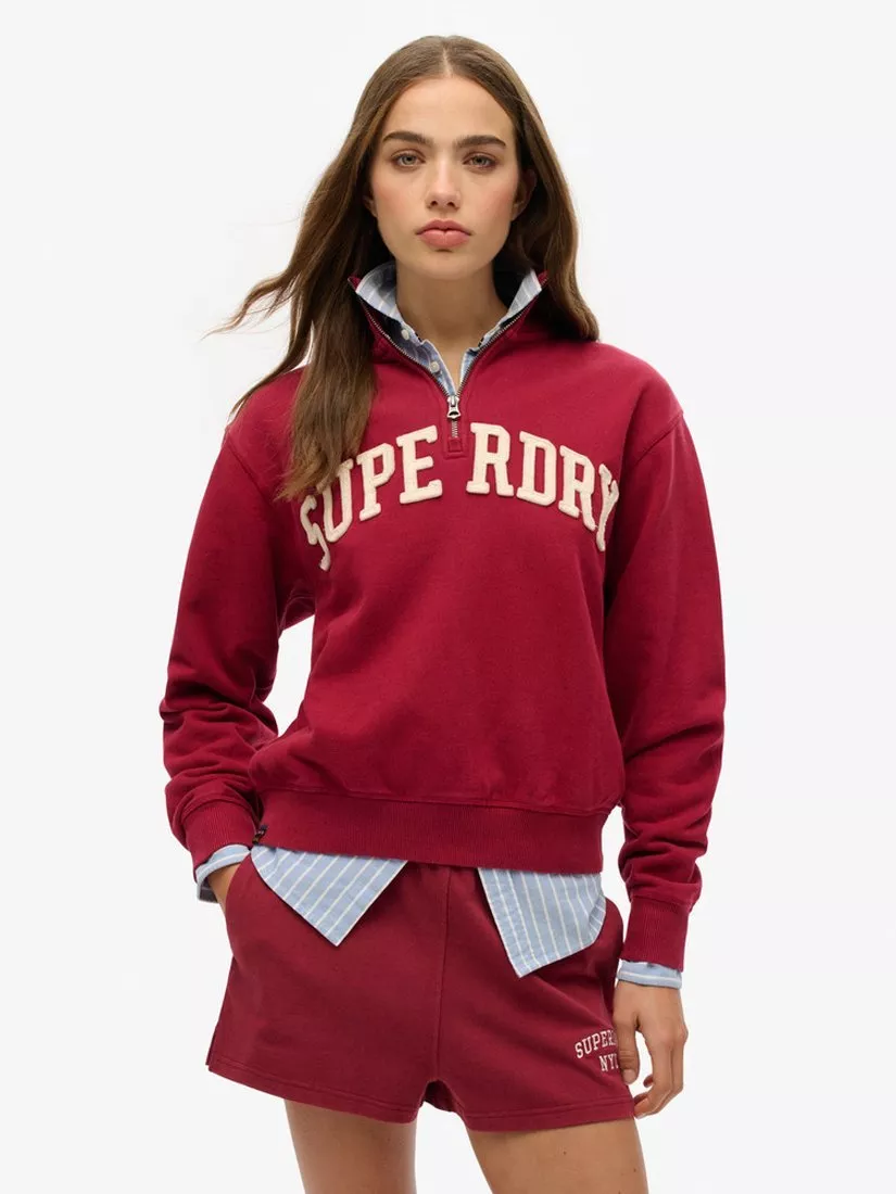 SuperdryAthletic Essentials Applique Half Zip Sweatshirt, Bordeaux Red