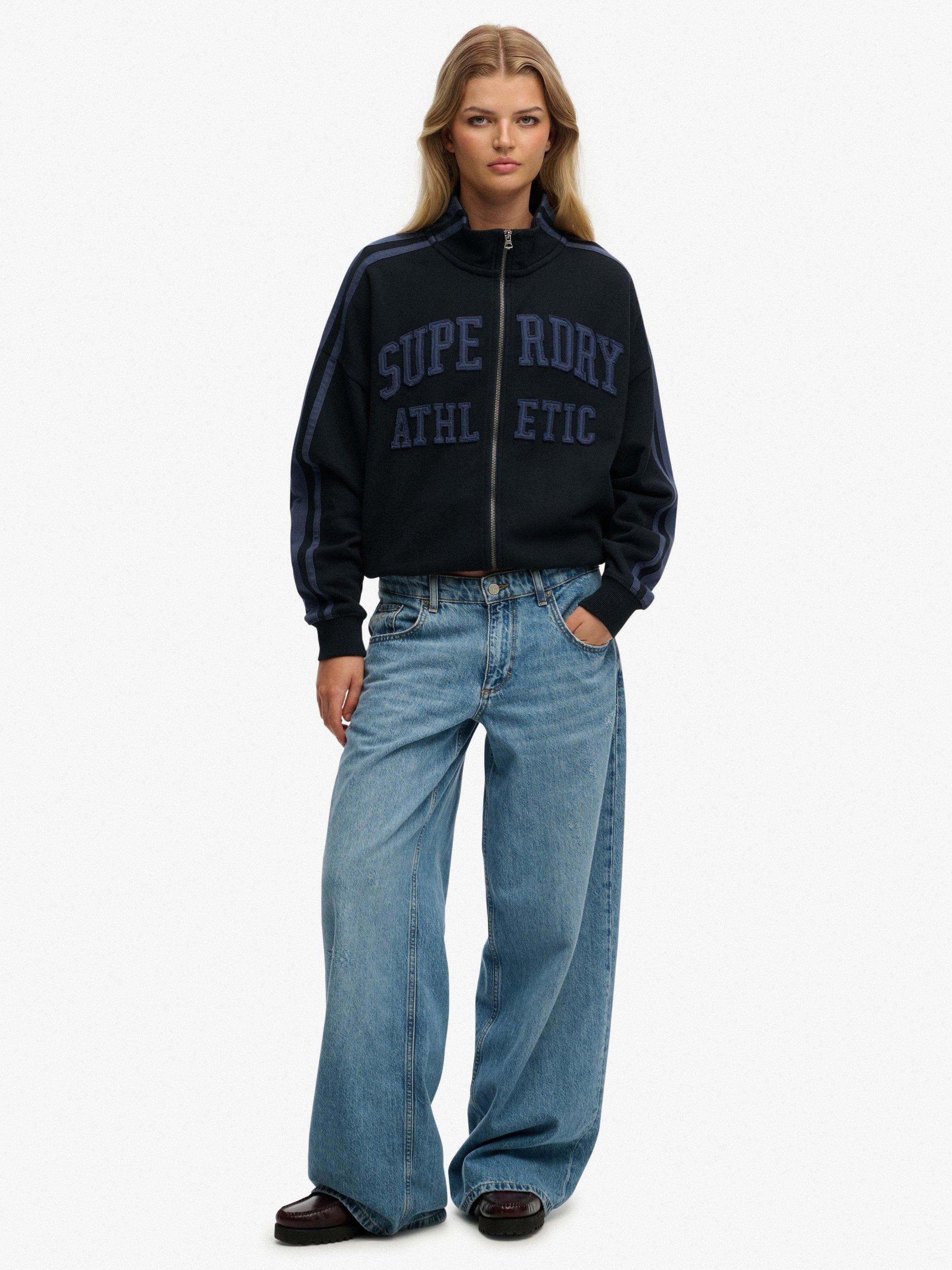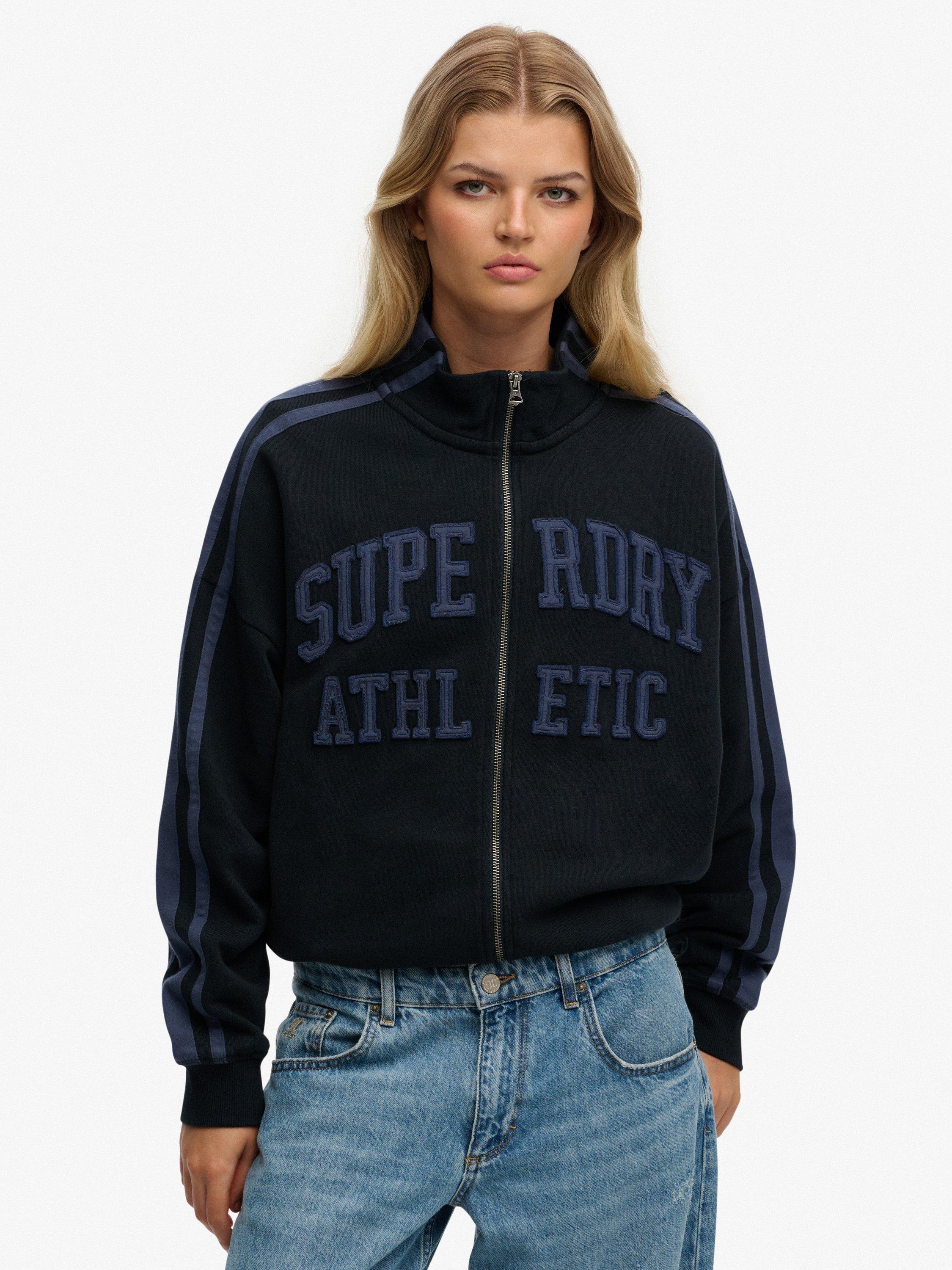 SuperdryAthletic Essentials Applique Loose Zip Track Top, Eclipse Navy
