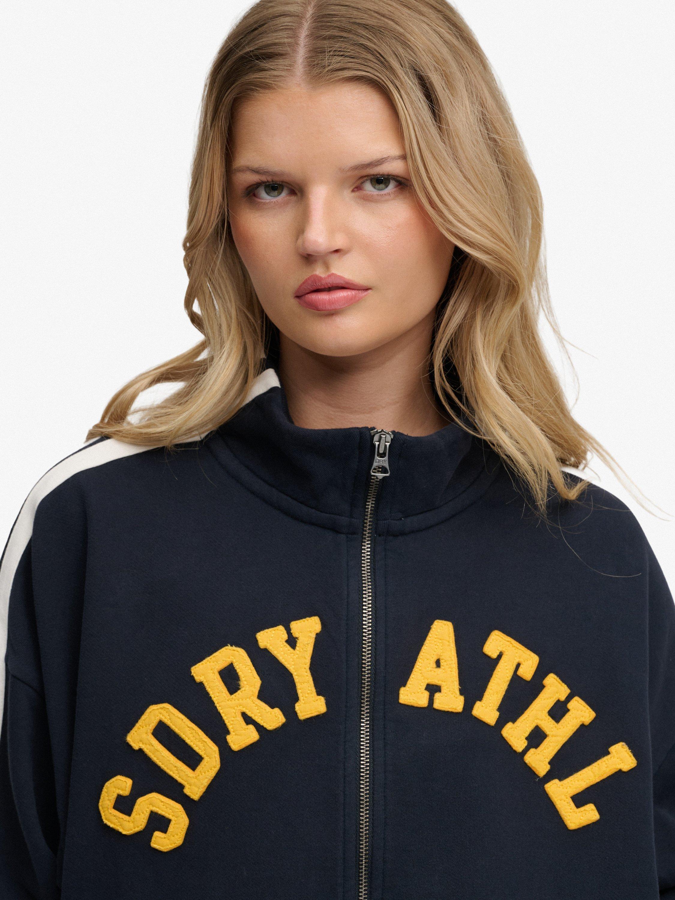 SuperdryAthletic Essentials Appliqué Loose Zip Track Top, Eclipse Navy
