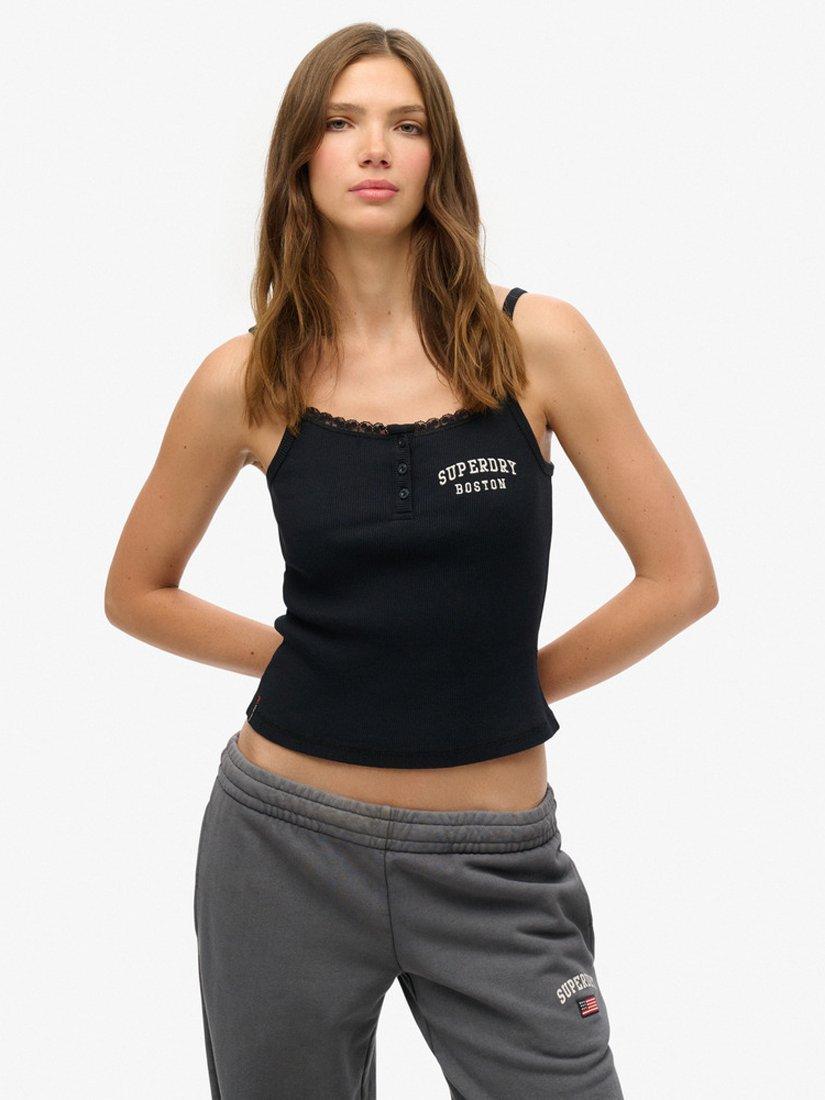 SuperdryAthletic Essentials Embroidered Button Cami Top, Eclipse Navy