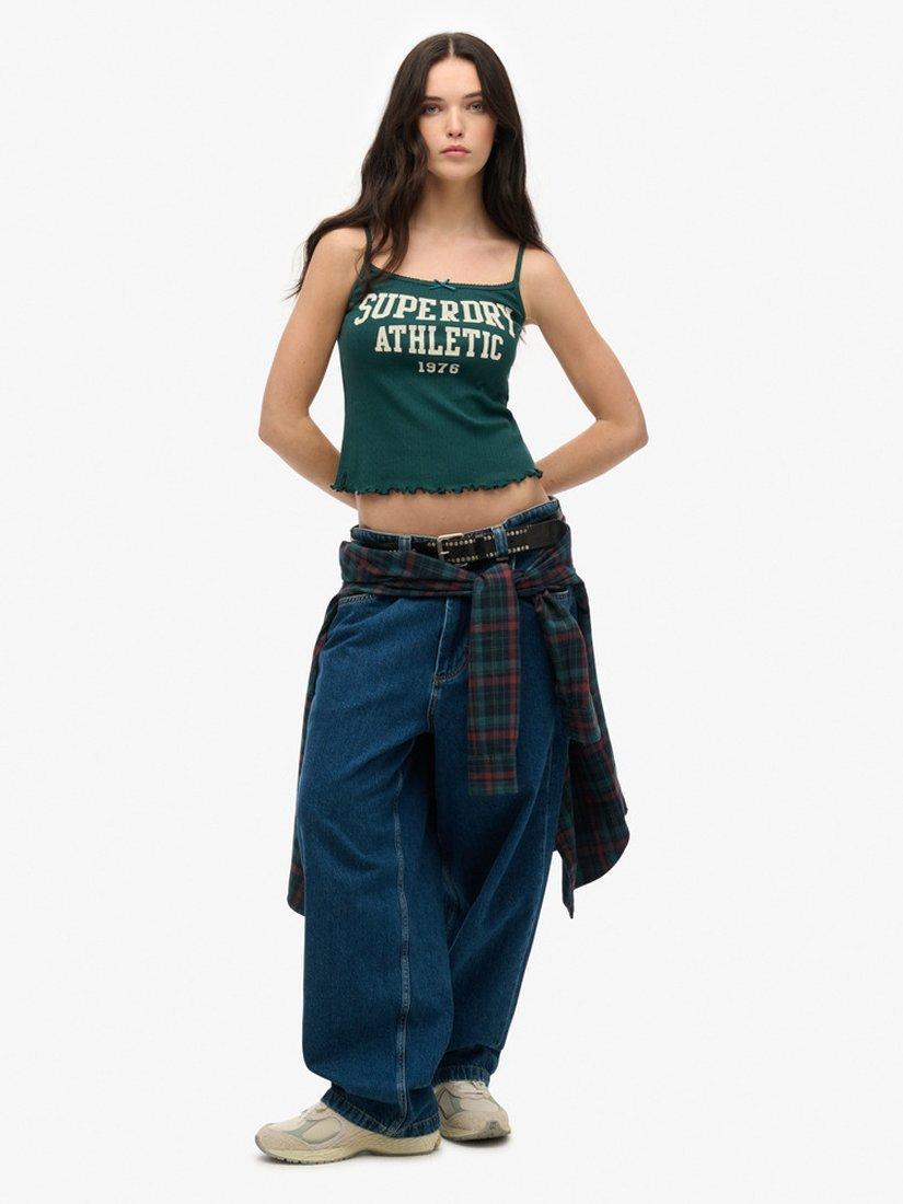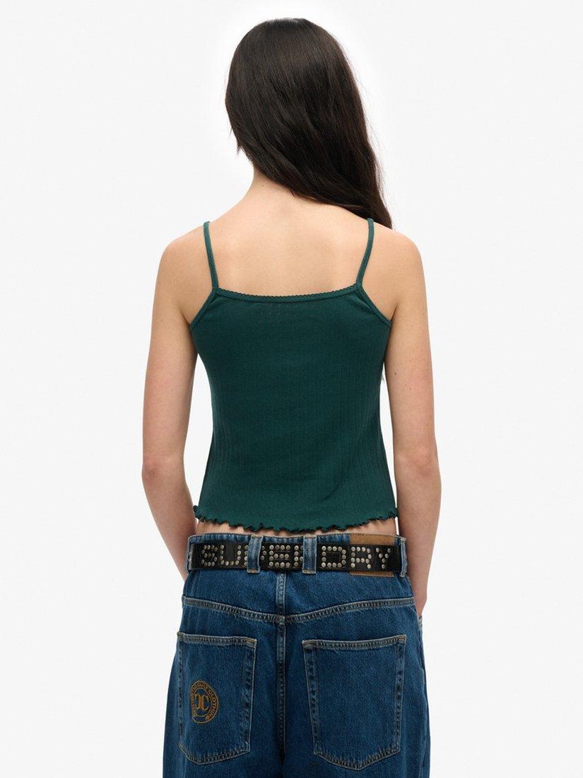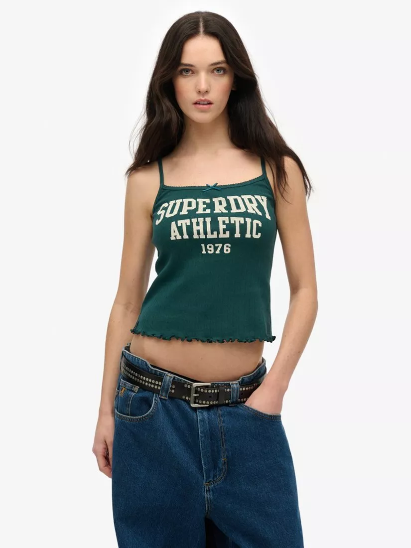 An effortless way to liven up your casualwear, the Athletic Essentials Graphic Pointelle Cami Top is a delicate piece with a chic athletic edge. The bow at the neckline and the pretty lettuce hem add a touch of femininity that perfectly complements the pointelle detailing and contrasts beautifully with the logo's sporty aesthetic, resulting in a stylish wardrobe staple.