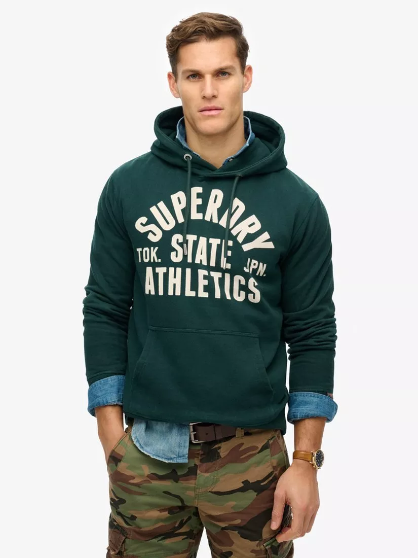 SuperdryAthletic Essentials Hoodie, Dark Pine Green