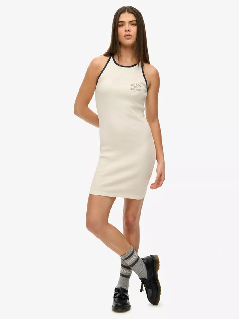 SuperdryAthletic Essentials Ribbed Tank Dress, Off White
