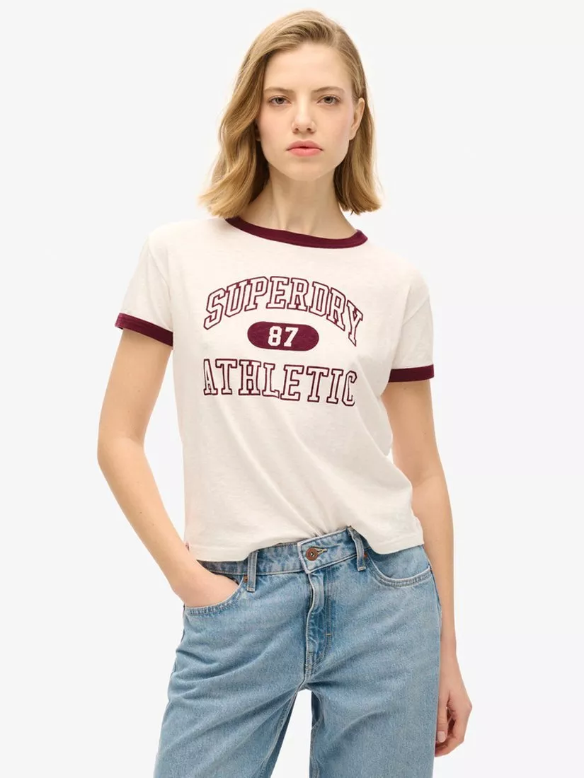 Elevate your casualwear this season by embracing a retro vibe that's sure to give your chilled-out looks an edge. The Athletic Essentials Ringer Fitted T-Shirt is a true 90s-style hero, featuring old-school graphics and a ringer design for a vintage sporty aesthetic. An effortless statement piece or a layering legend: the choice is yours.