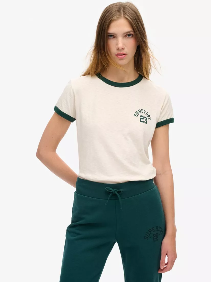Elevate your casualwear this season by embracing a retro vibe that's sure to give your chilled-out looks an edge. The Athletic Essentials Ringer Fitted T-Shirt is a true 90s-style hero, featuring old-school graphics and a ringer design for a vintage sporty aesthetic. An effortless statement piece or a layering legend: the choice is yours.