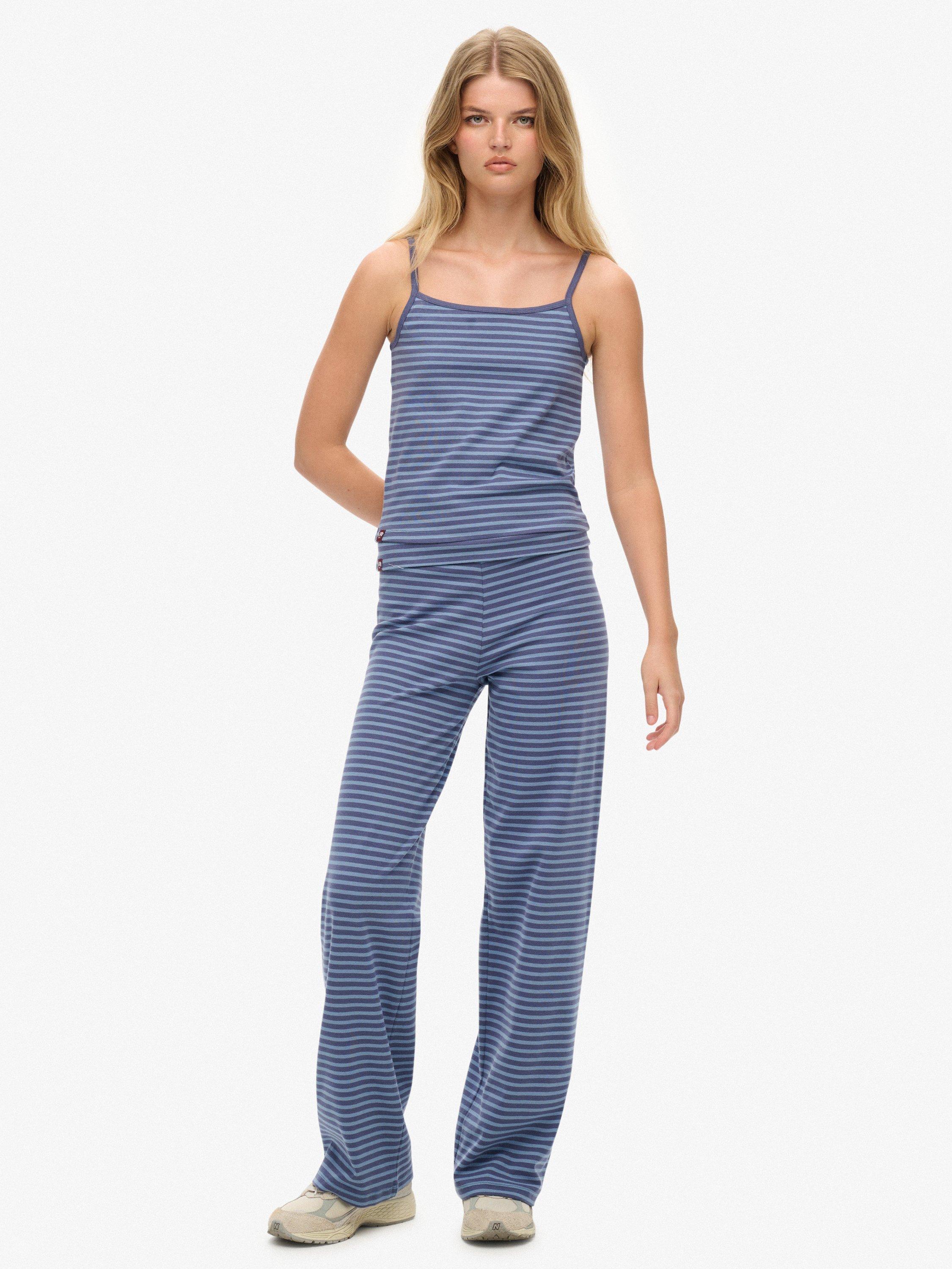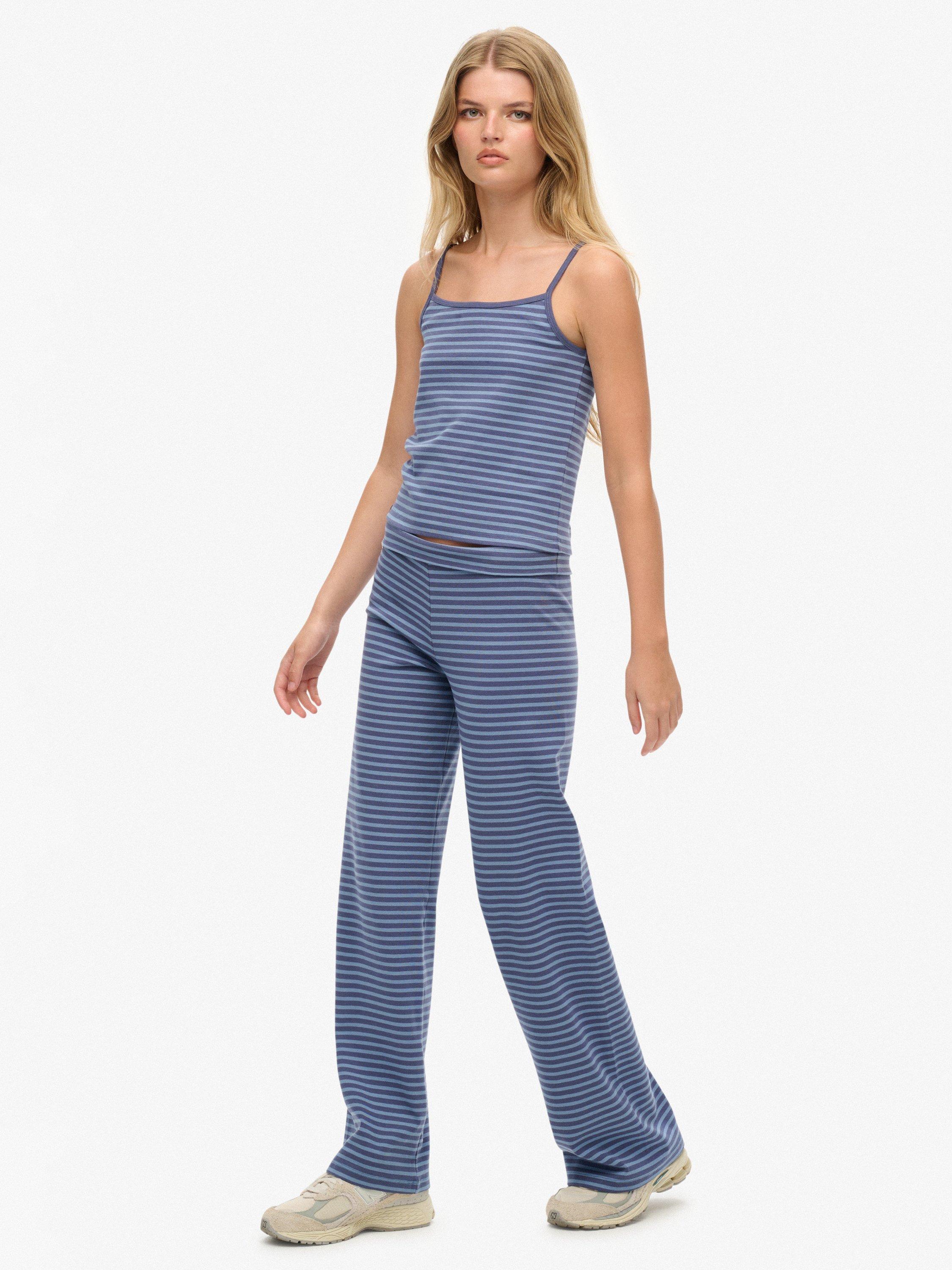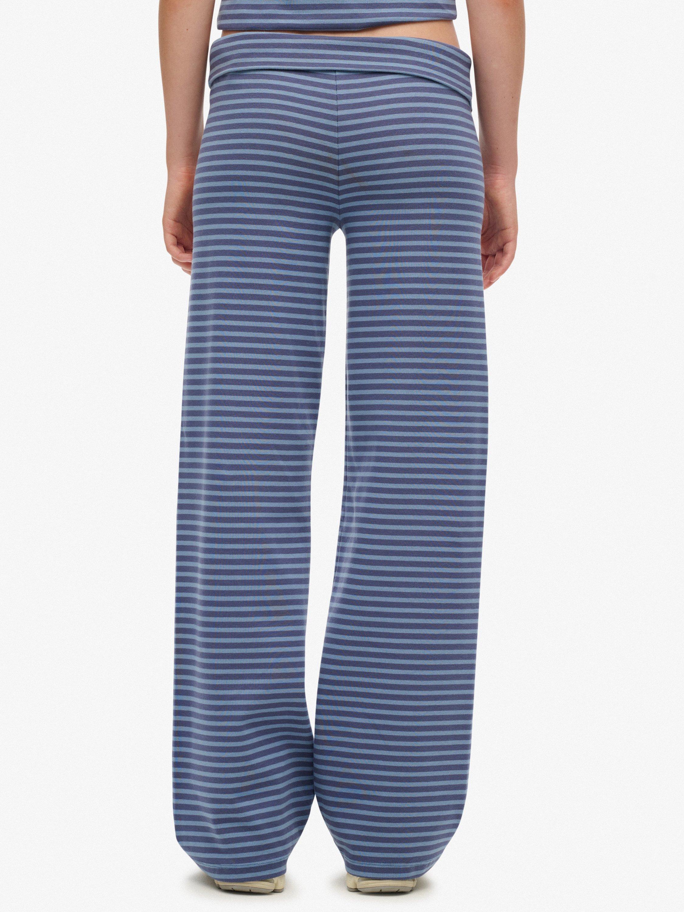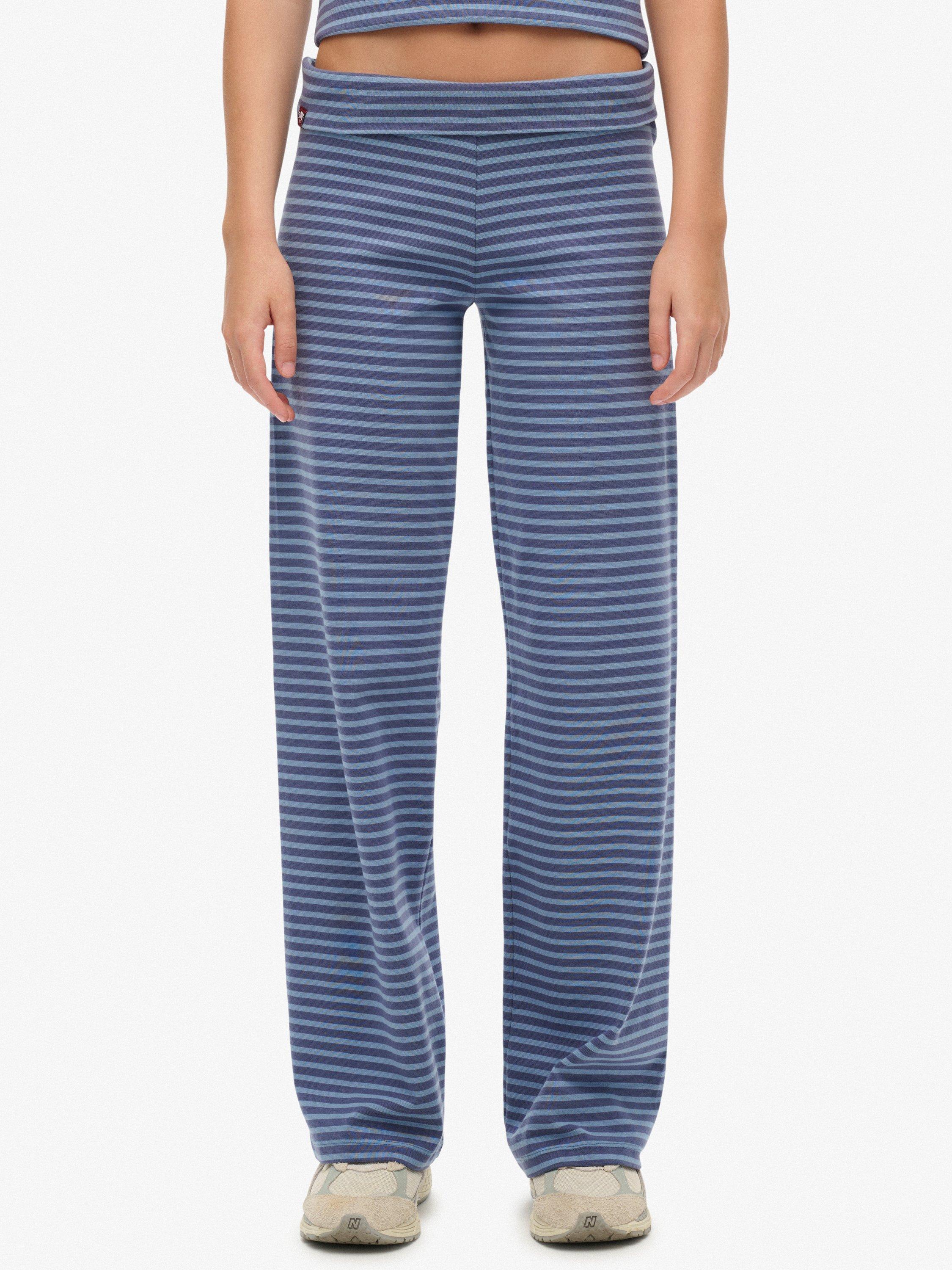 SuperdryAthletic Essentials Stripe Fold Over Joggers, Nvy/Tidal Blu Stripe