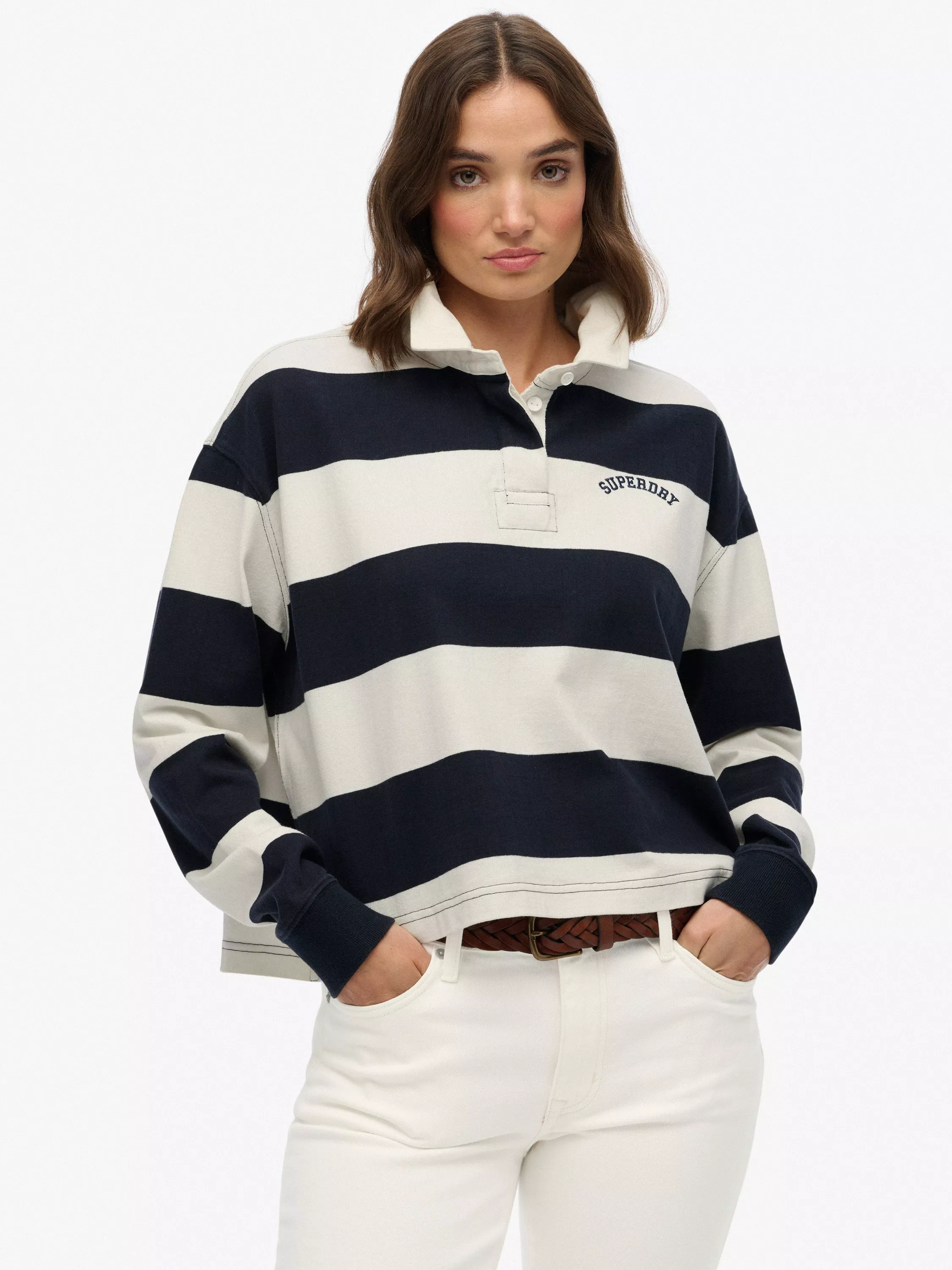 Part of Superdry's classic collection, the Athletic Essentials Stripe Rugby Top is here to reinvent your go-to outfits. Designed with a cosy oversized fit, the silhouette is effortless to style and layer throughout the seasons. The rugby top style adds a new vibe to your look, allowing you to refresh your wardrobe in the best way possible.