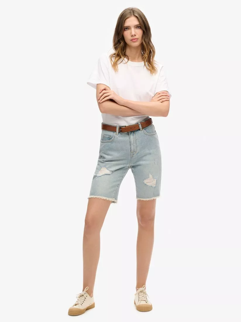 SuperdryBermuda Boy Denim Shorts, Light Indigo Destroy, 29R